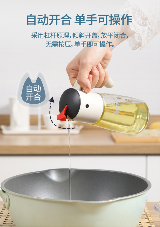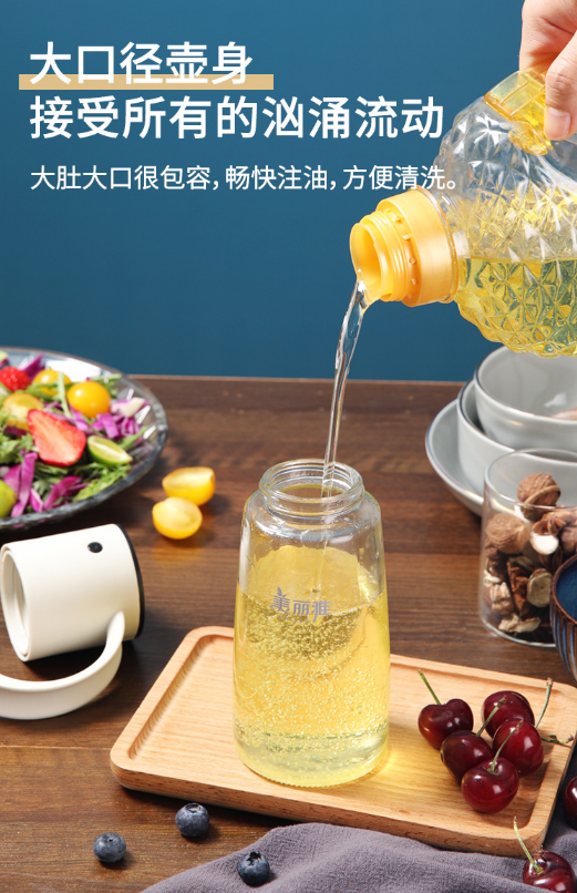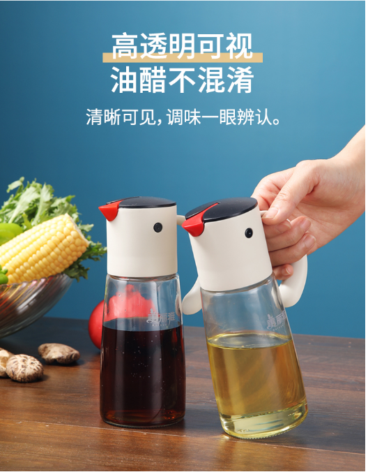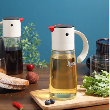 美丽雅 玻璃油壶不挂油380毫升 自动开合防漏厨房家用 装酱醋酒油瓶 自营
