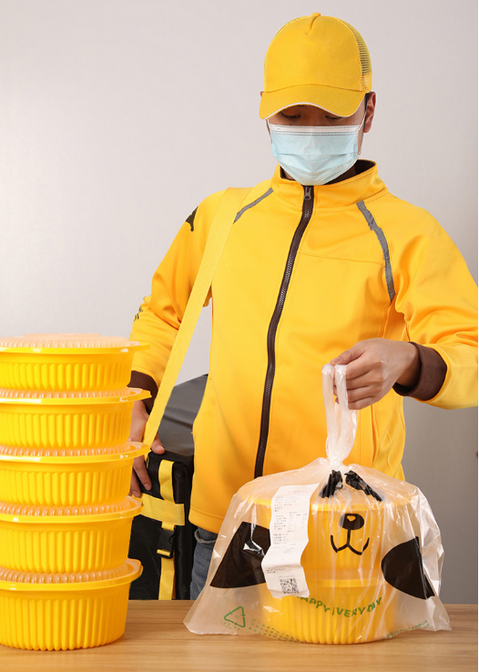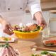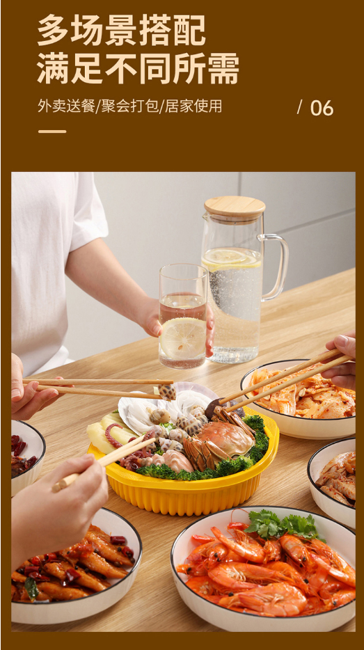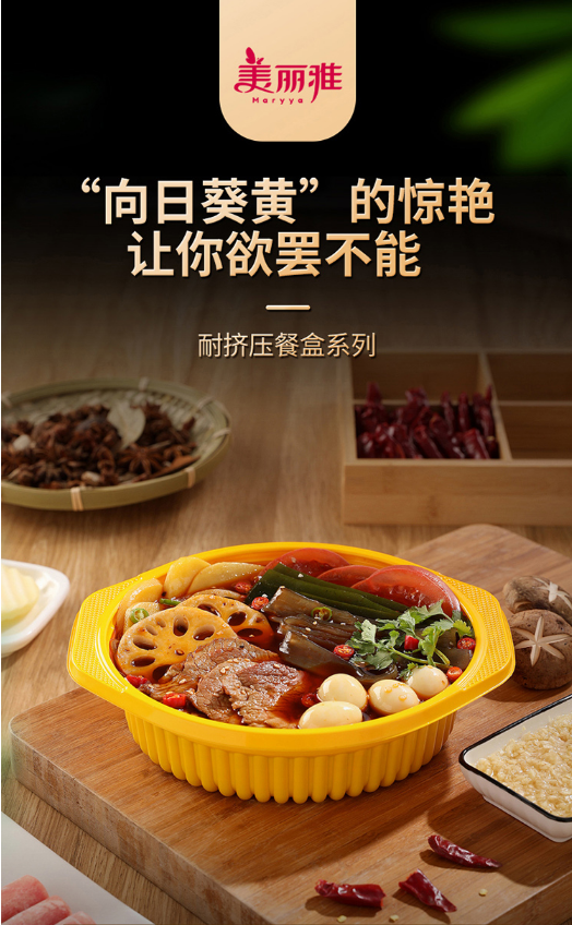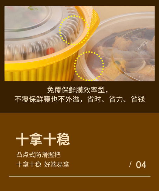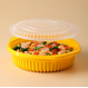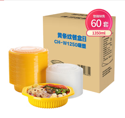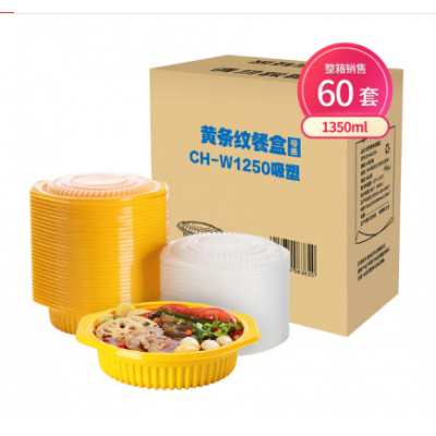 美丽雅 一次性带盖圆形餐盒1350ml*60套 黄色条纹大容量汤碗耐热不易变形烧烤冒菜水果外卖盒 自营