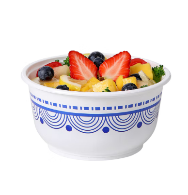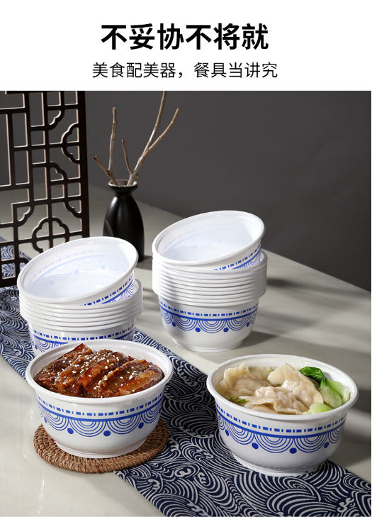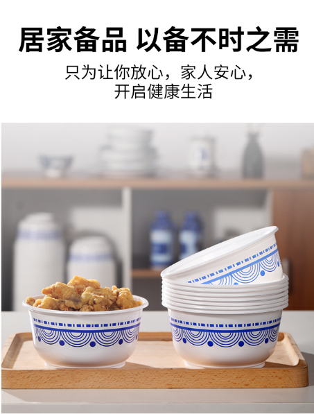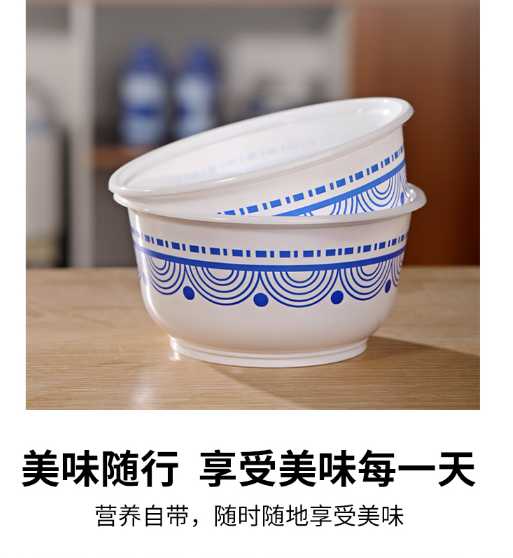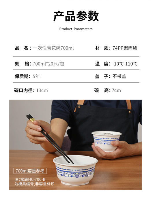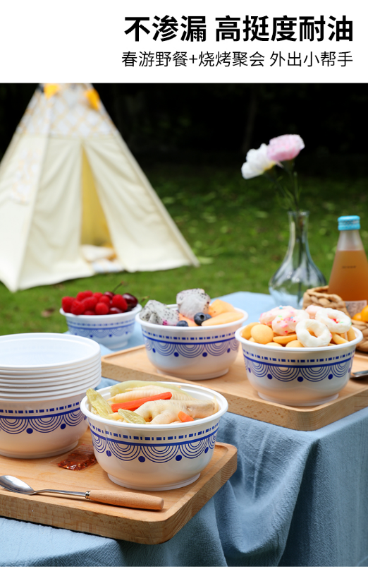美丽雅 一次性青花餐盒700ml*20只 圆形餐盒家用汤碗外卖野炊餐盒冰粉打包餐盒塑料碗不带盖 自营