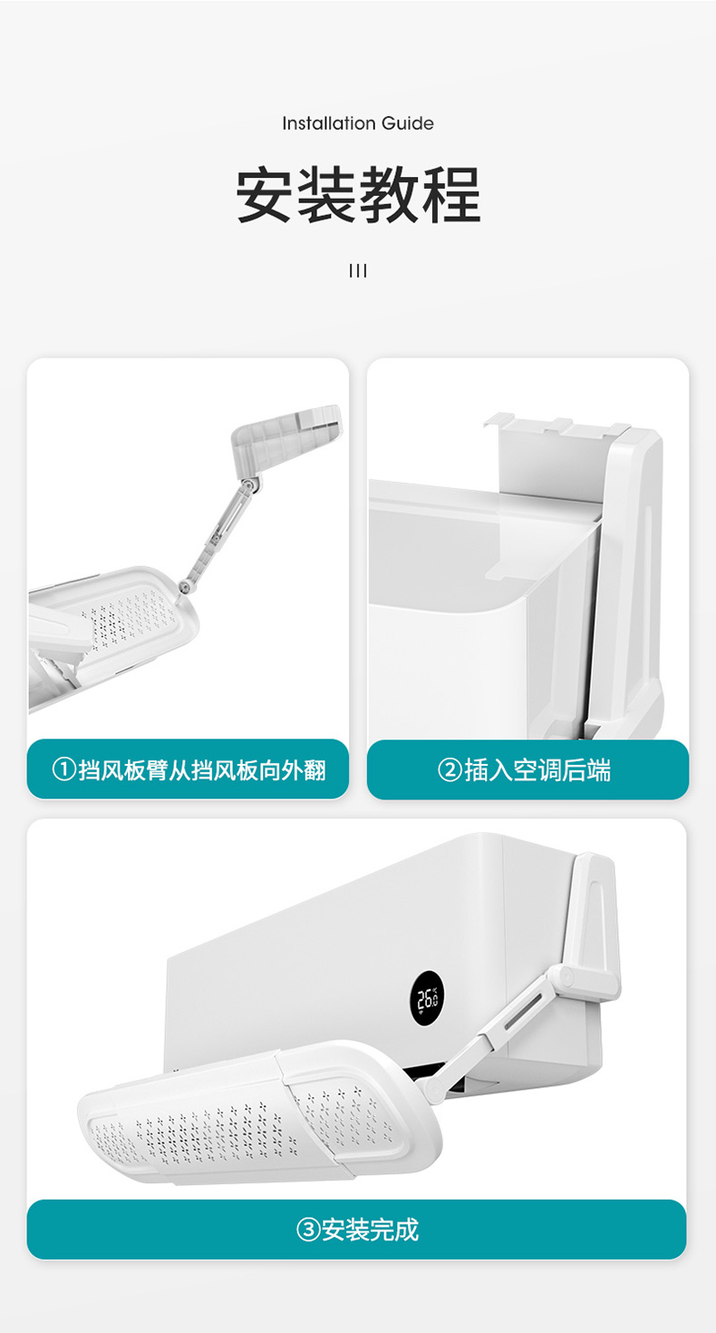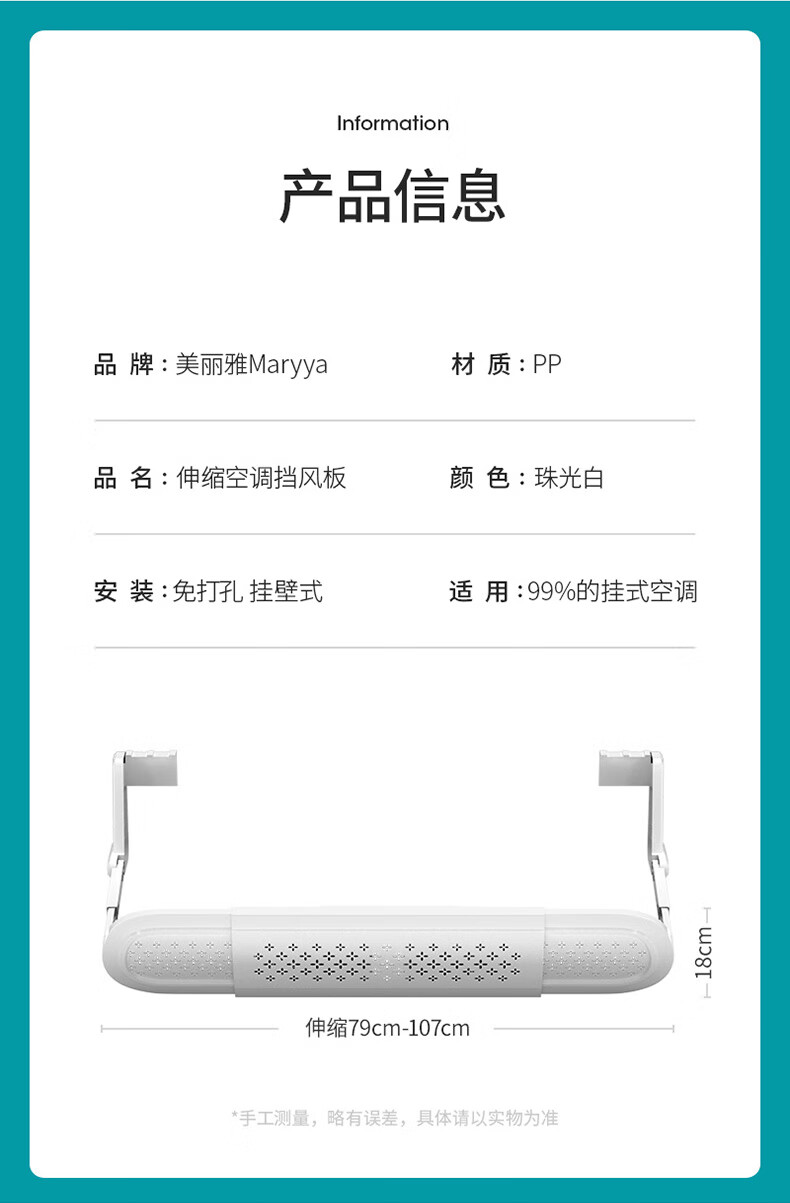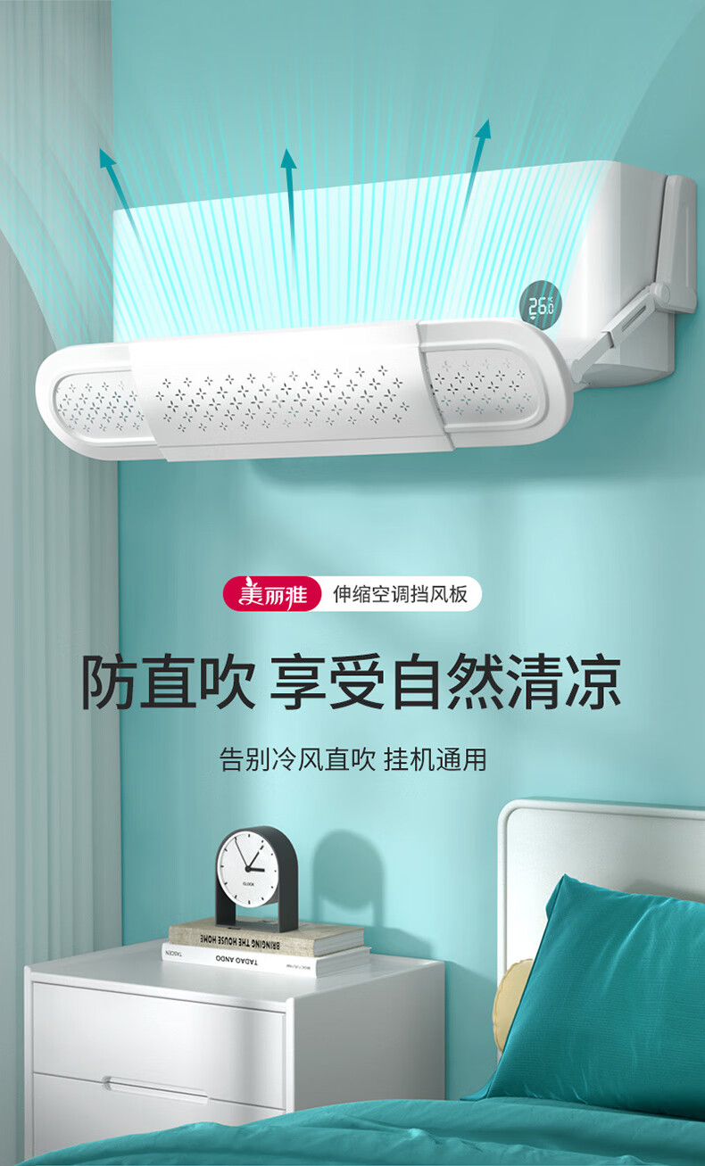 美丽雅 免打孔空调挡风板 防直吹空调遮风板 出风口挡风板壁挂式防风挡风罩 可调节可伸缩 自营