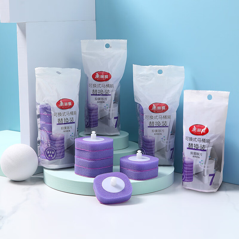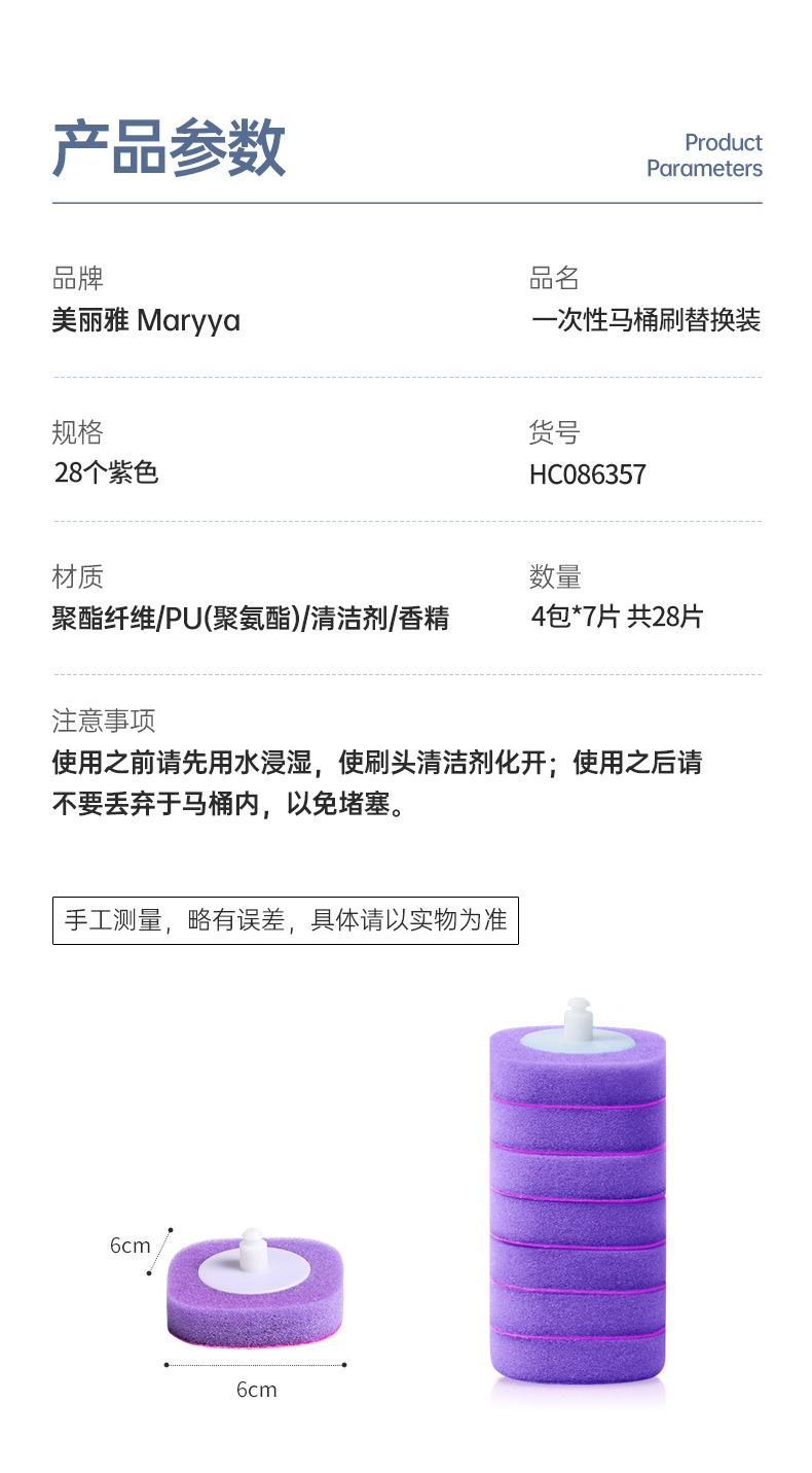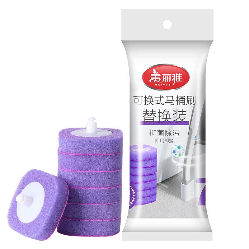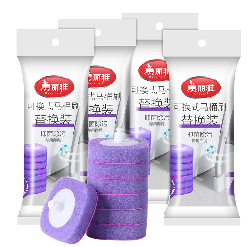 美丽雅一次性马桶刷家用卫生间 厕所洗马桶刷子 自带清洁液替换头 紫色 共28个 自营