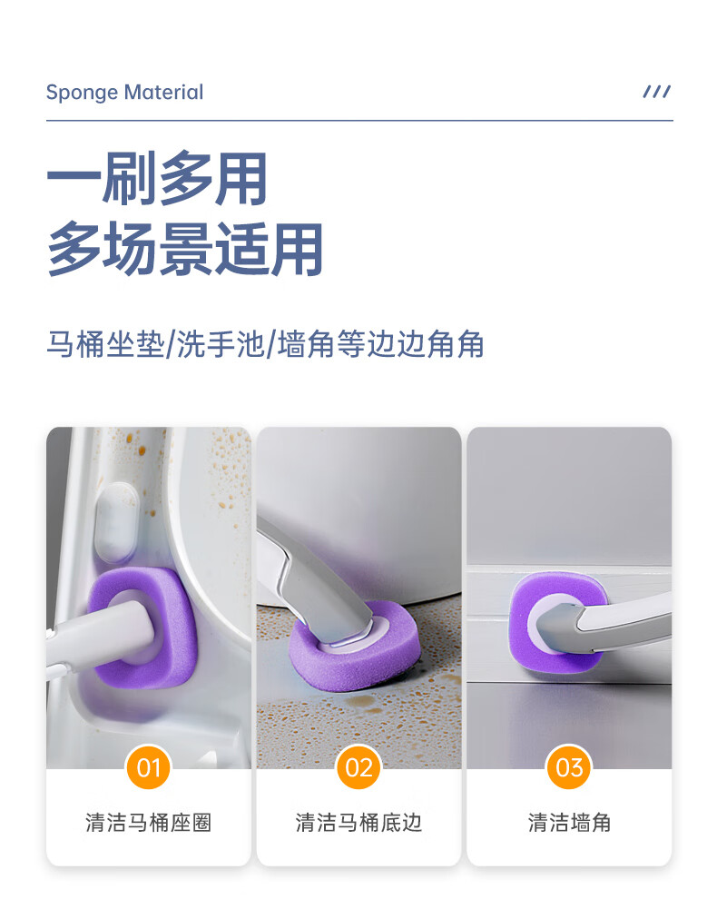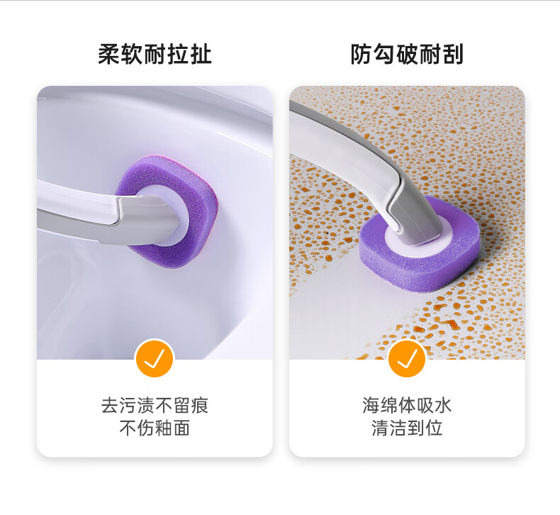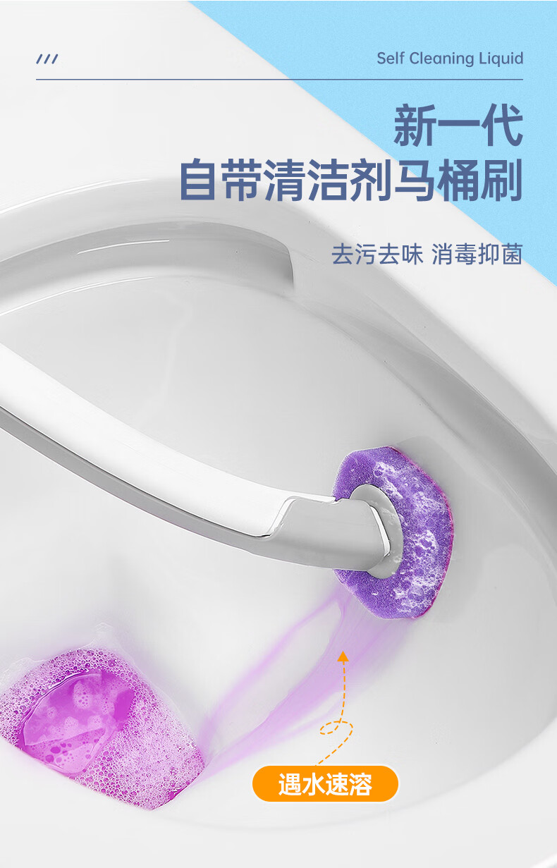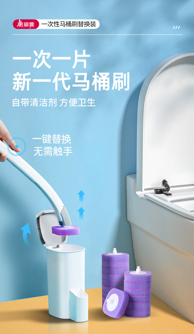 美丽雅一次性马桶刷家用卫生间 厕所洗马桶刷子 自带清洁液替换头 紫色 共28个 自营