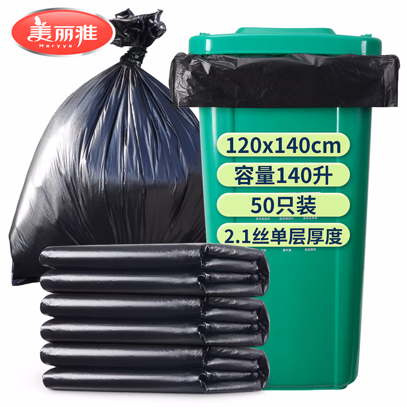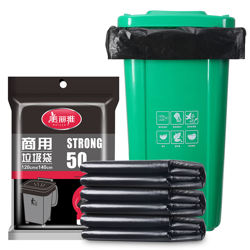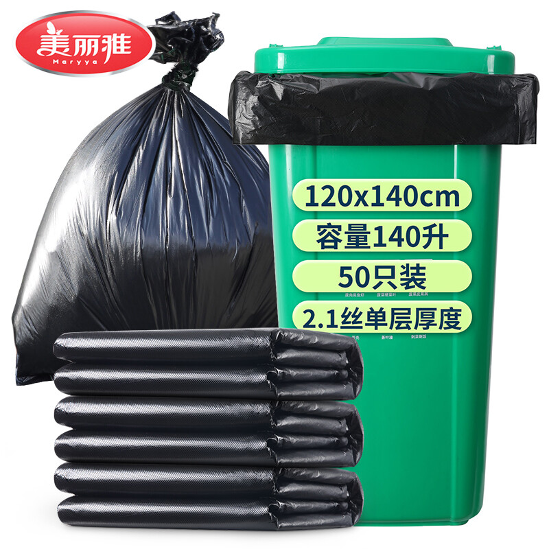 美丽雅 物业垃圾袋 超大号超厚2.1丝商用酒店餐饮家政塑料袋垃圾桶分类袋120*140cm*50只 自营