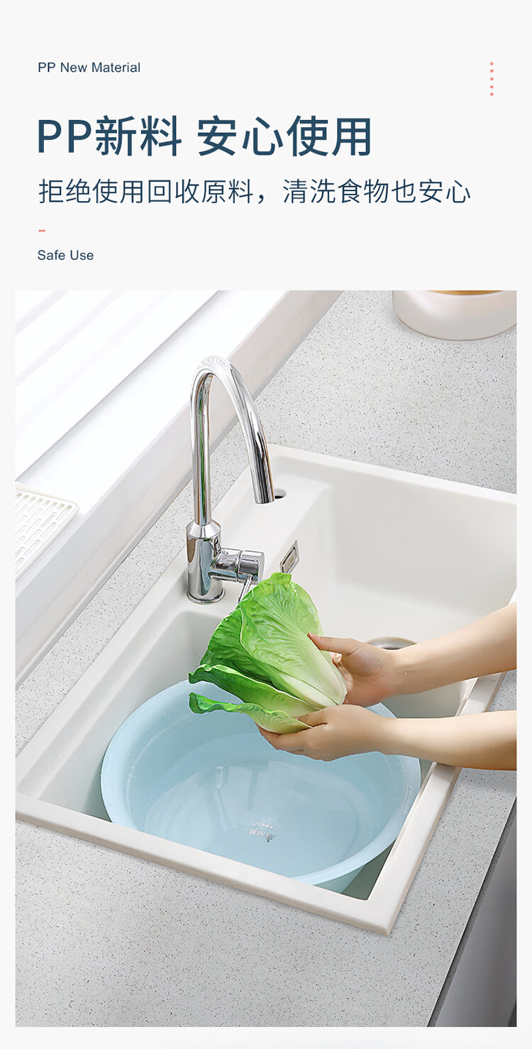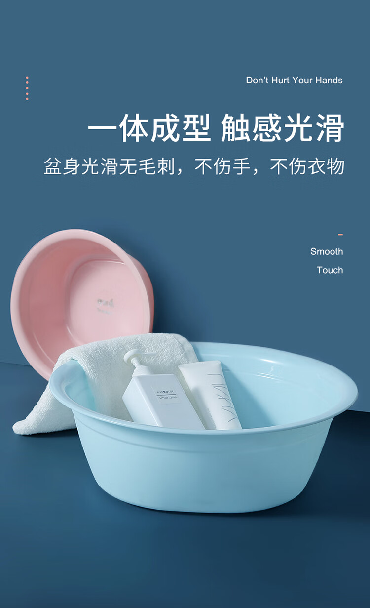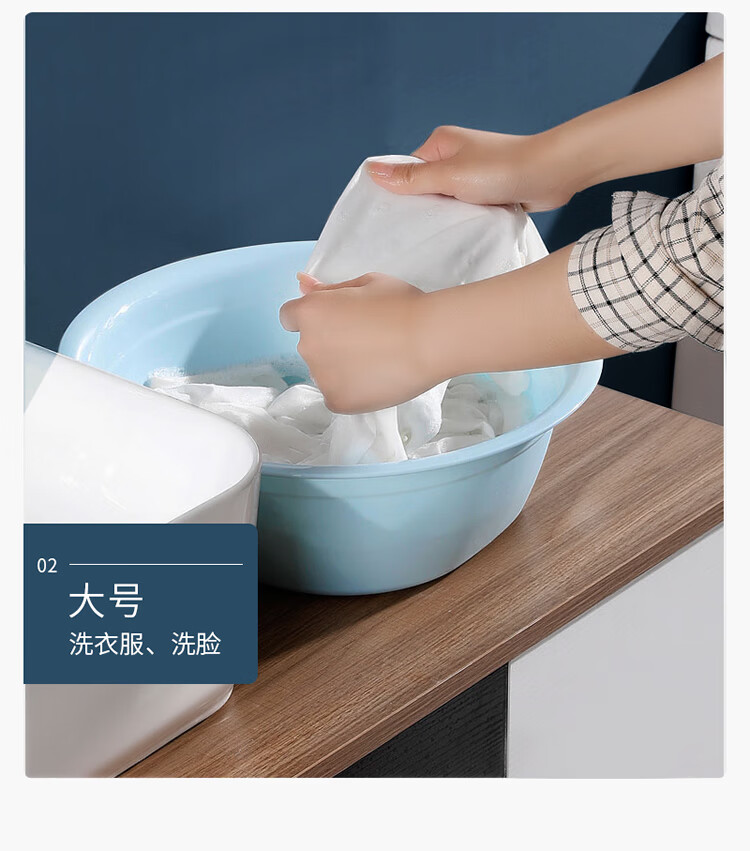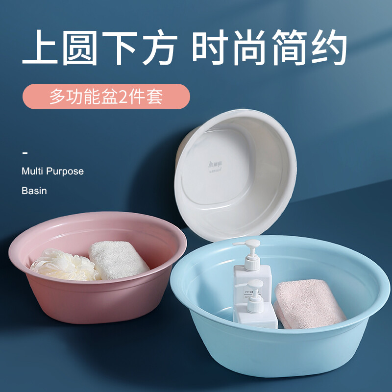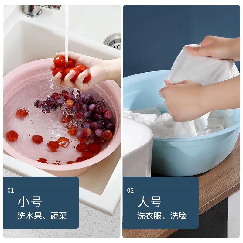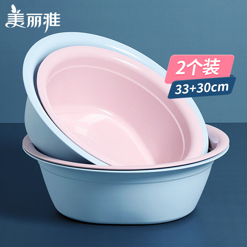 美丽雅 大号塑料洗脸盆家务清洁洗菜盆 家用洗衣洗脚盆【1蓝+1粉】2个装 自营