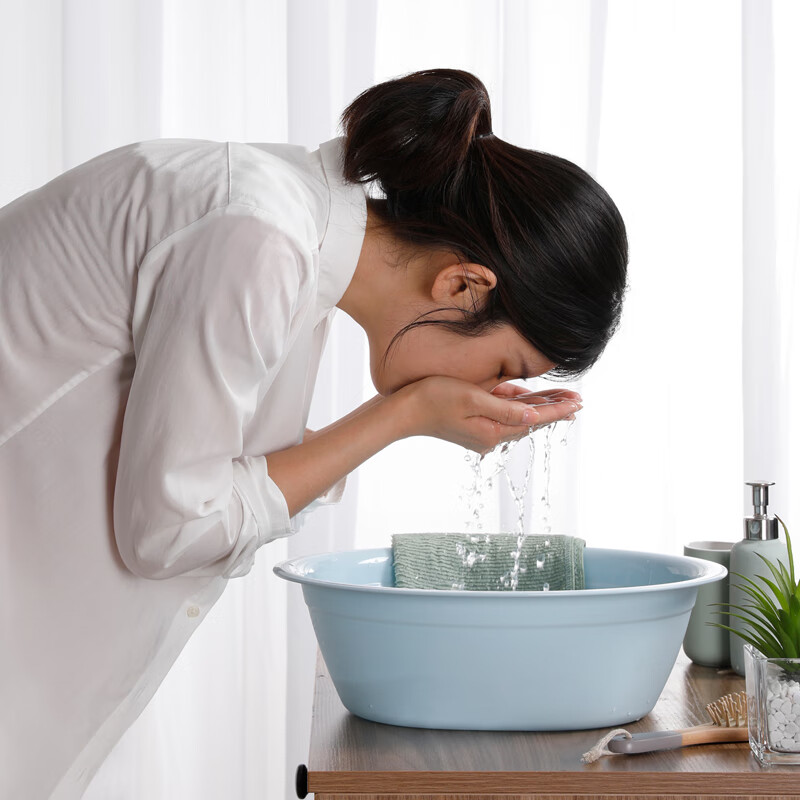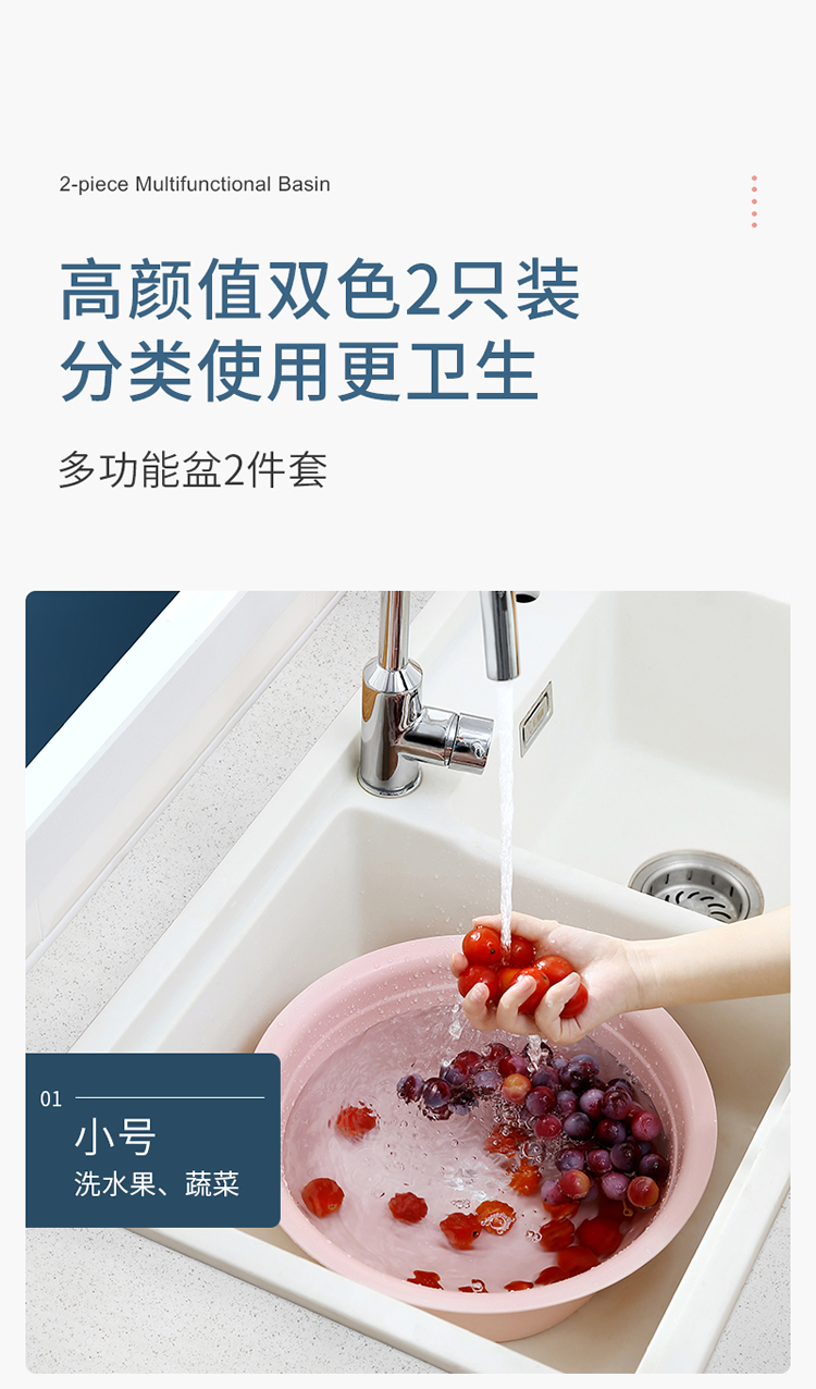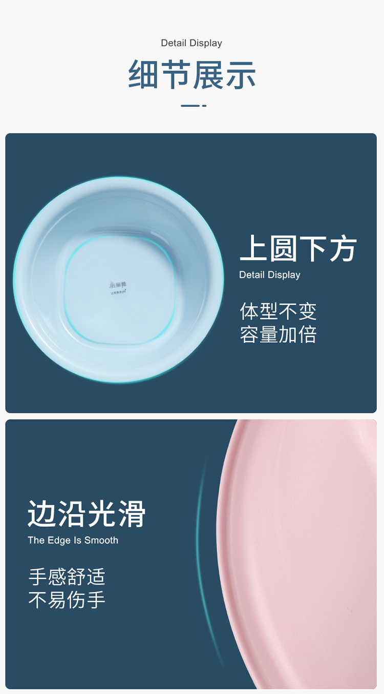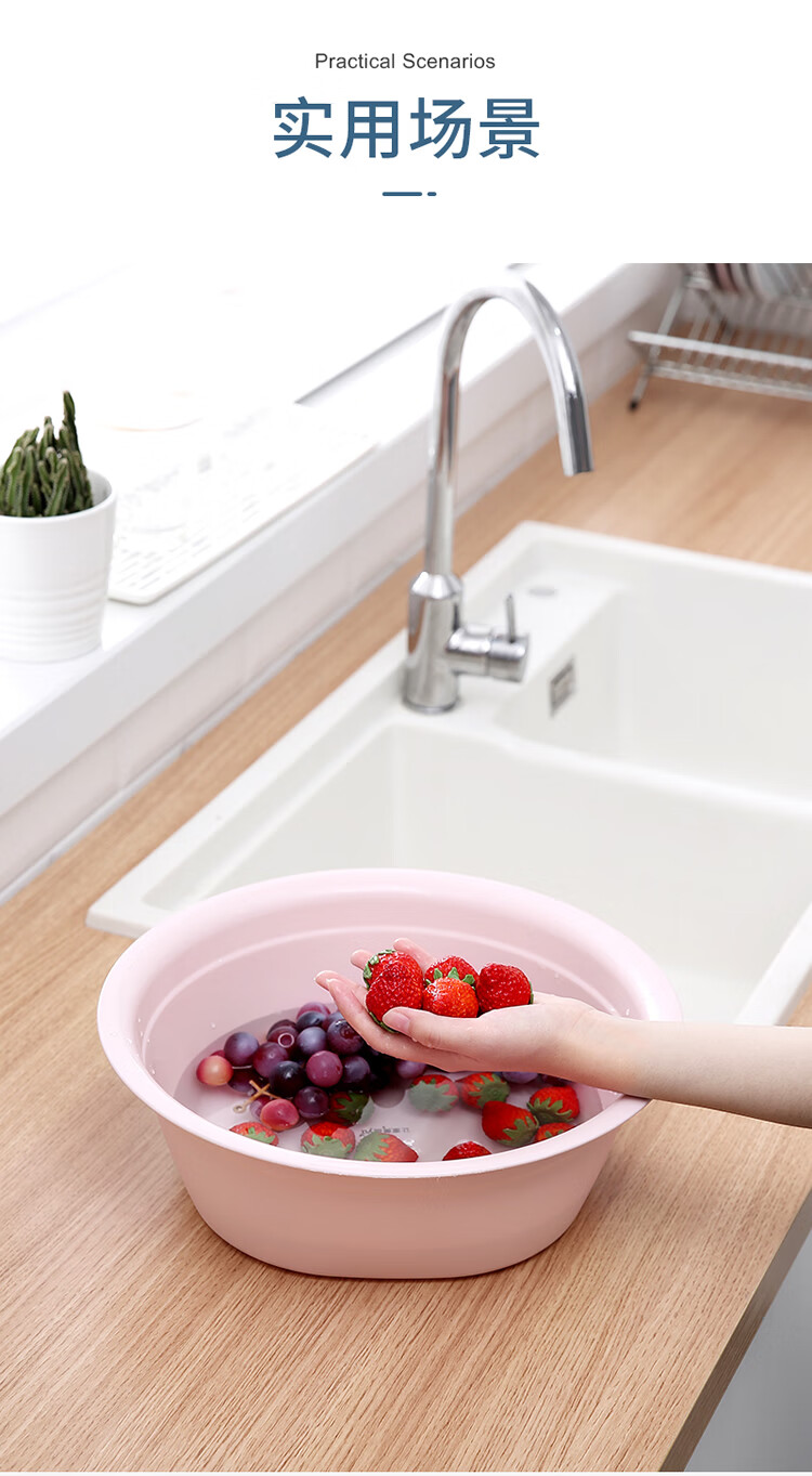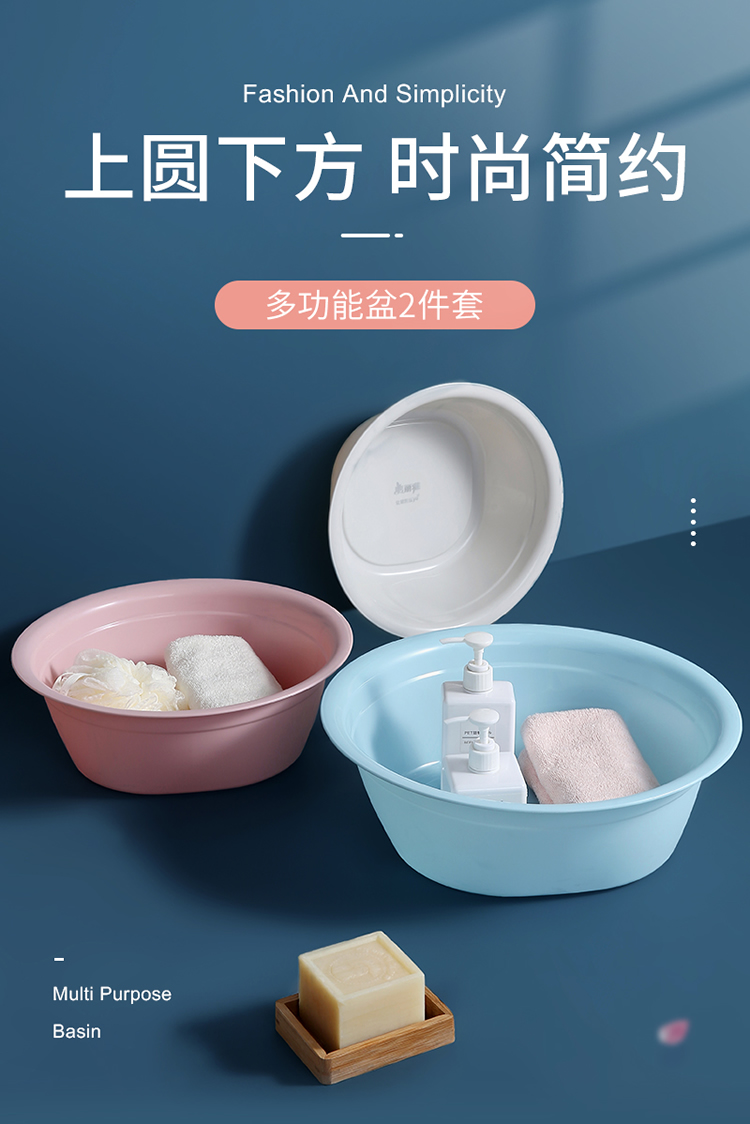 美丽雅 大号塑料洗脸盆家务清洁洗菜盆 家用洗衣洗脚盆【1蓝+1粉】2个装 自营