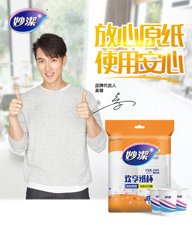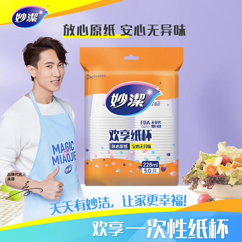妙洁 纸杯一次性杯子 增厚咖啡杯商务杯 中号228ML*50只 自营