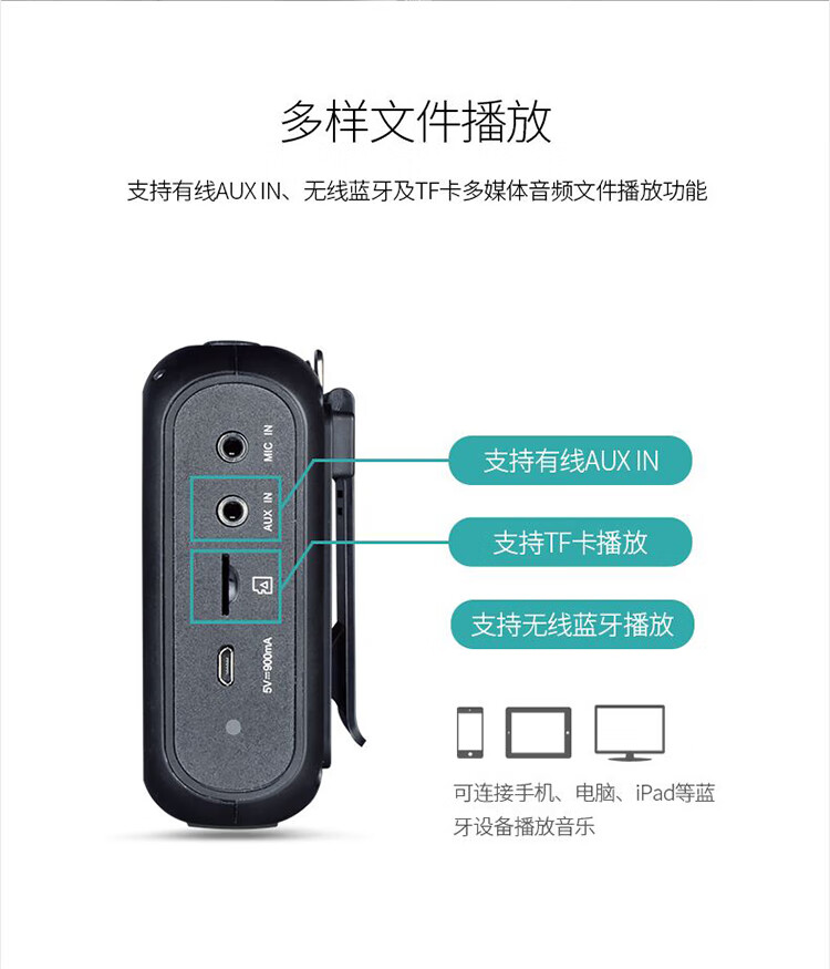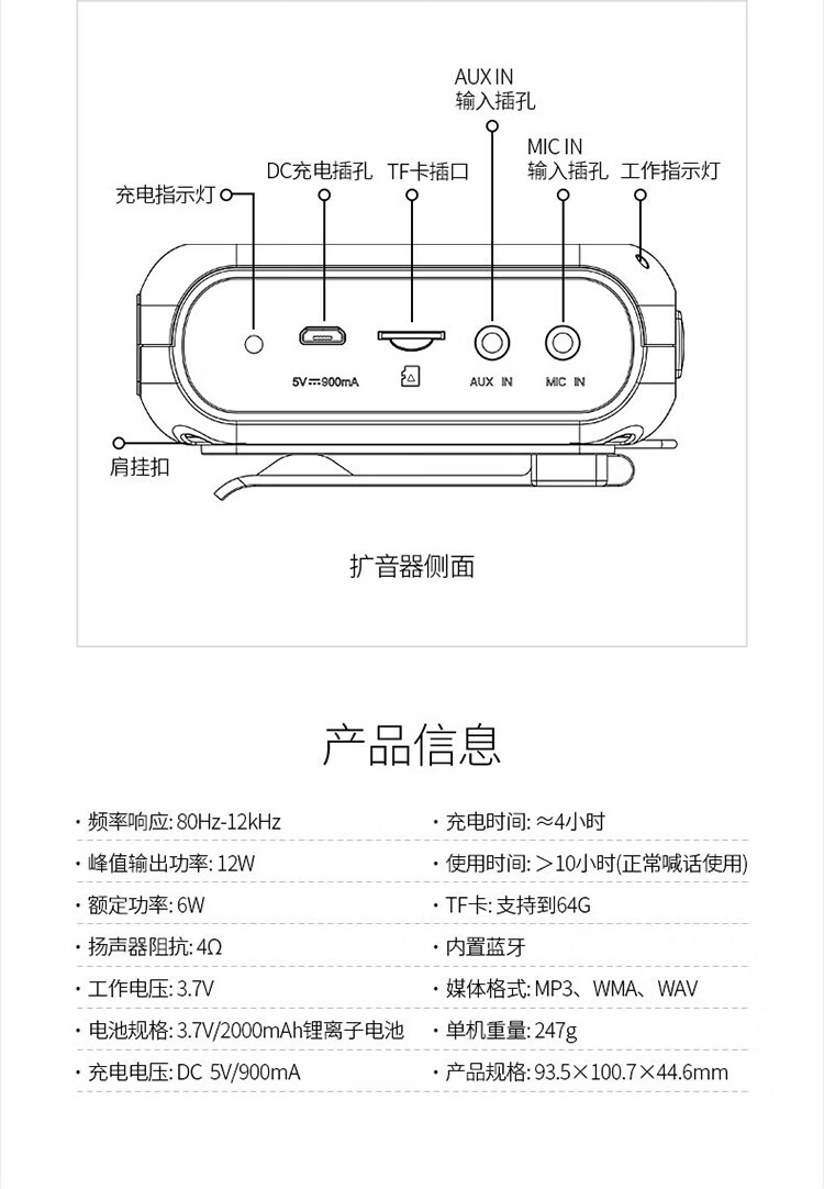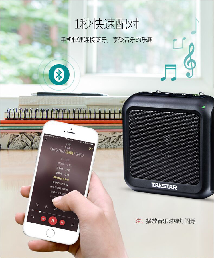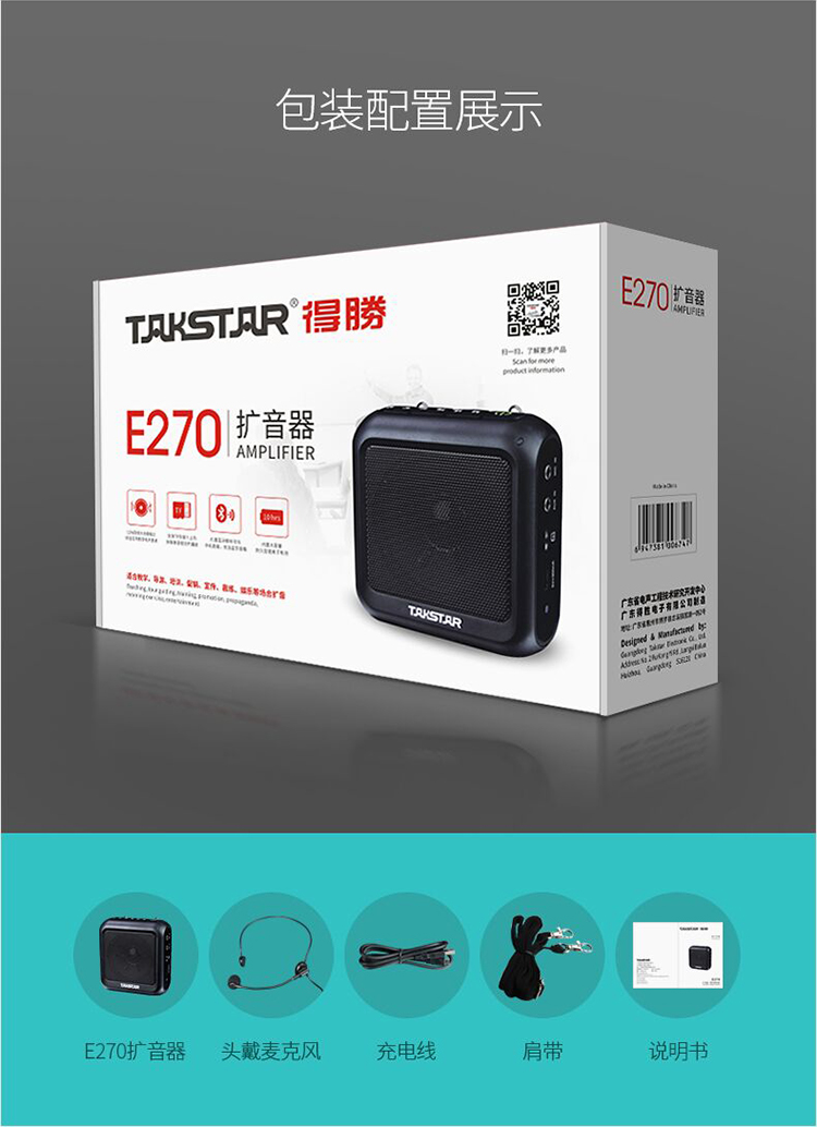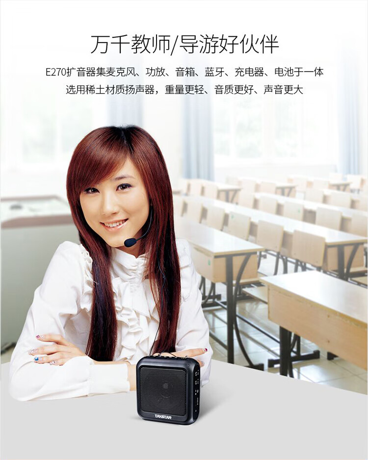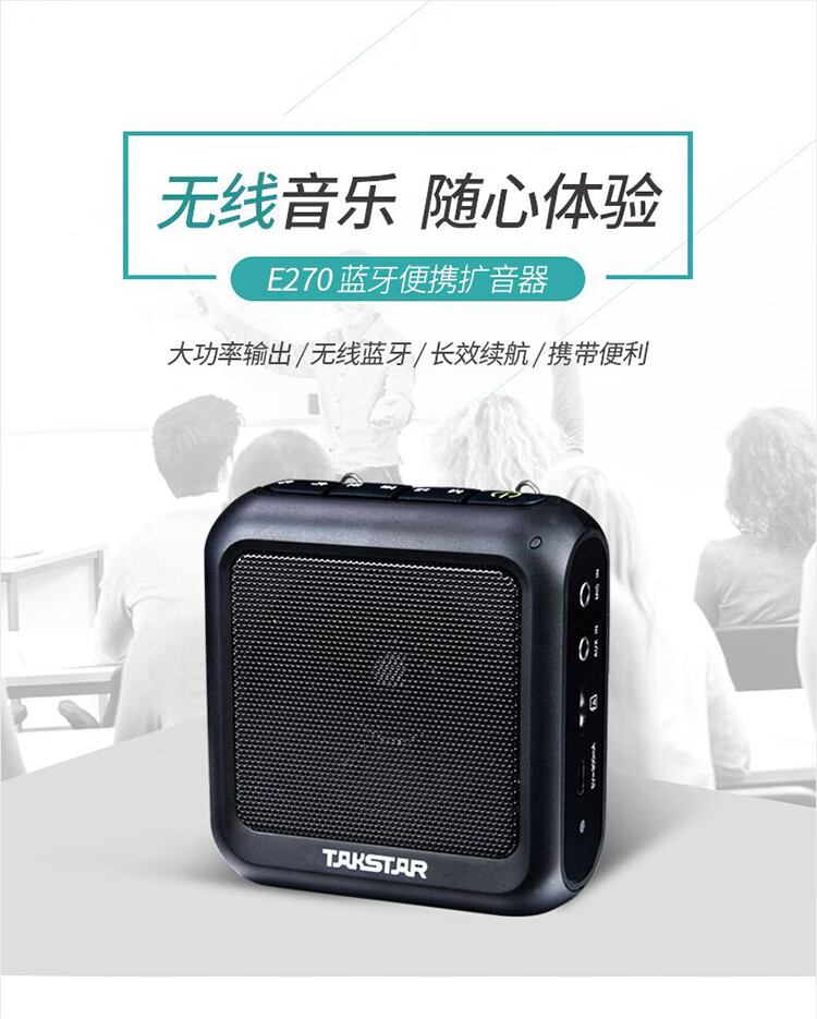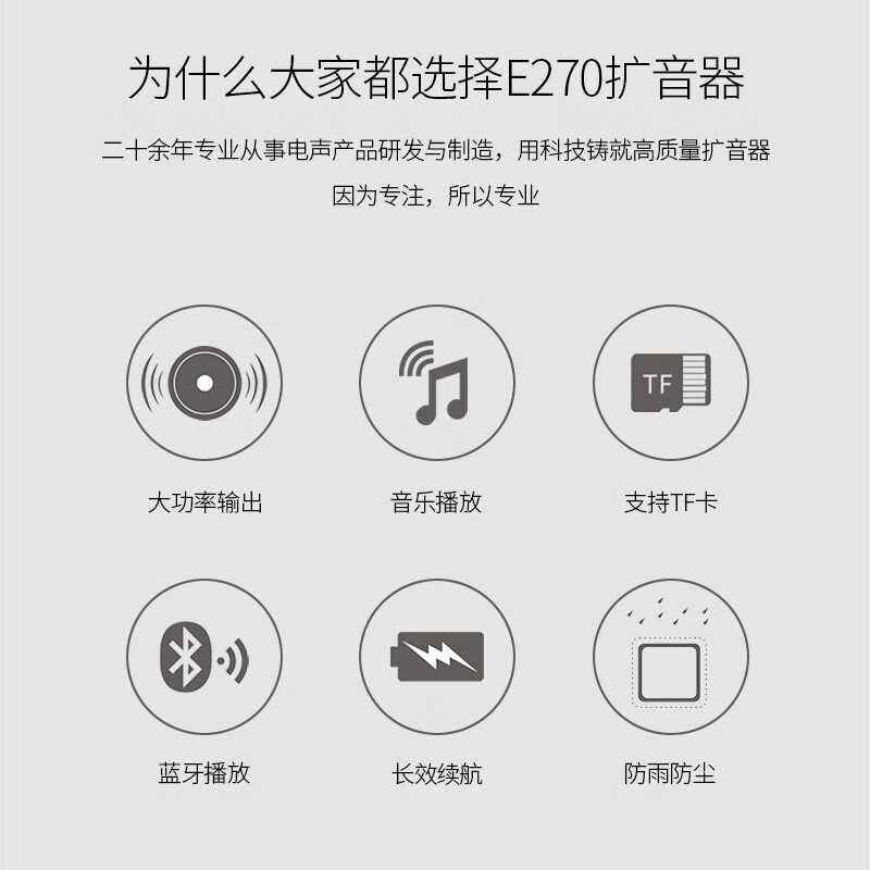 得胜(TAKSTAR)E270有线蓝牙小蜜蜂扩音器便携式教学导游教师专用喇叭可插TF卡音箱 典雅黑 自营