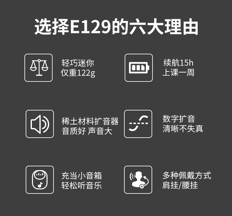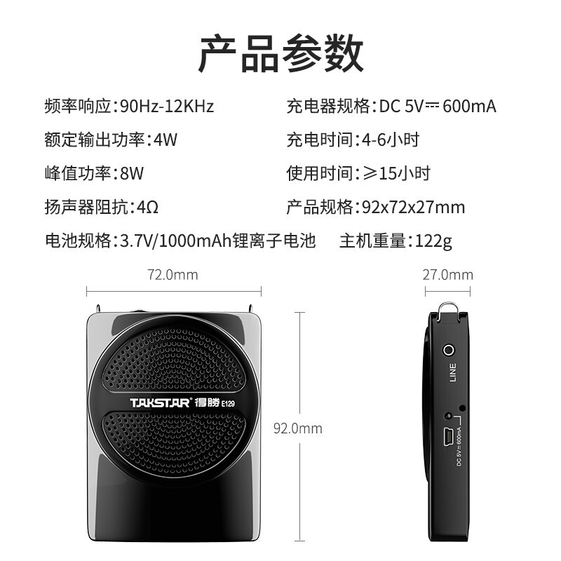得胜(TAKSTAR)E129便携式小蜜蜂扩音器教师专用导游教学上课用小巧喇叭音箱 黑色 自营