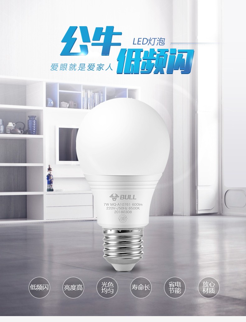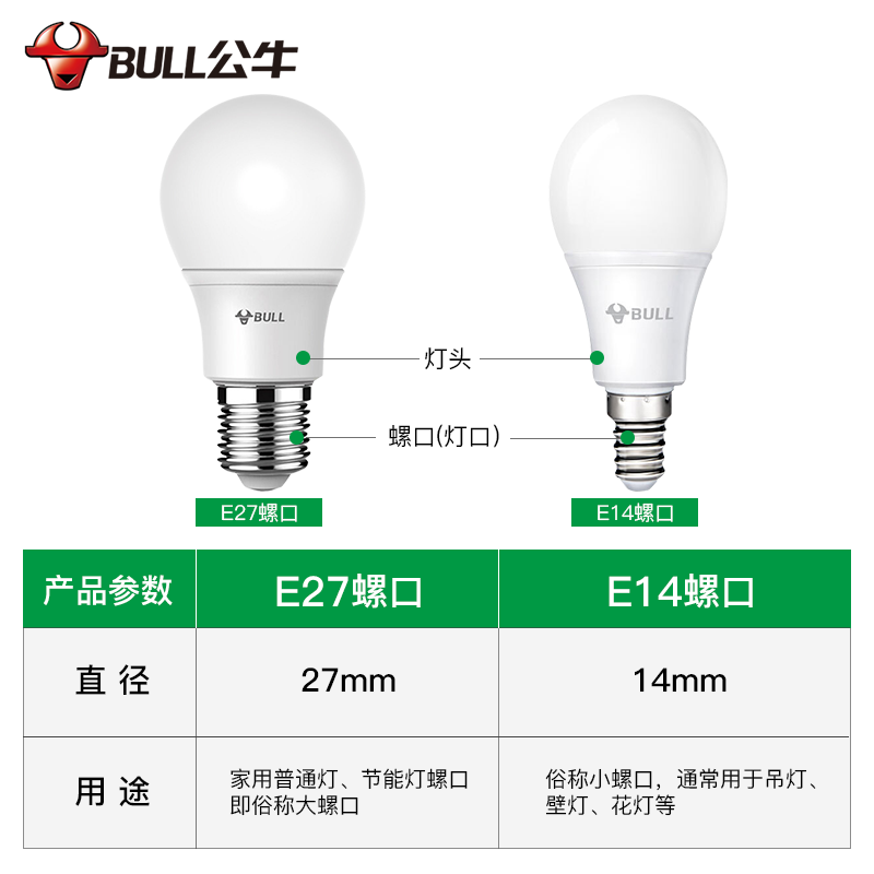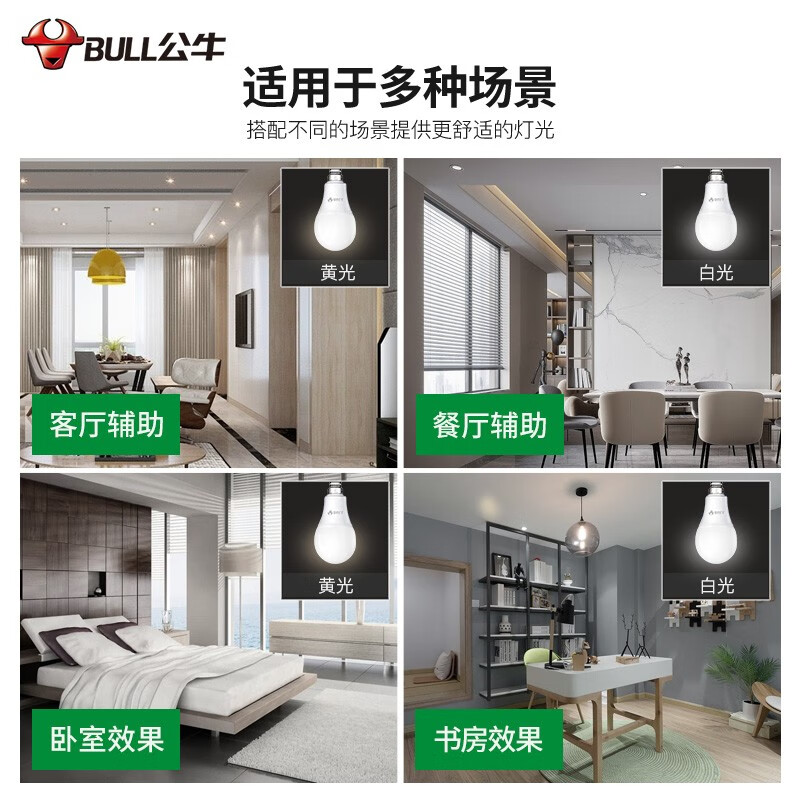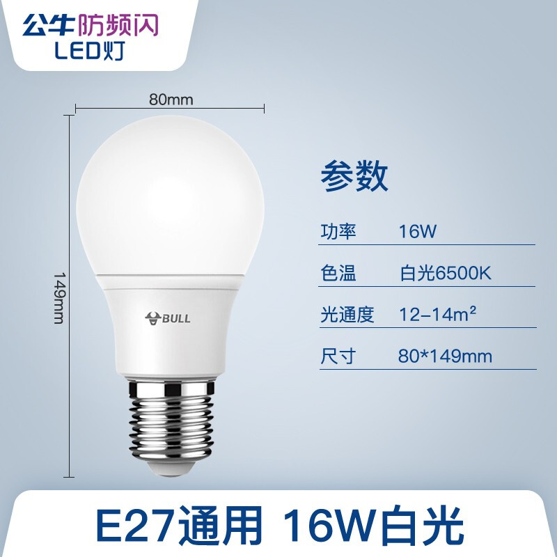 公牛led灯泡节能灯泡e14e27led灯泡螺口灯座螺纹灯高亮照明黄光白光3000k6500k球泡灯 E27螺口16W球泡灯白光 自营