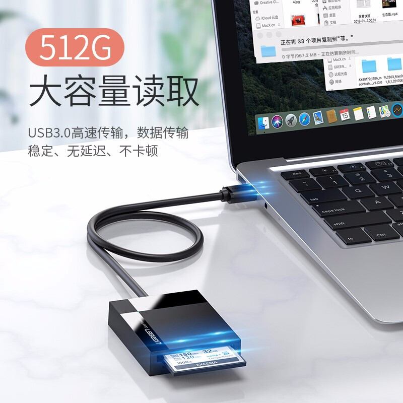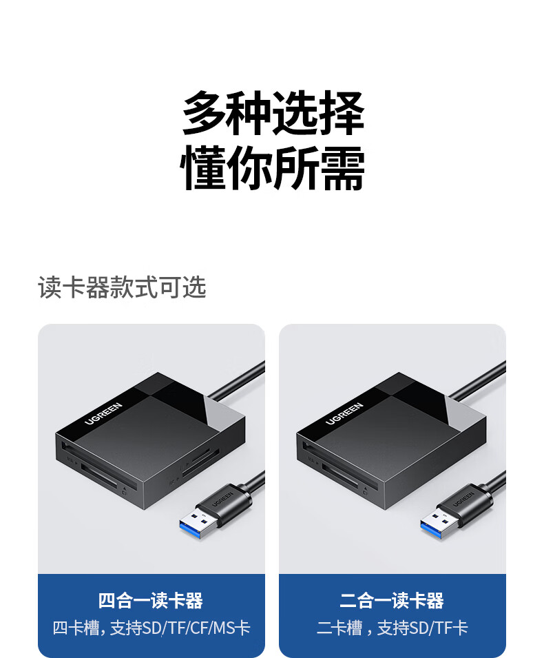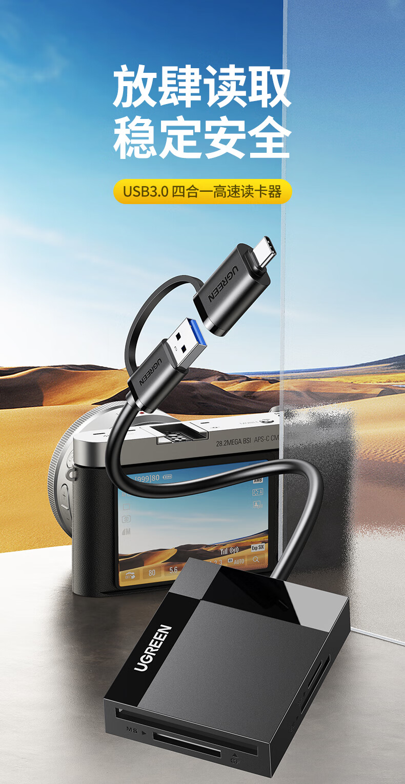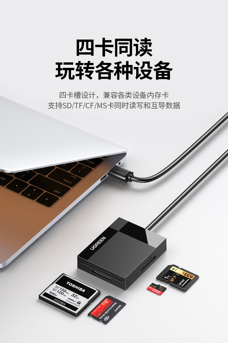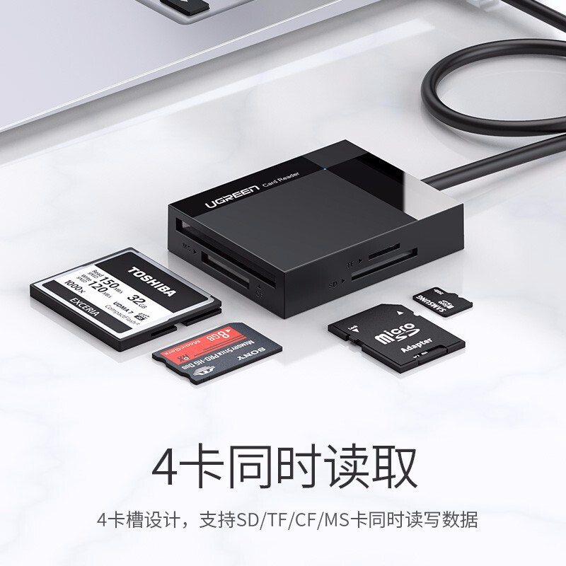 绿联多功能合一读卡器USB3.0高速 支持SD/TF/CF/MS型相机行车记录仪监控内存卡手机存储卡 多卡多读0.5米 自营