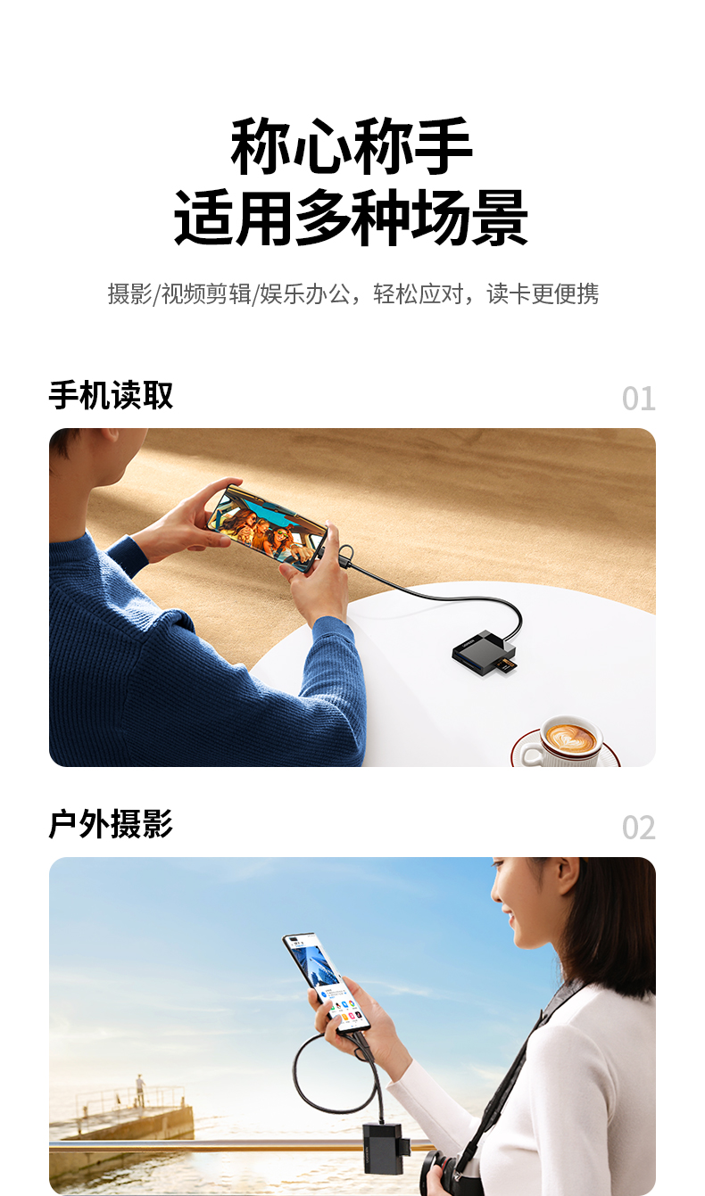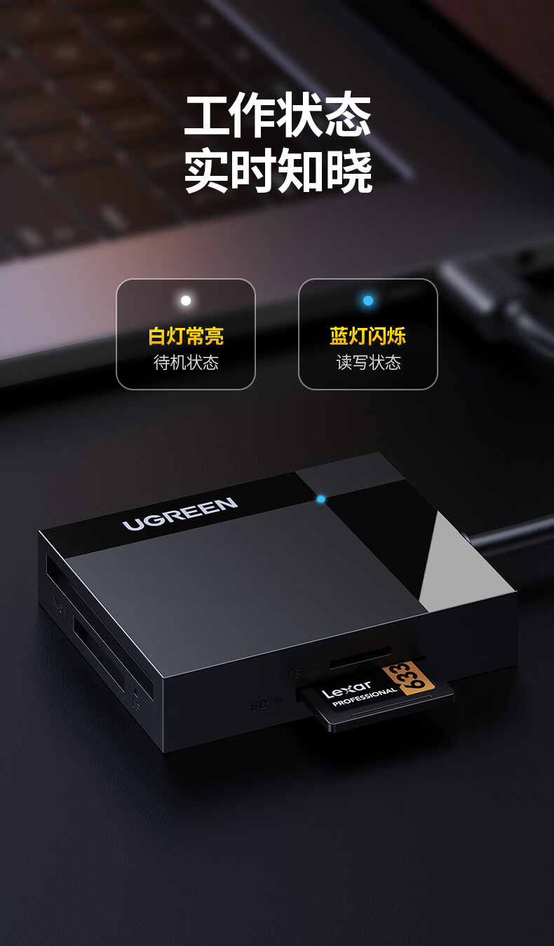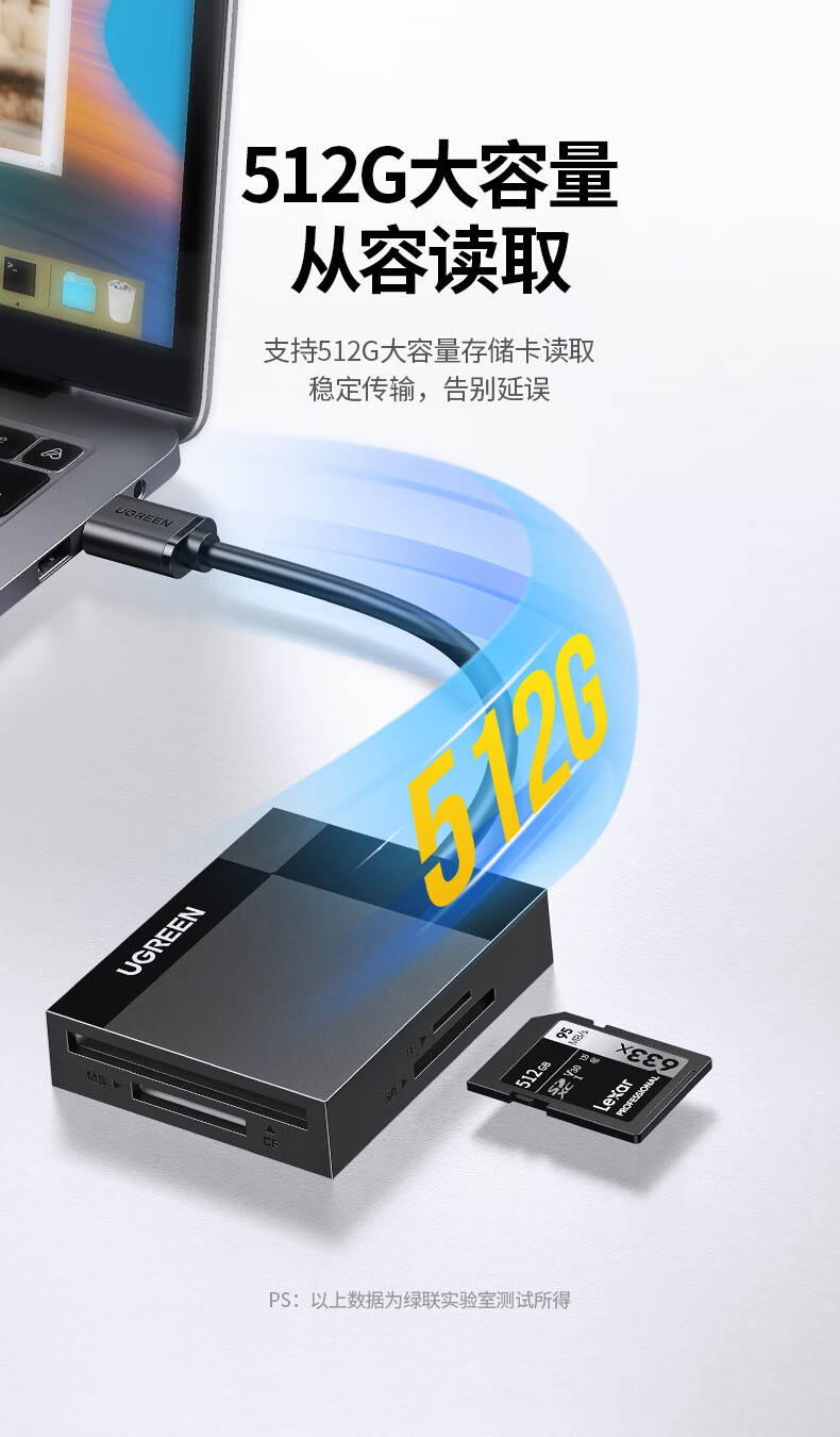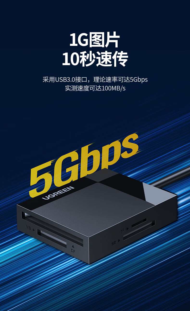 绿联多功能合一读卡器USB3.0高速 支持SD/TF/CF/MS型相机行车记录仪监控内存卡手机存储卡 多卡多读0.5米 自营