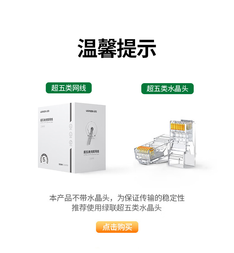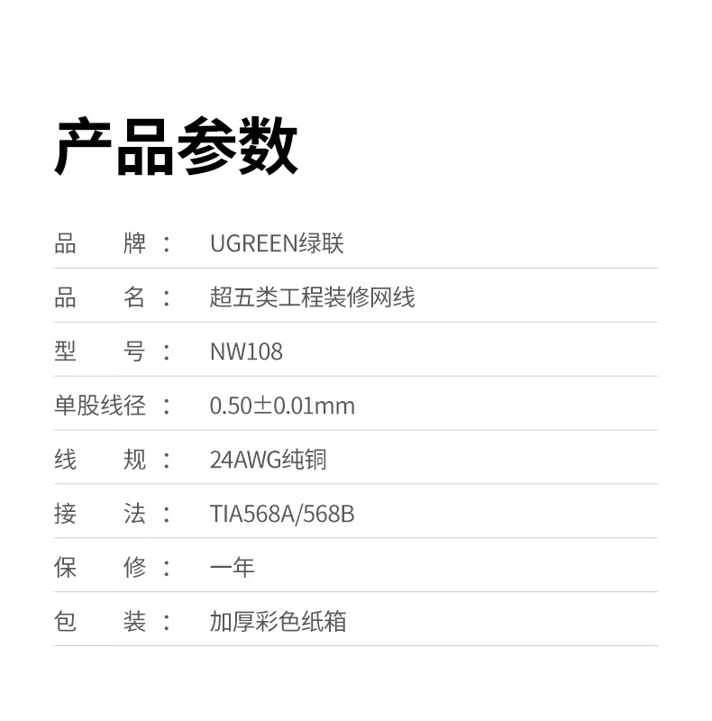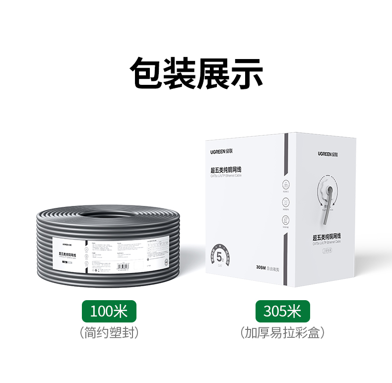 绿联(UGREEN)超五类网线【0.50±0.01mm纯铜线芯】CAT5e千兆非屏蔽箱线 工程家装监控布线305米 60547 自营