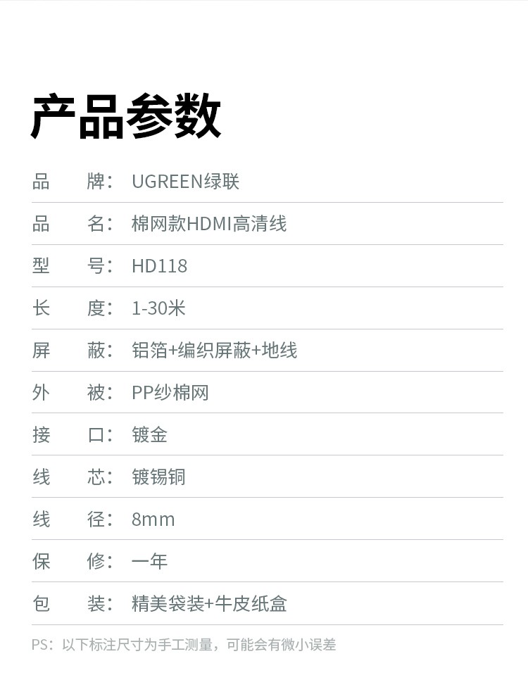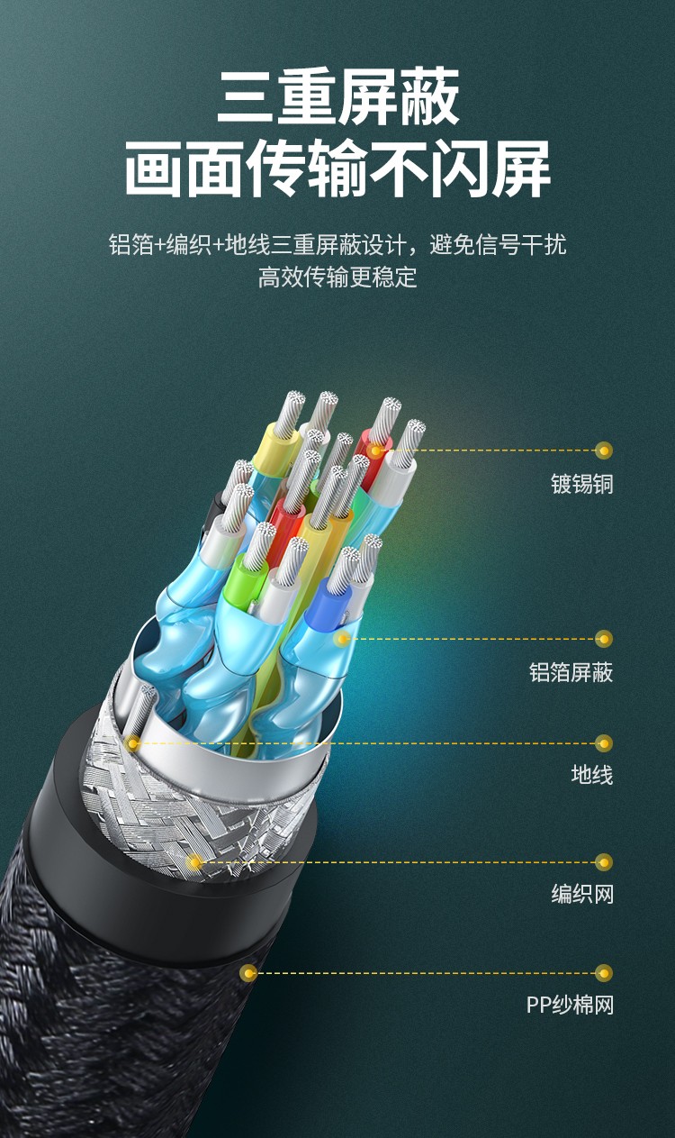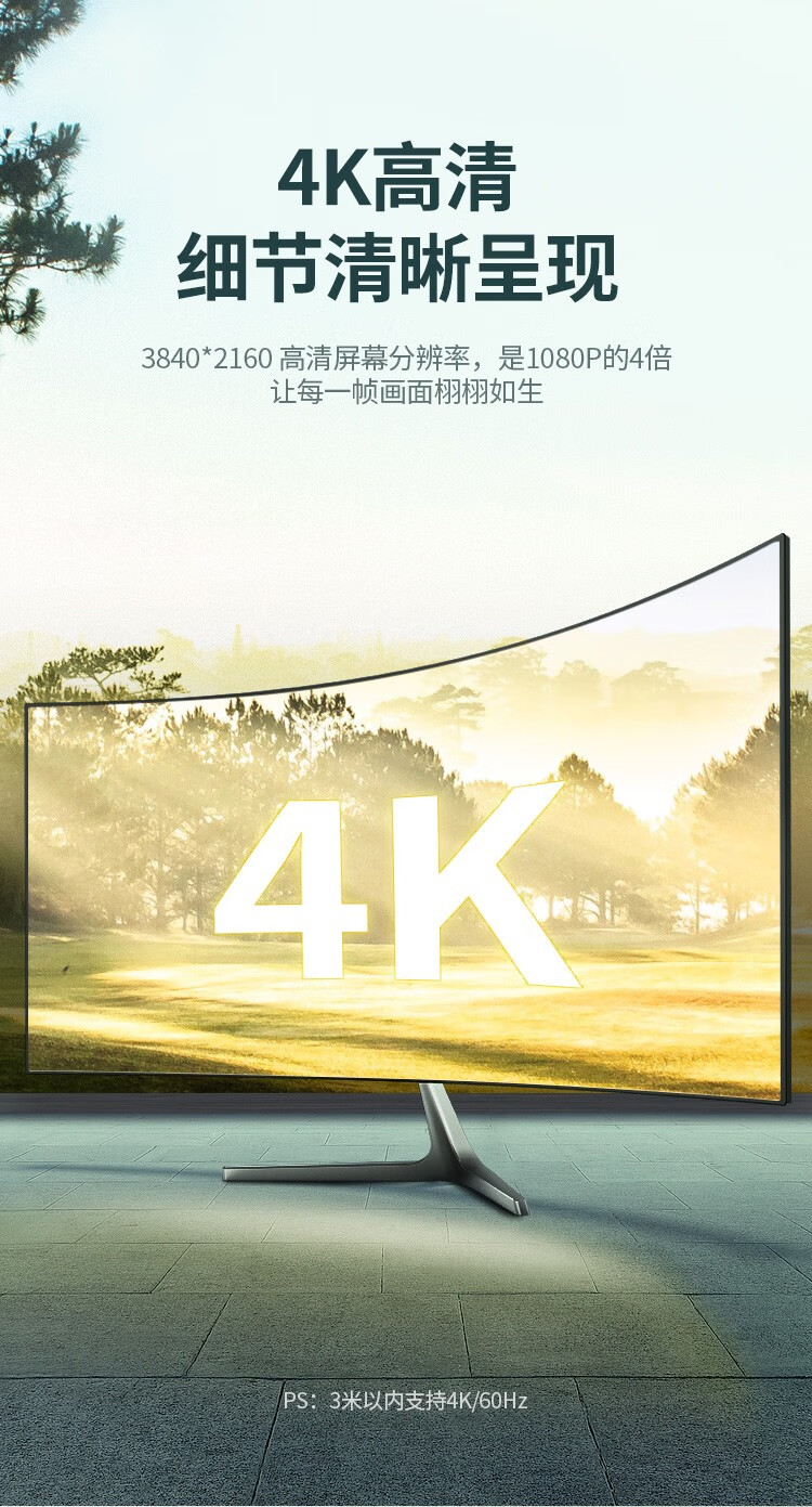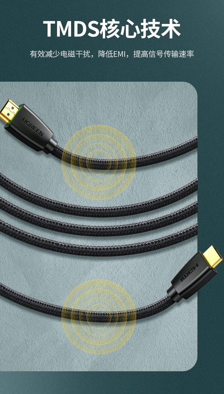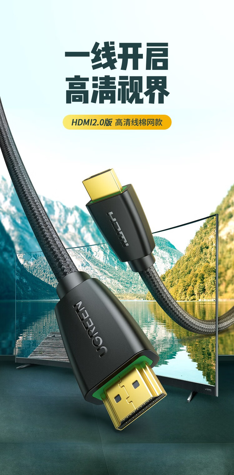 绿联 HDMI线2.0版 4k数字高清线 3D视频线 笔记本电脑连接电视投影仪显示器数据线HD118 黑色带编织网 3米 自营