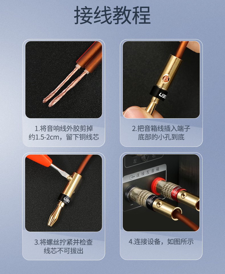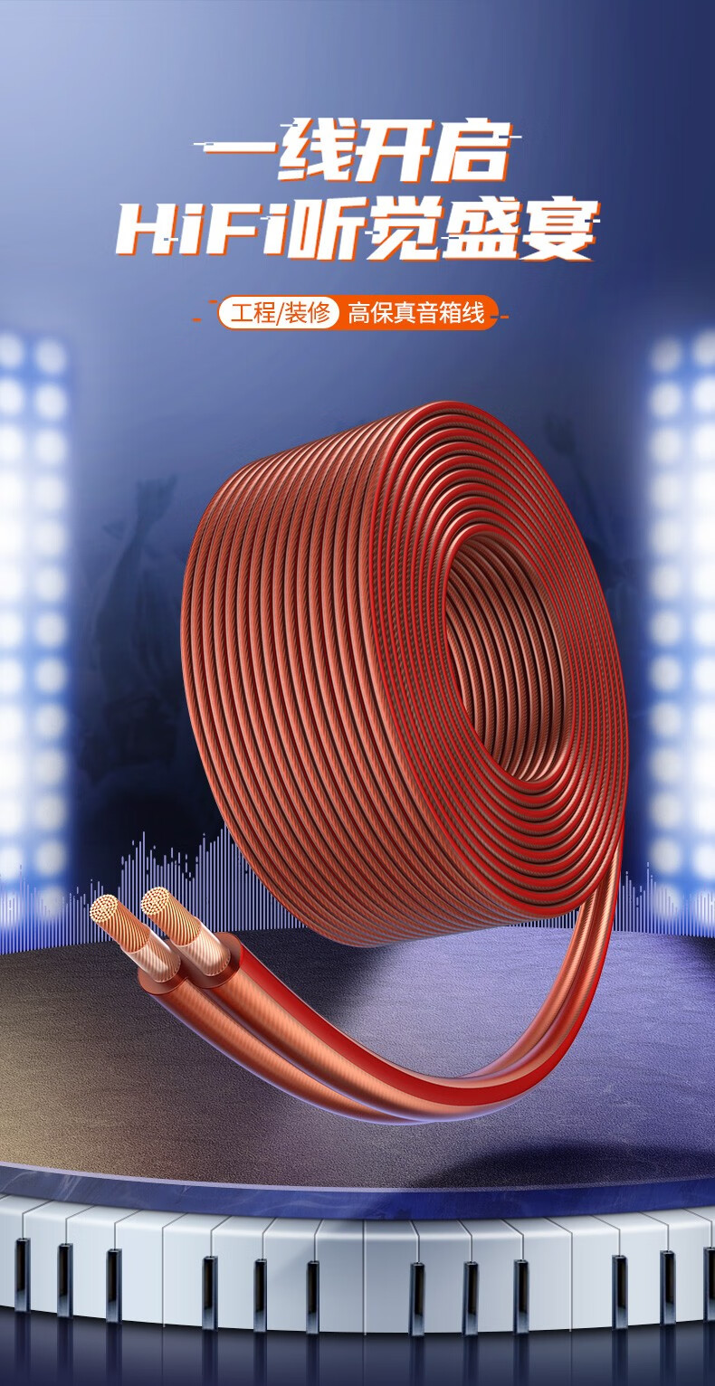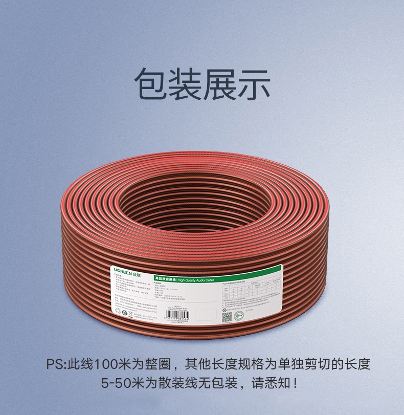 绿联喇叭线音箱纯铜接头端子工程装修家庭影院专业连接功放音频输出入加长香蕉插头高音双线缆汽车改装音响线 酒红色 100芯 100米 自营