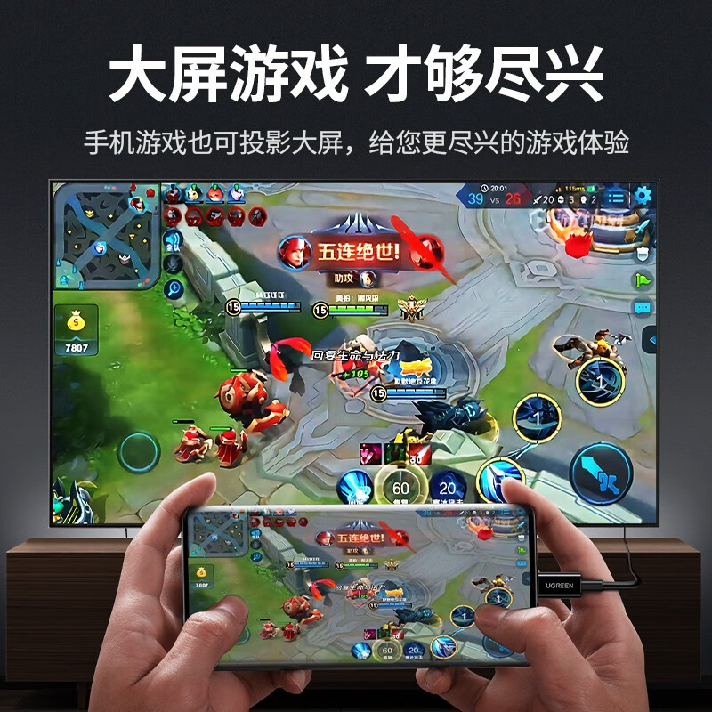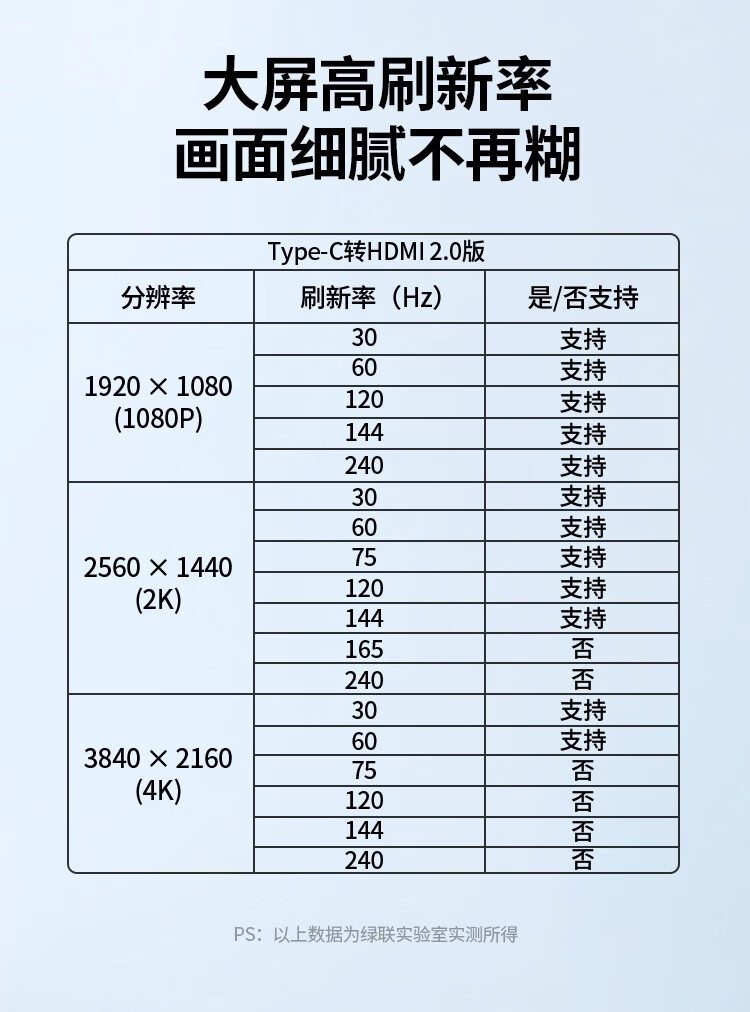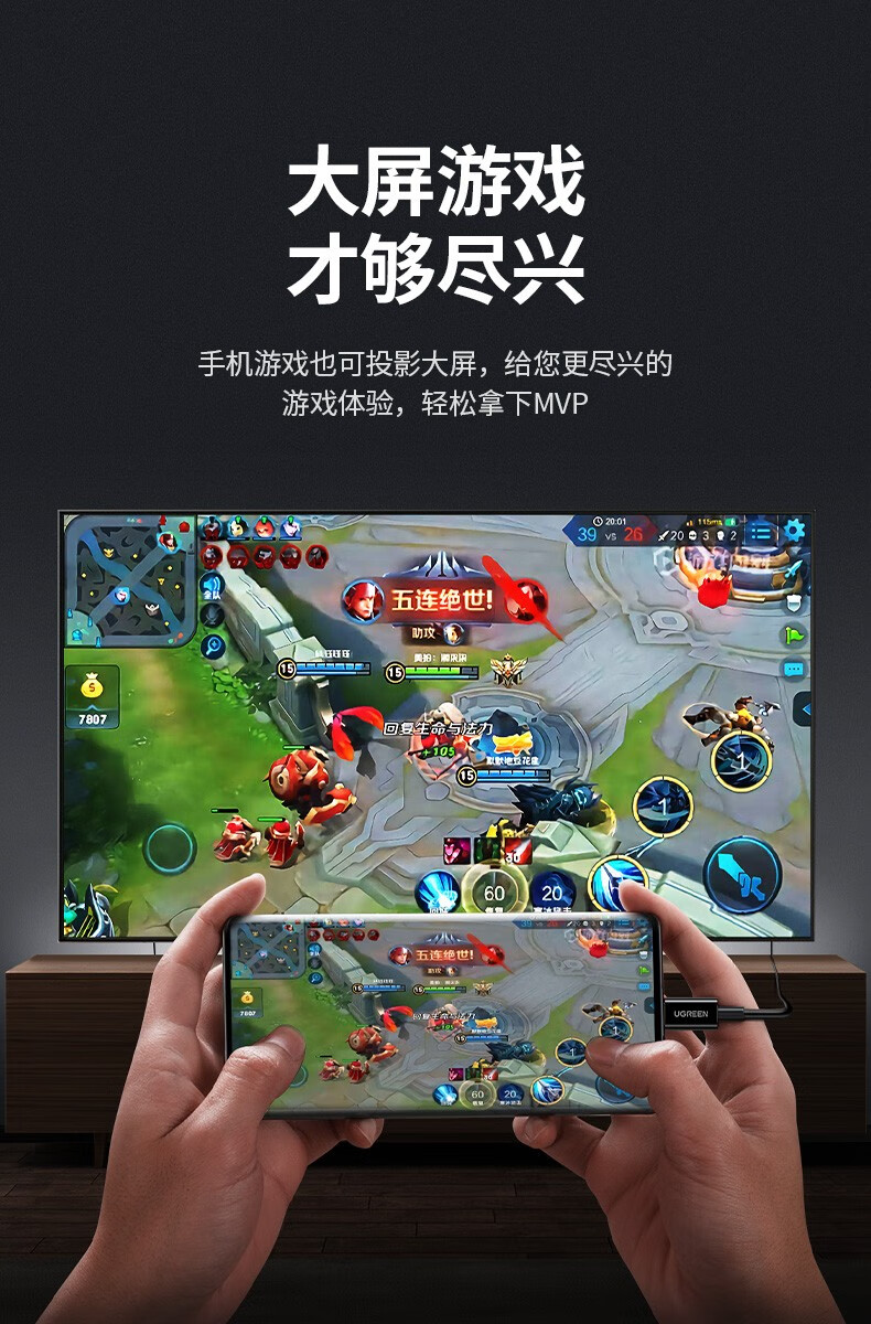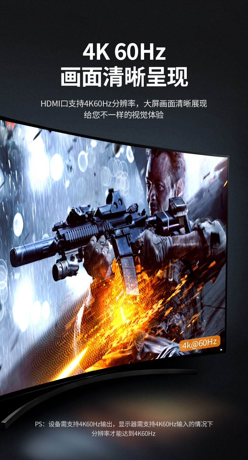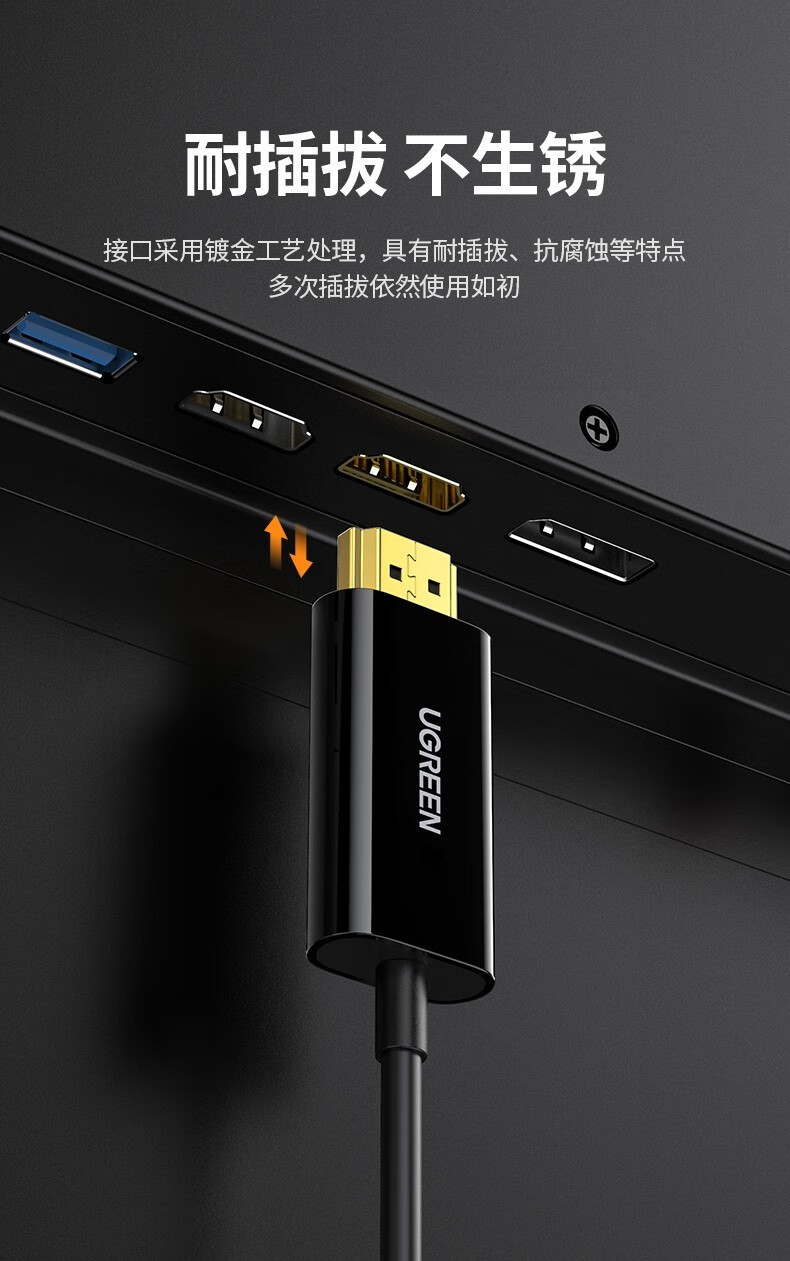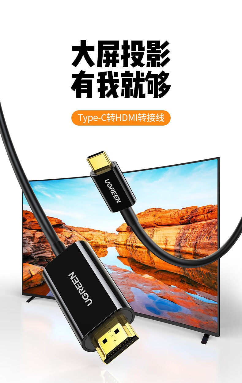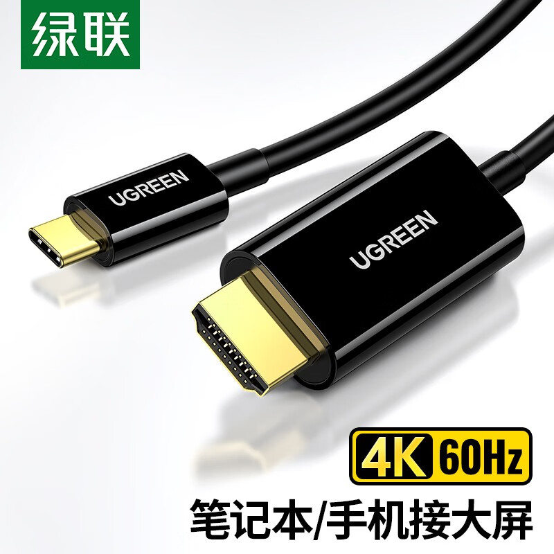 绿联 Type-C转HDMI转换器线扩展坞4K60HzUSB-C转HDMI转接头适用笔记本电脑拓展 USB-C转HDMI拓展坞高清转接头 黑色1.5米 自营