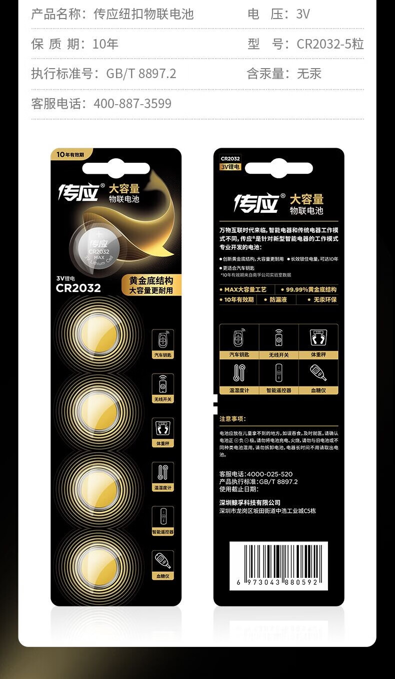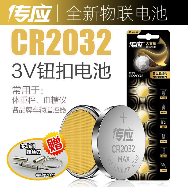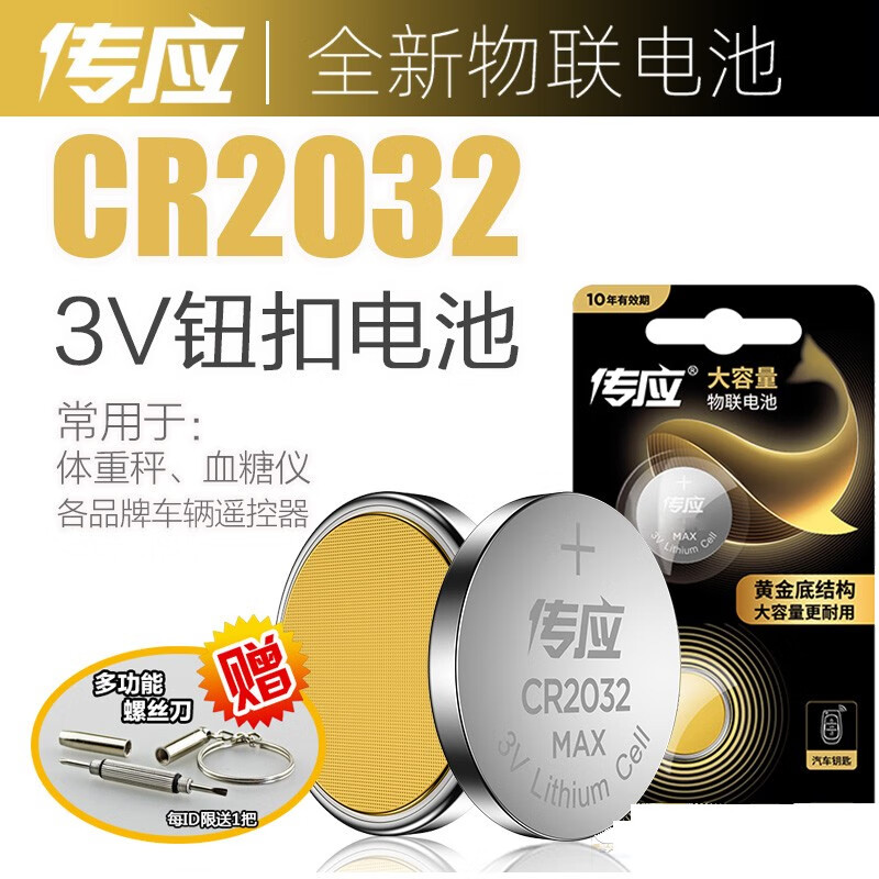 传应 传应 纽扣电池CR2032锂电池3V电脑主板人体秤小米盒子汽车遥控器电池 CR20321粒装 自营