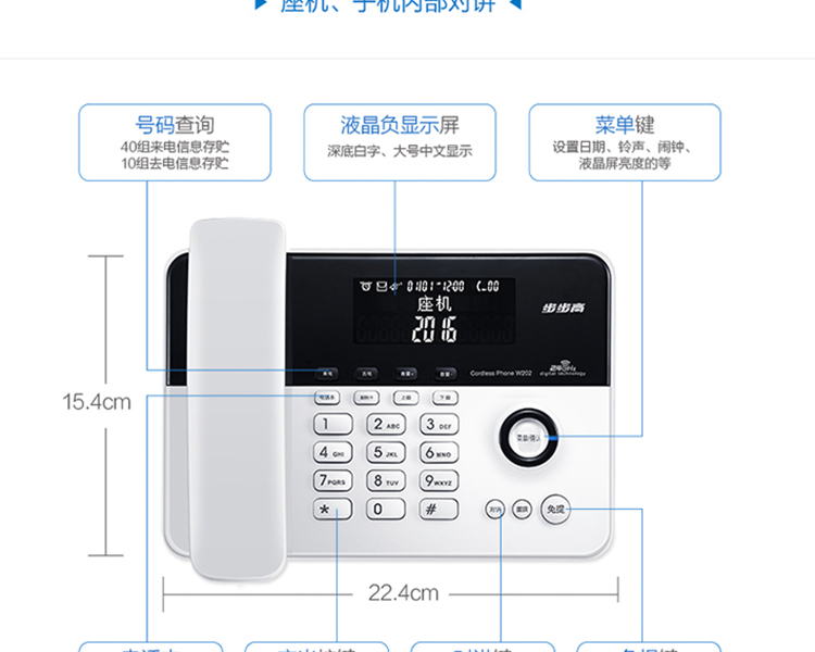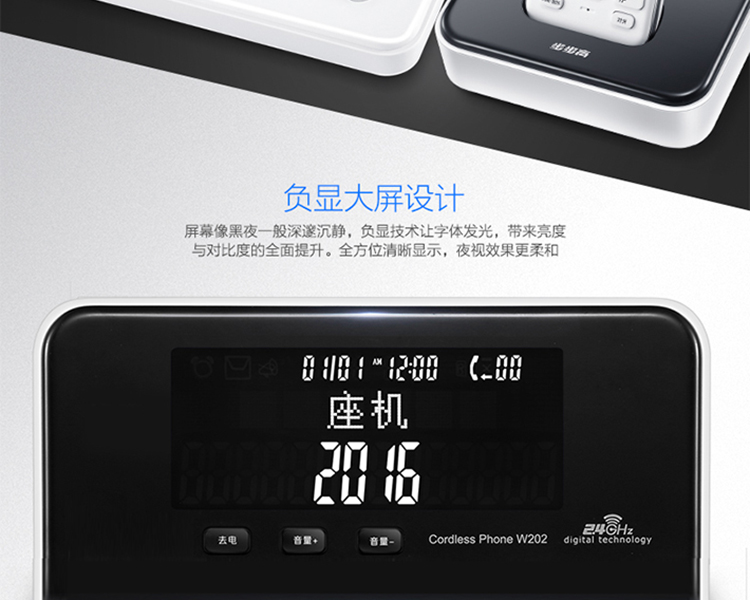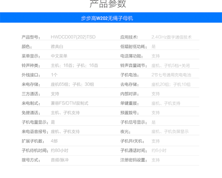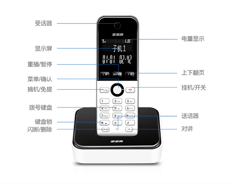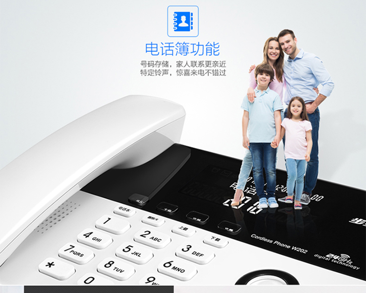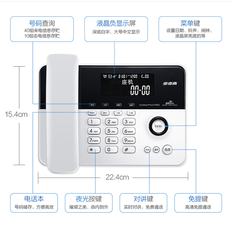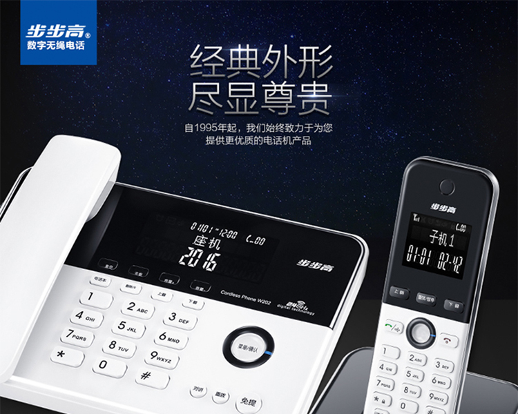 步步高(BBK)无绳电话机 无线座机 子母机 办公家用 旗舰多功能 中文菜单 W202雅典白