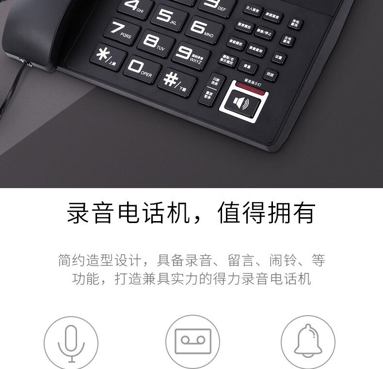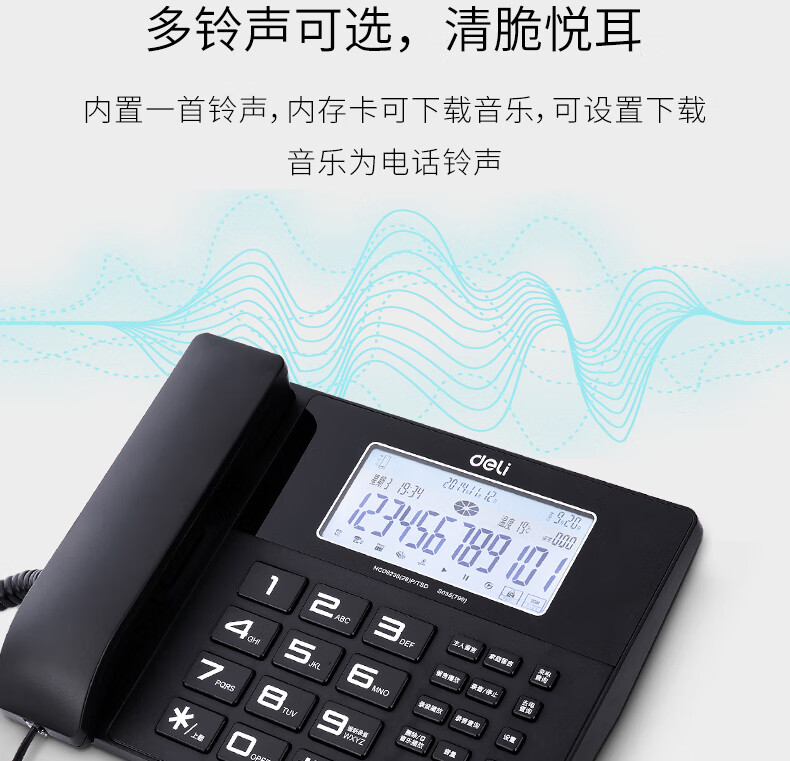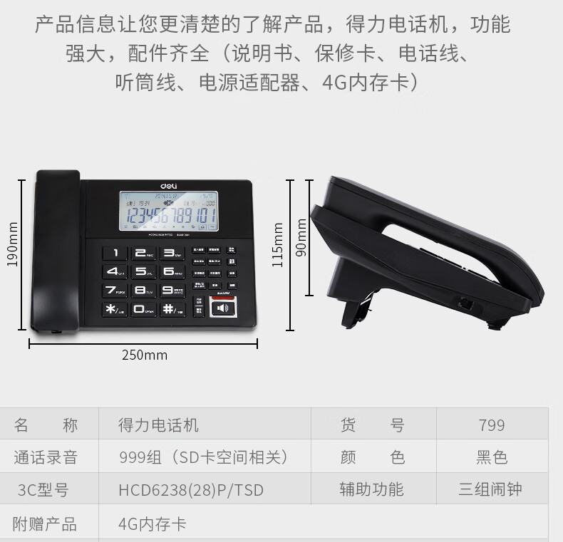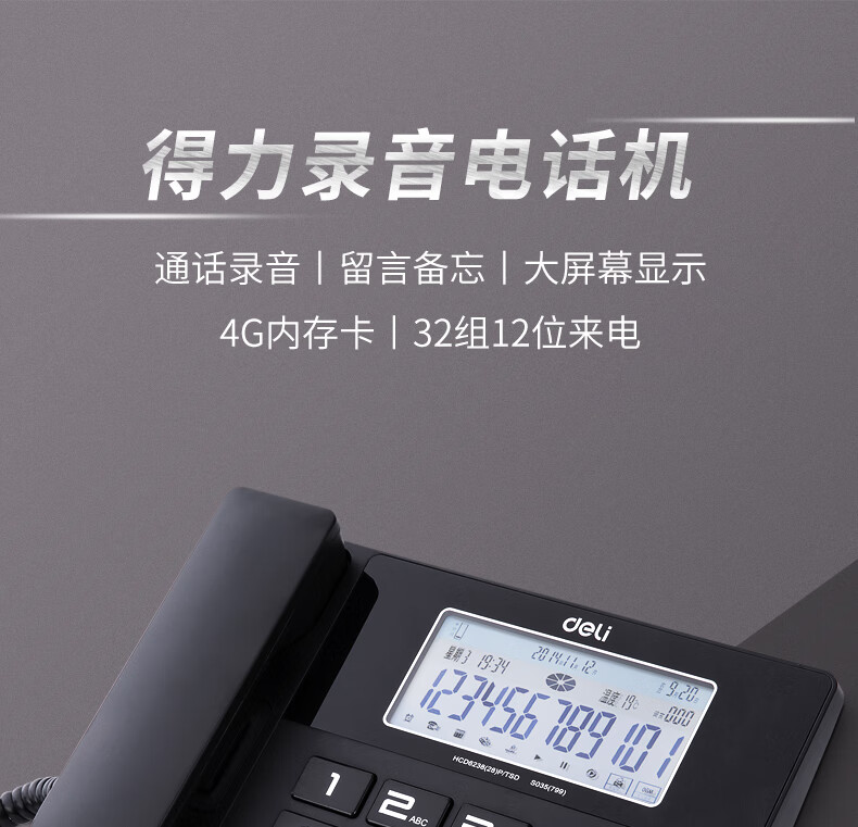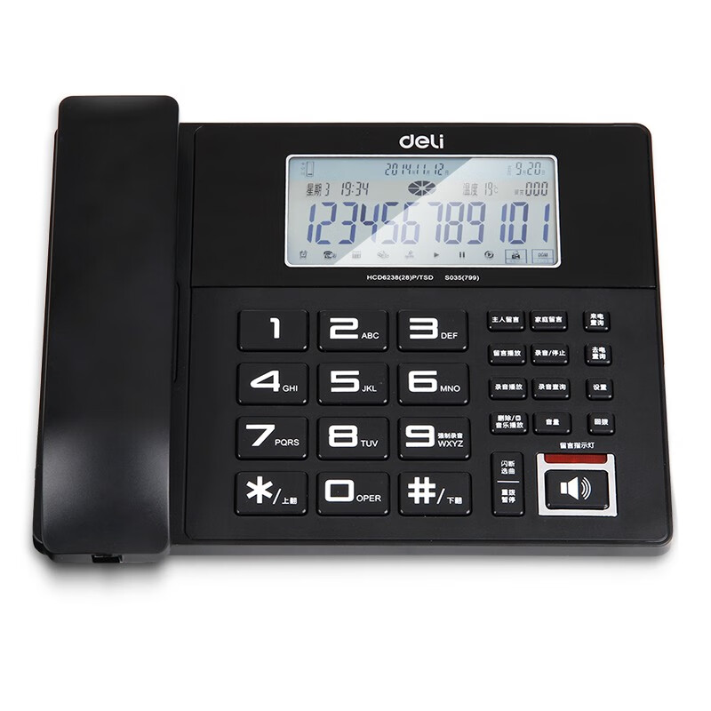 得力(deli)录音电话机 固定座机 办公家用 来电显示 799 黑 办公录音电话机 自营