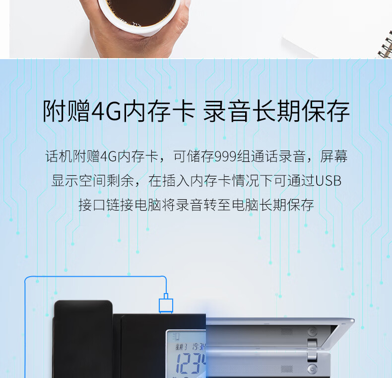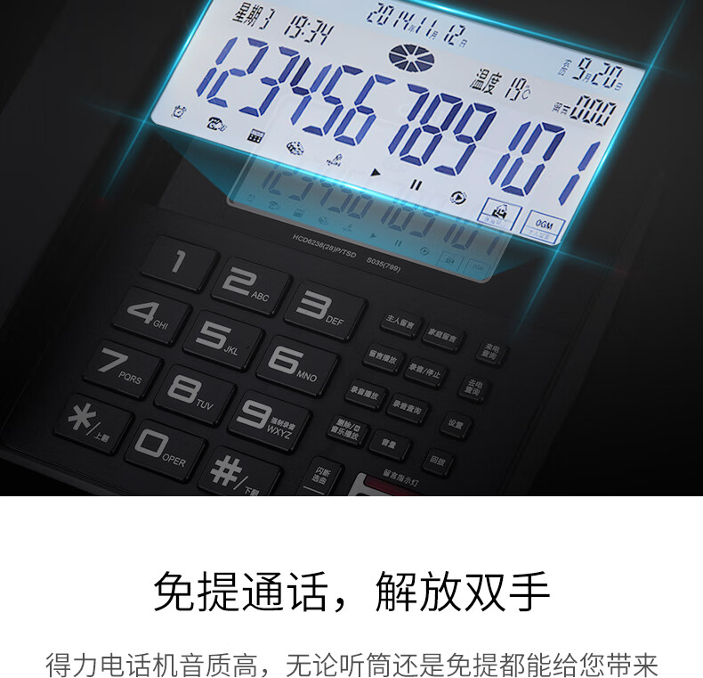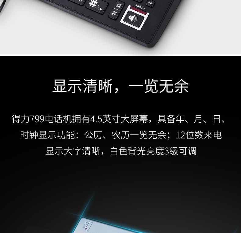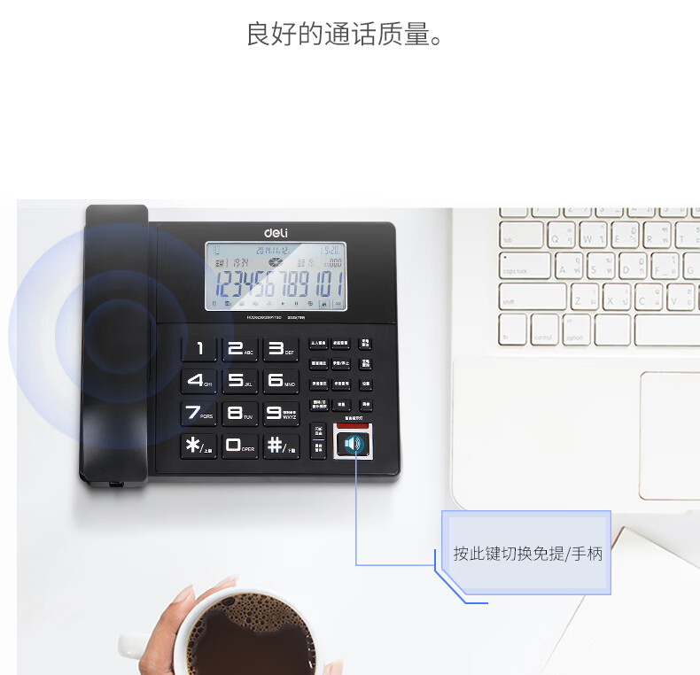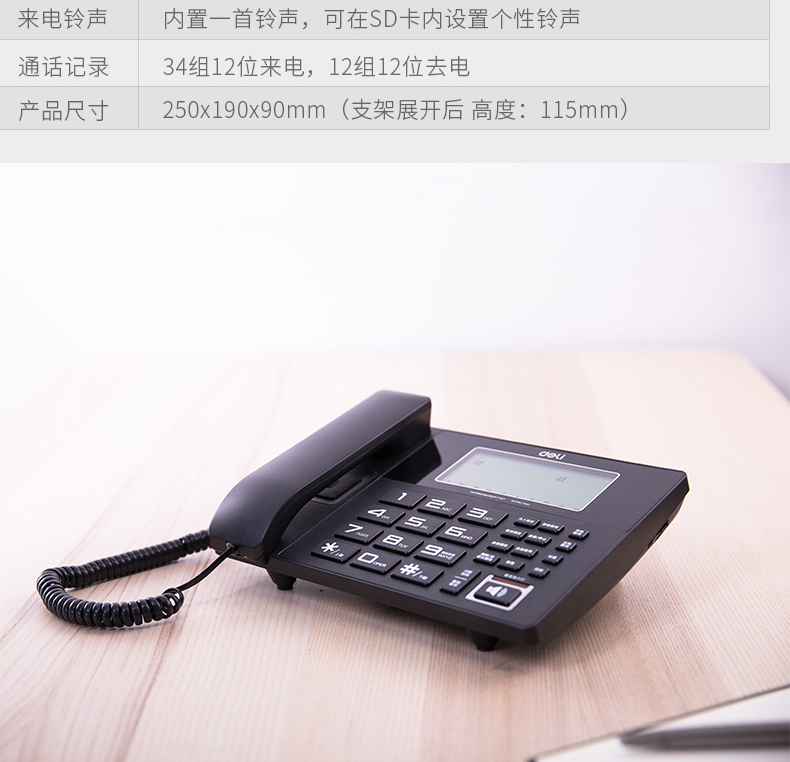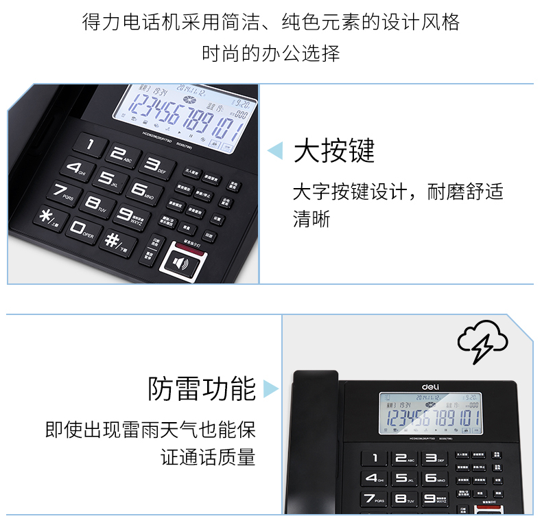 得力(deli)录音电话机 固定座机 办公家用 来电显示 799 黑 办公录音电话机 自营