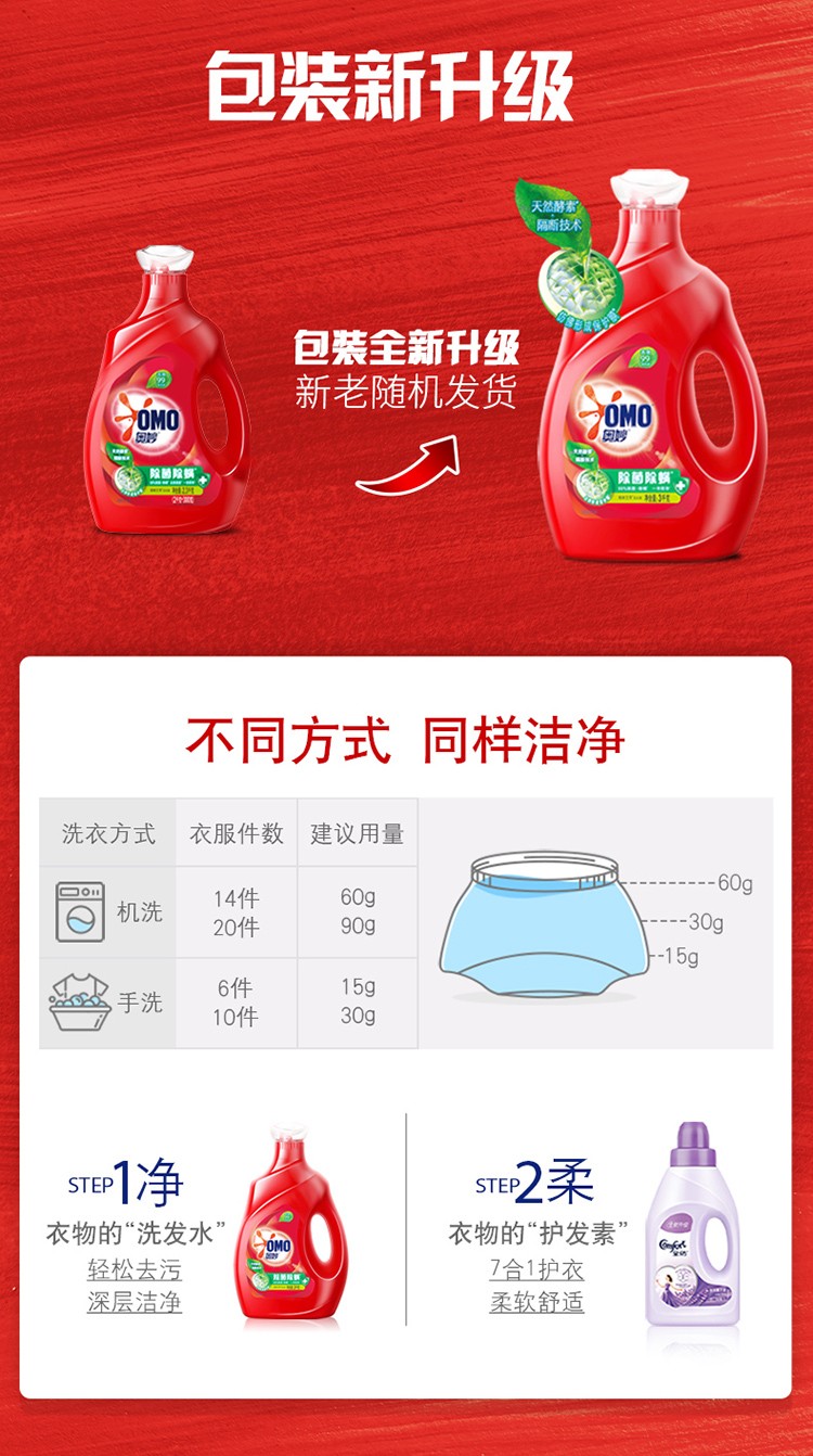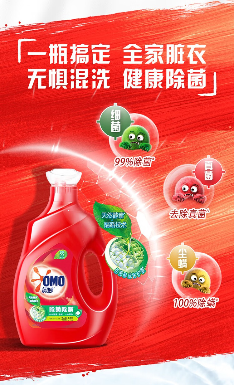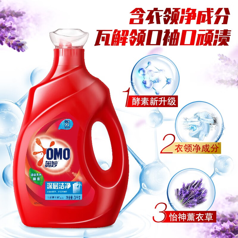奥妙洗衣液3kg 除菌除螨香味持久家庭装 深层洁净3KG(酵素去污) 自营
