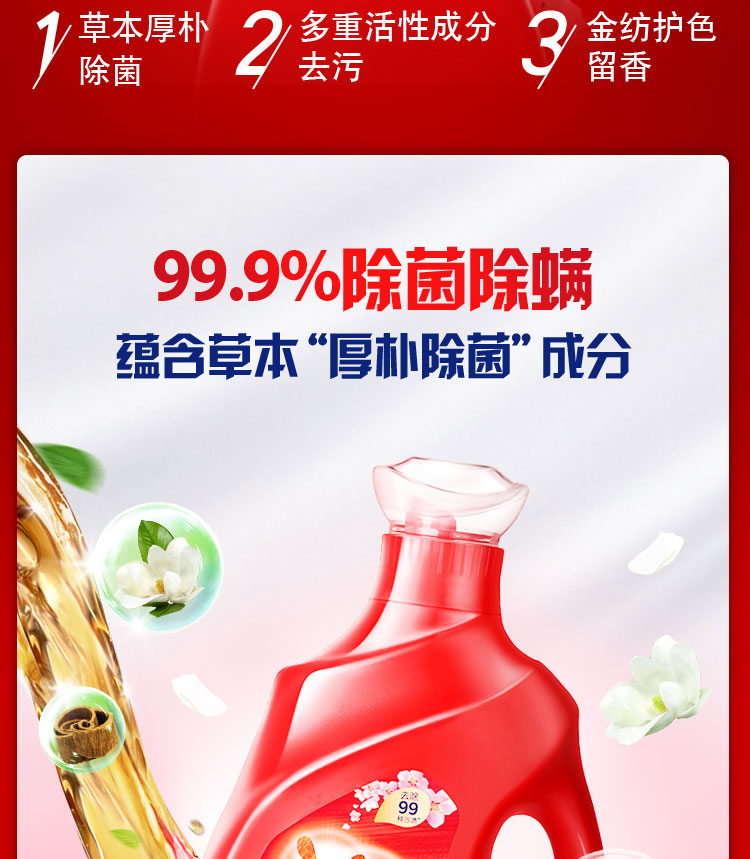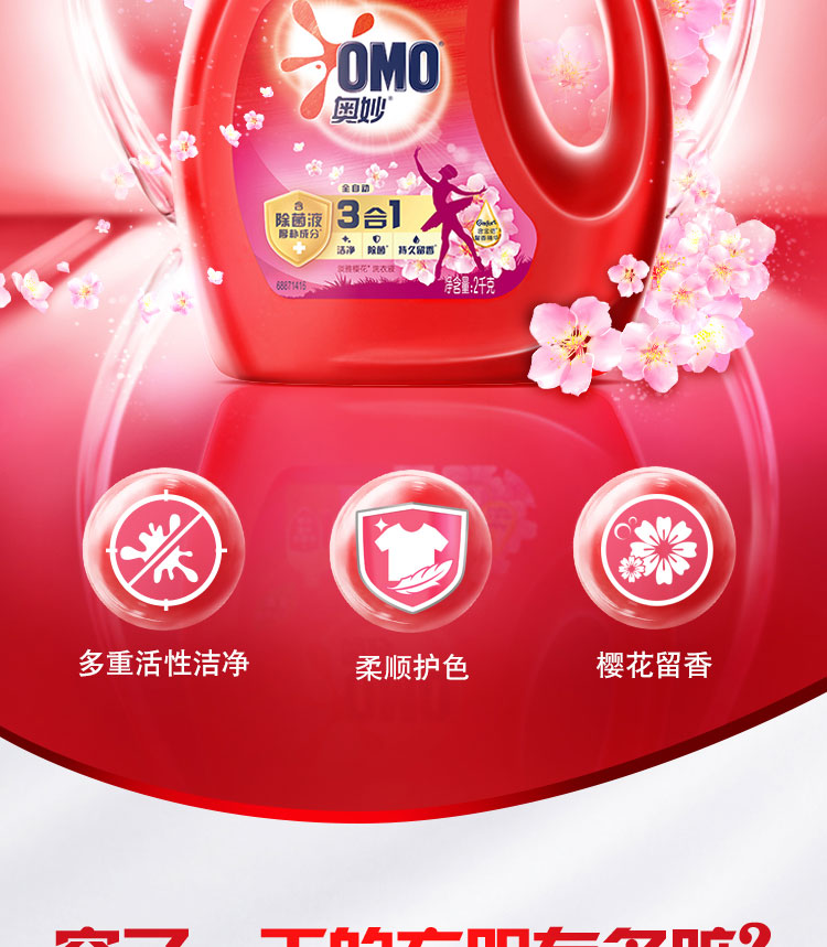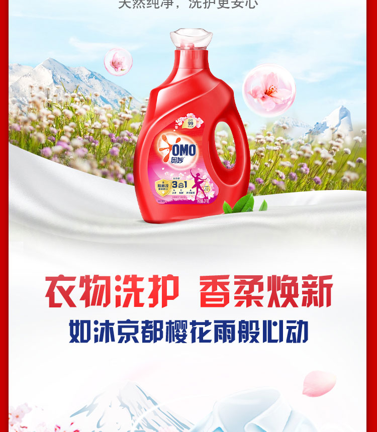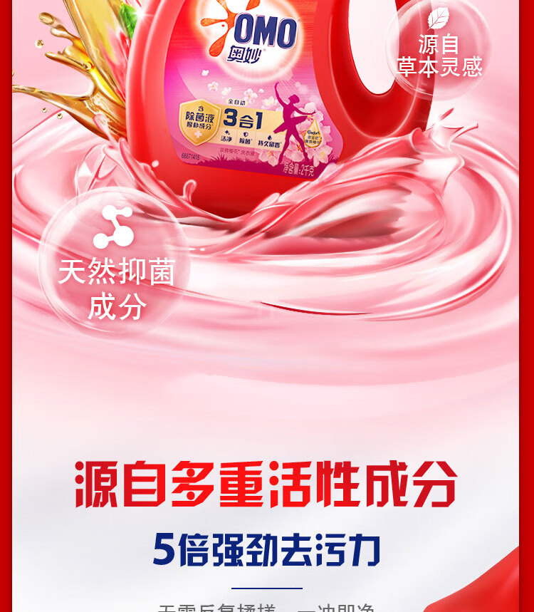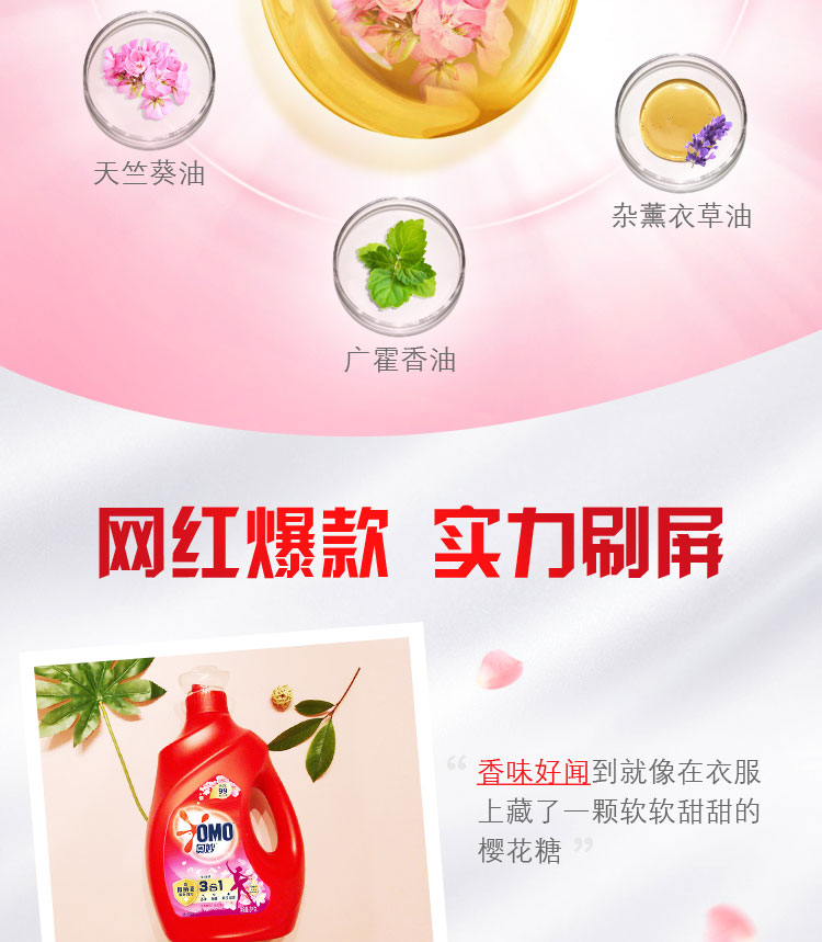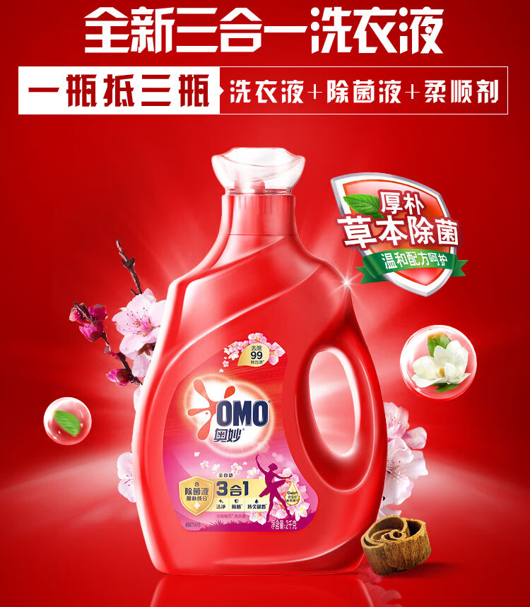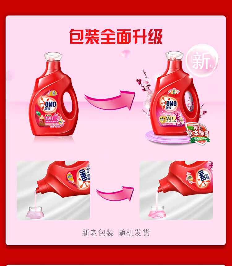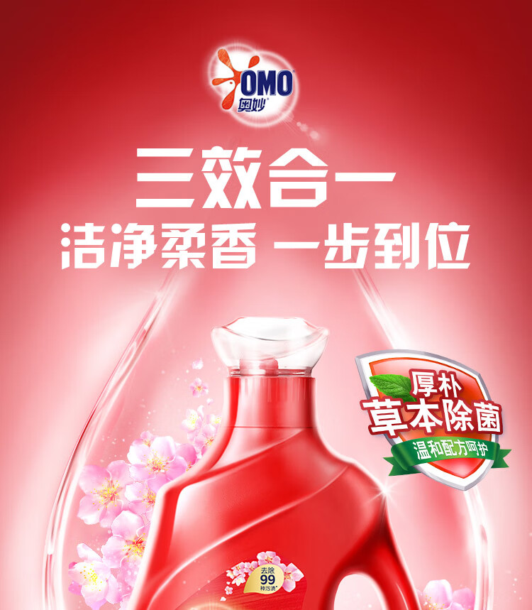 奥妙洗衣液 淡雅樱花(含金纺馨香精华) 2kg 99.9%除菌(新老包装随机发货) 自营