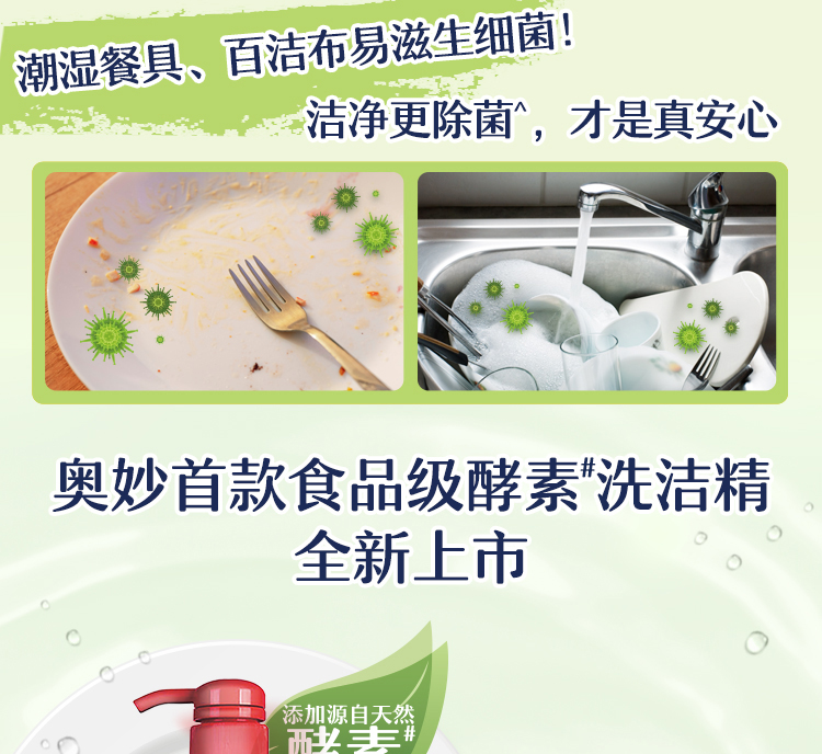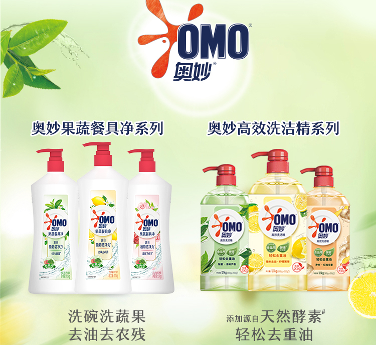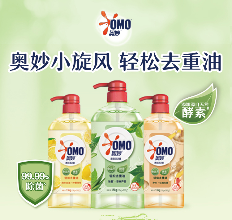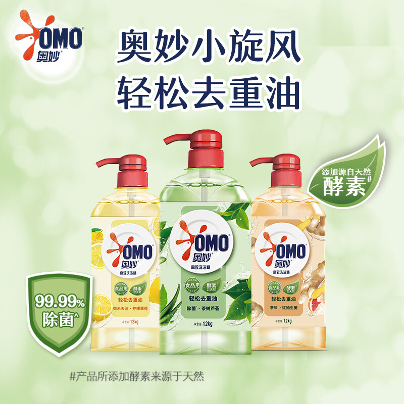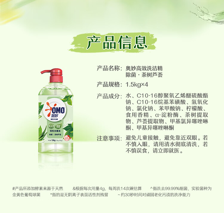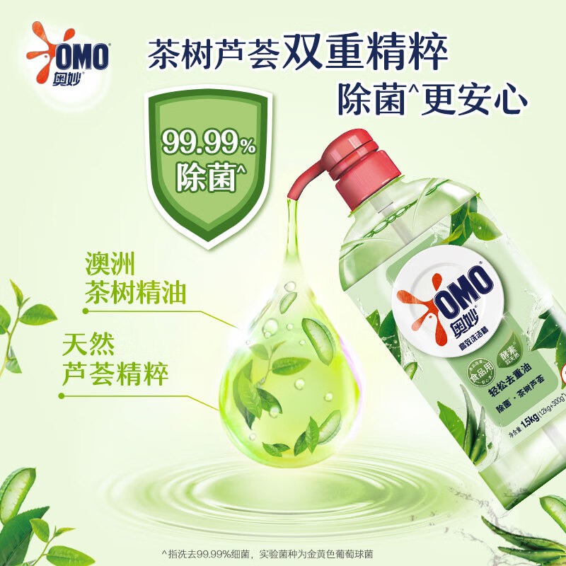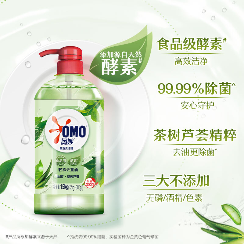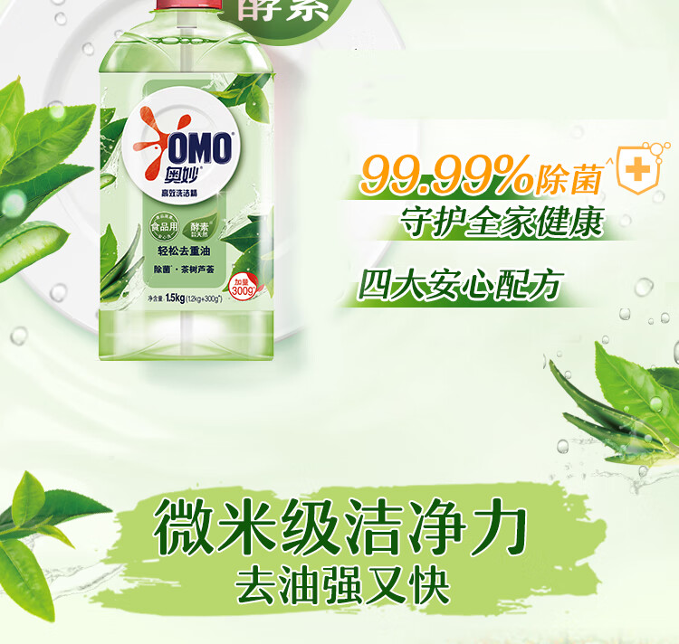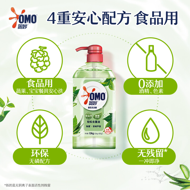 奥妙洗洁精 餐具净大桶装 去重油 食品用酵素高效洁净 不伤手 茶树香型 1.5kg 自营