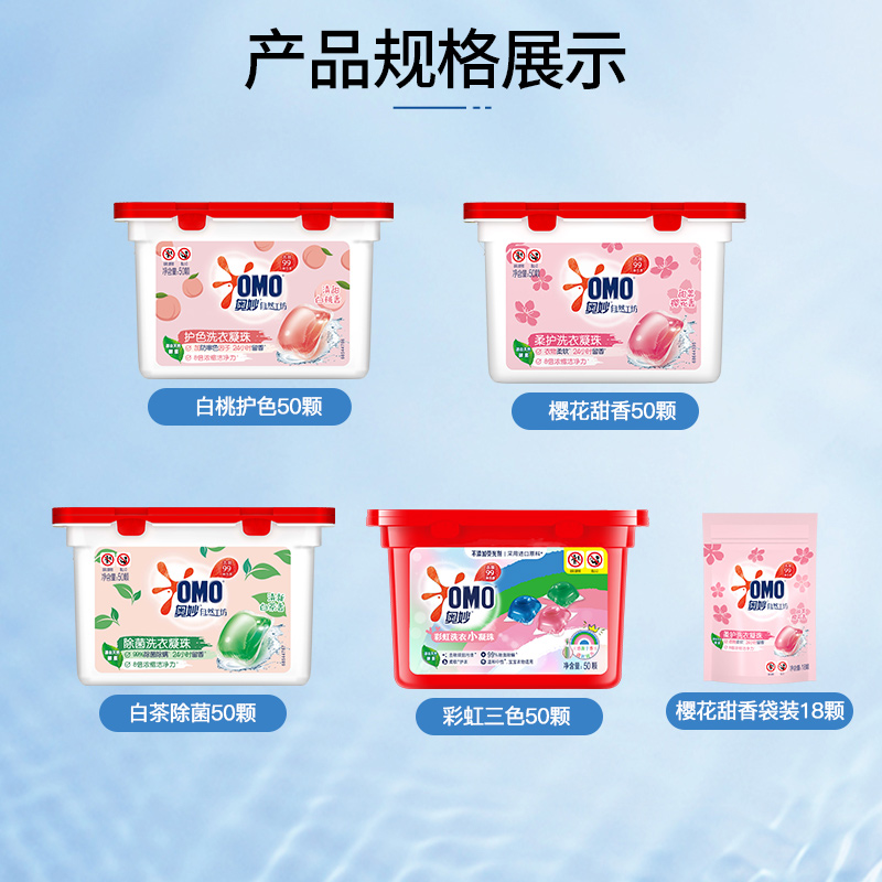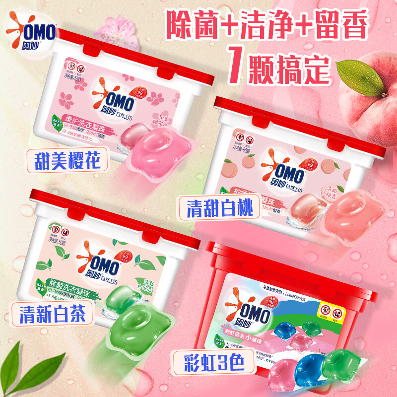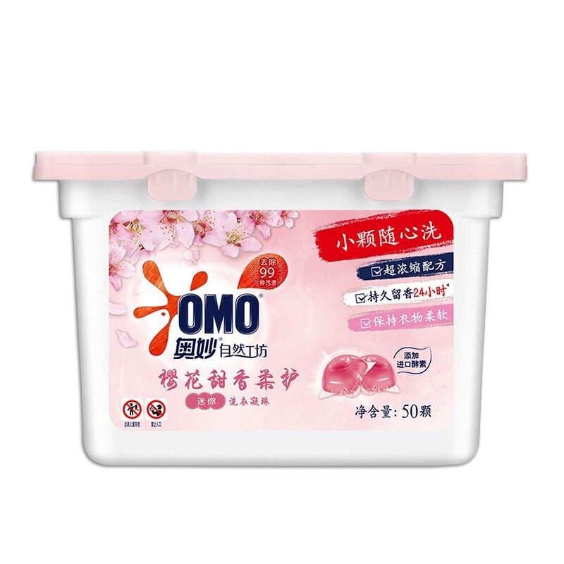 奥妙洗衣凝珠浓缩洗衣液球珠三合一樱花自然工坊除菌除螨柔顺护色持久留香家庭套装自营 樱花甜香1盒(50颗共400克) 自营