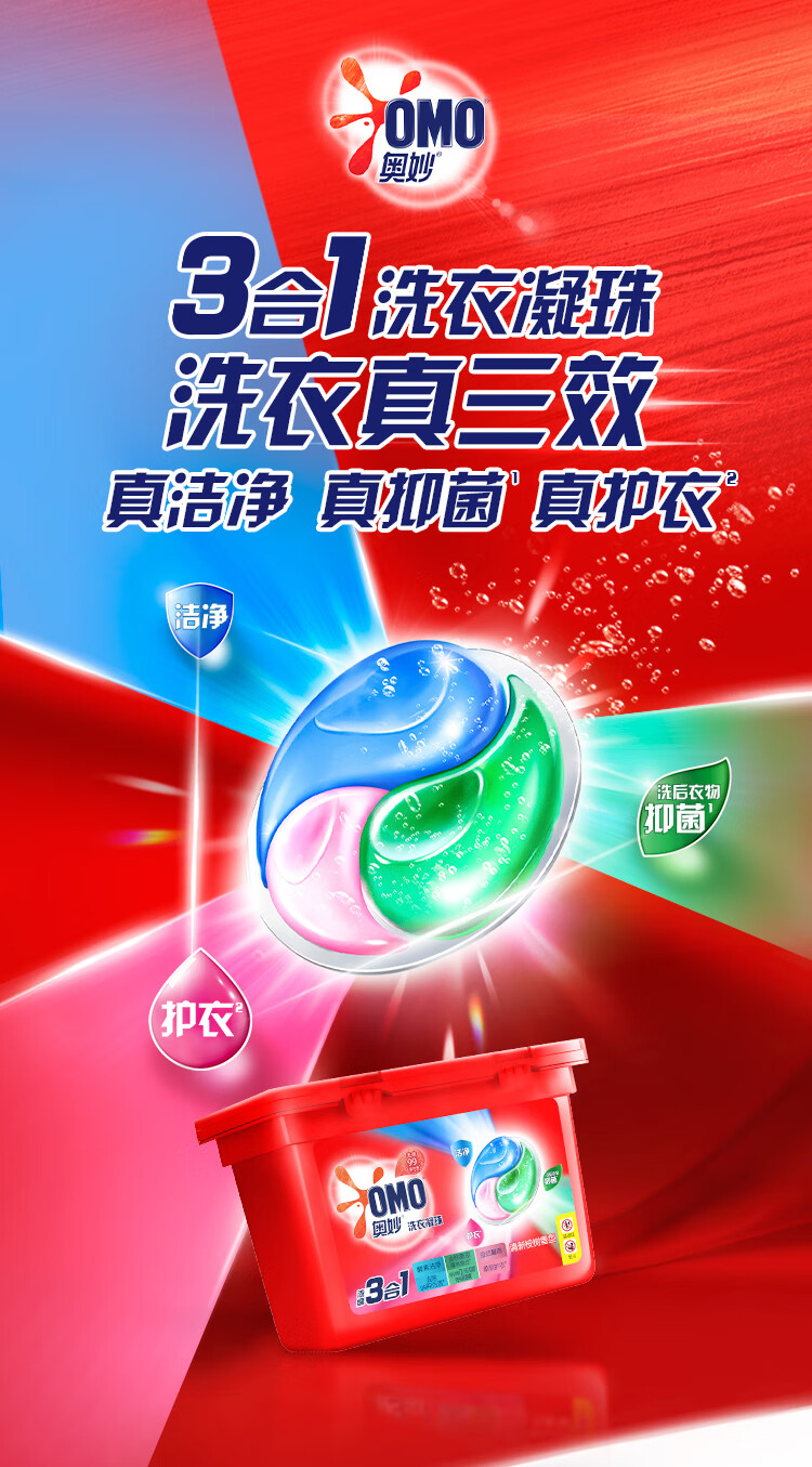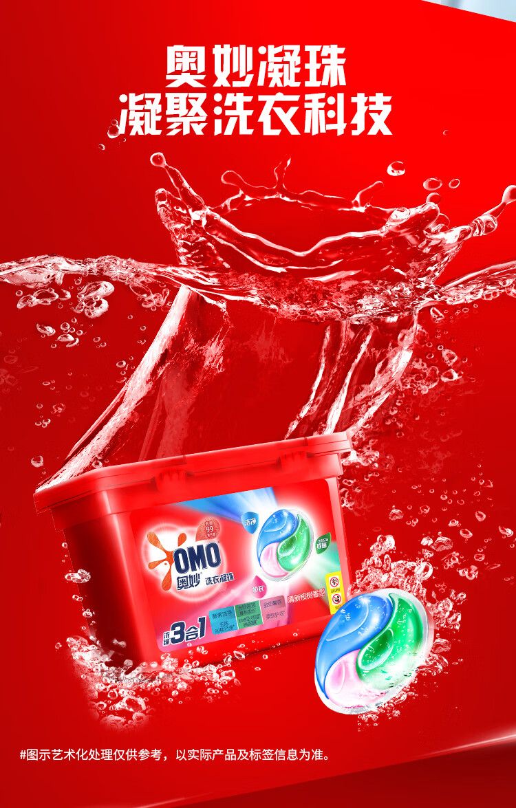 奥妙 全新三合一洗衣凝珠单盒装18颗189g 洁净抑菌护衣真三效 清新桉树香 自营