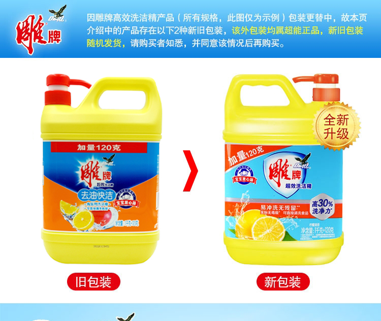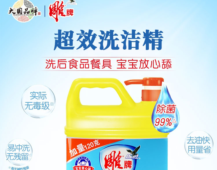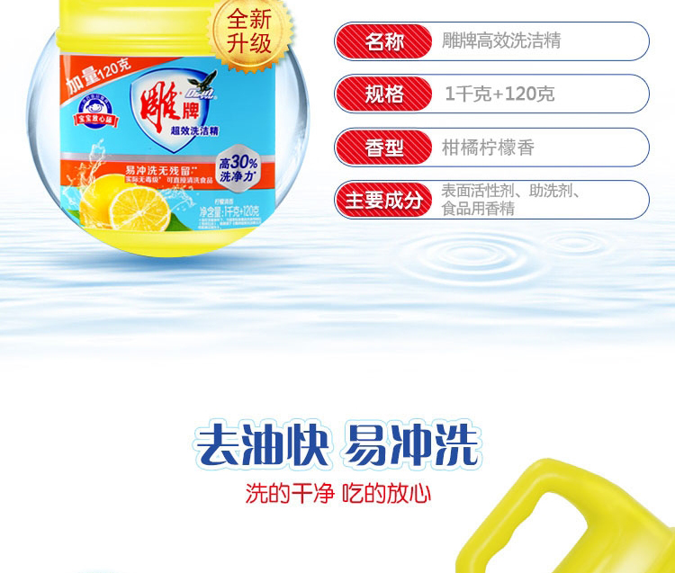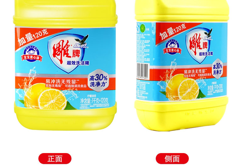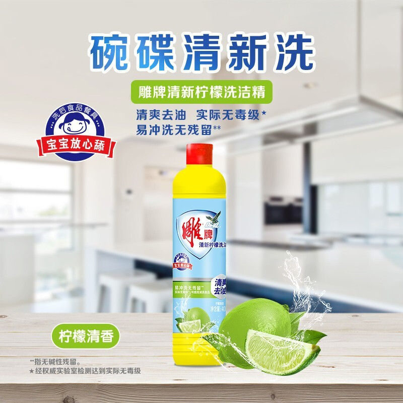 雕牌超效洗洁精食品级去油快果蔬餐具通用批发团购柠檬香型去污不伤手大国品牌品质保证开票大瓶小瓶 408g雕牌洗洁精1瓶 自营