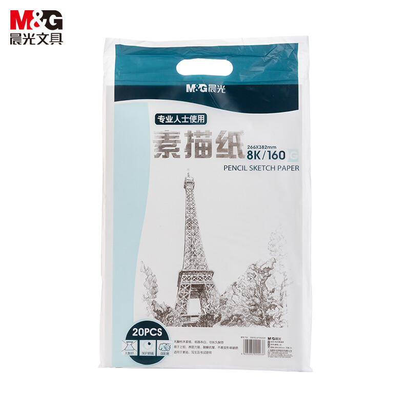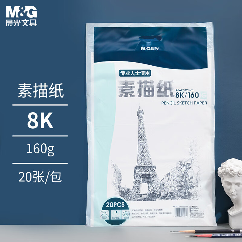 晨光(M&G)文具8K/160g加厚素描纸 铅画纸 专业美术生画纸 初学者速写纸 美术写生纸 20张/包APYMV635开学礼物 自营