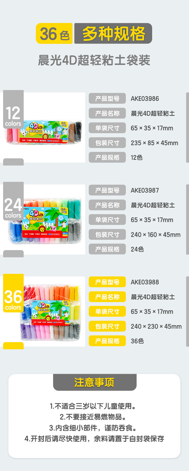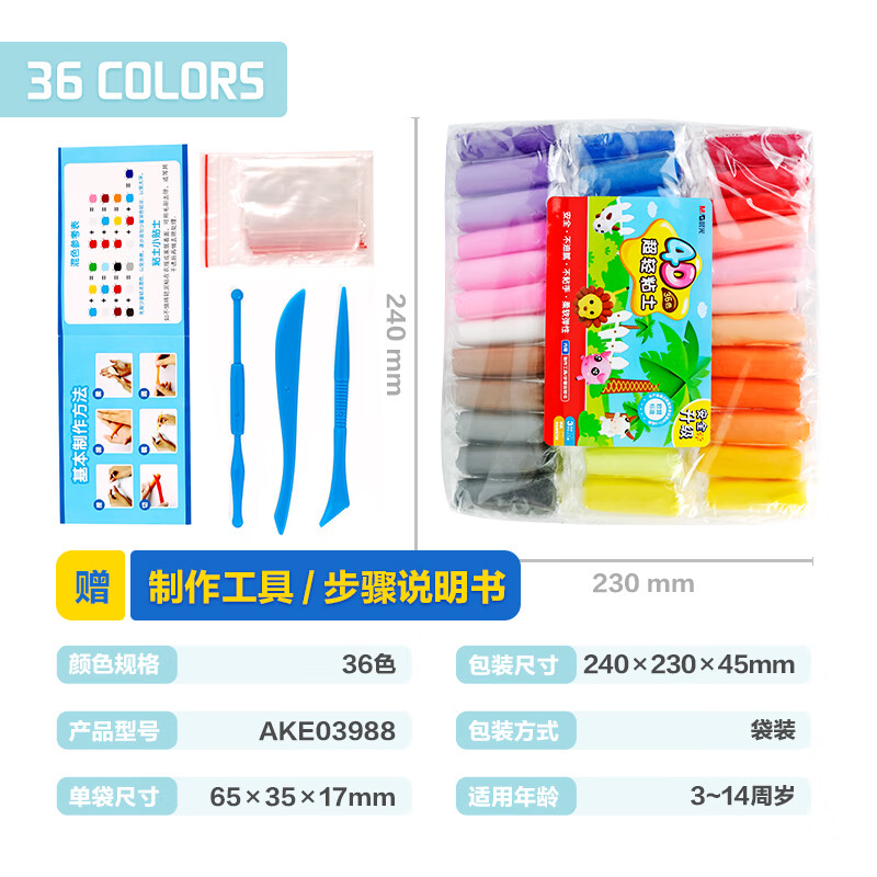 晨光(M&G)文具36色超轻粘土彩泥橡皮泥4D 儿童手工DIY玩具 袋装AKE03988开学礼物 自营