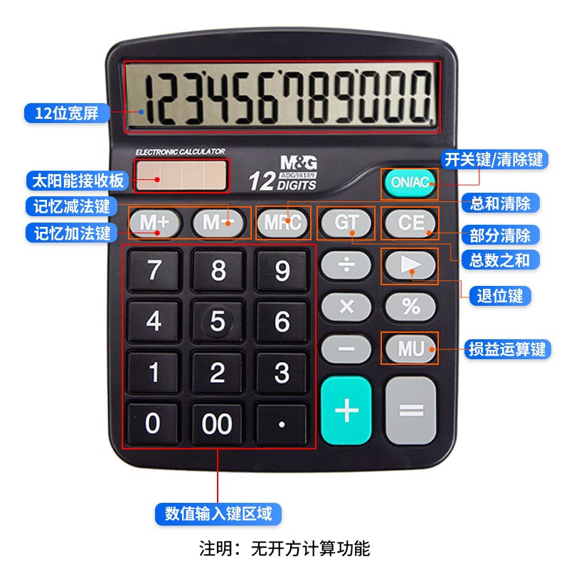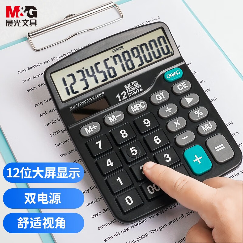 晨光(M&G)文具837双电源计算器 太阳能桌面计算机12位大屏幕计算器 办公用品 单个装ADG98189 自营