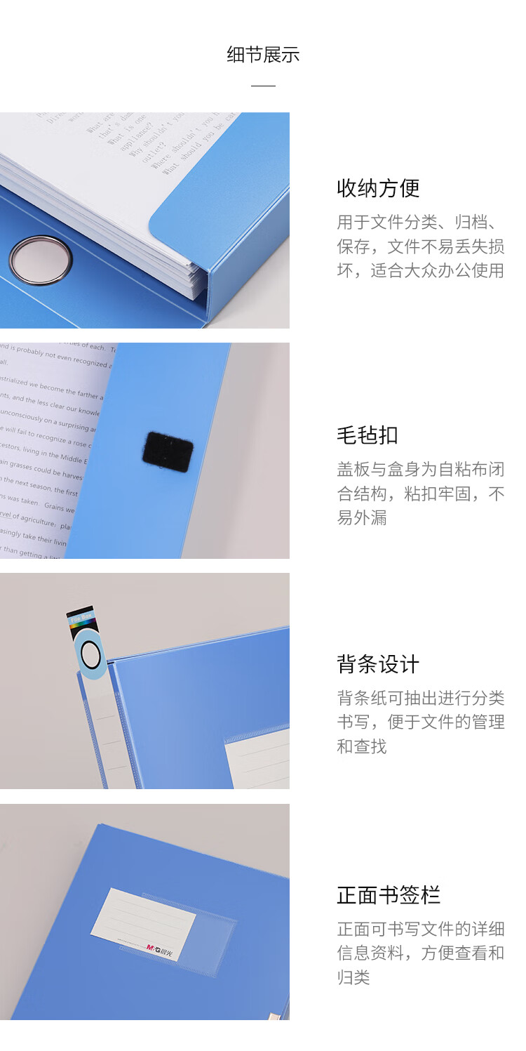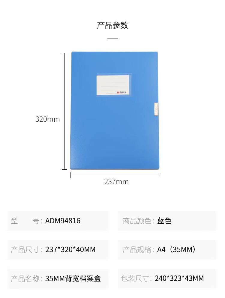 晨光(M&G)文具A4/35mm蓝色粘扣档案盒 办公加厚文件盒 党建资料盒/财务凭证收纳盒 单个装ADM94816 自营
