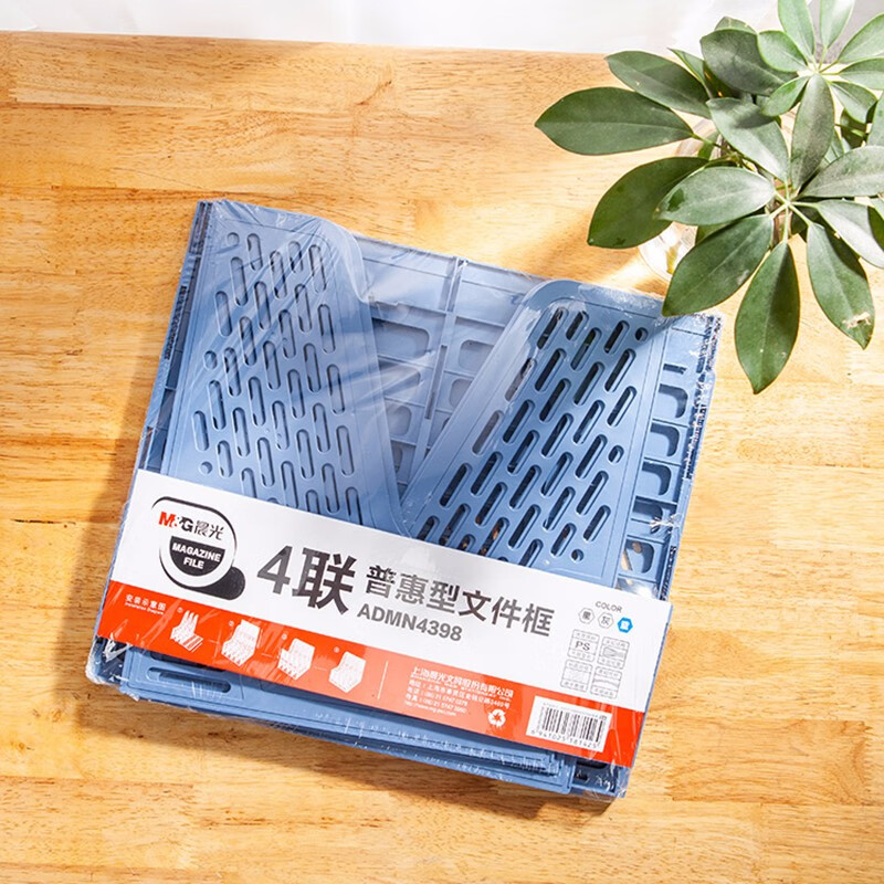 晨光(M&G)文具四联镂空桌面文件框 四栏带标签稳固文件栏/文件筐/资料框 蓝色单个装ADMN4398 自营
