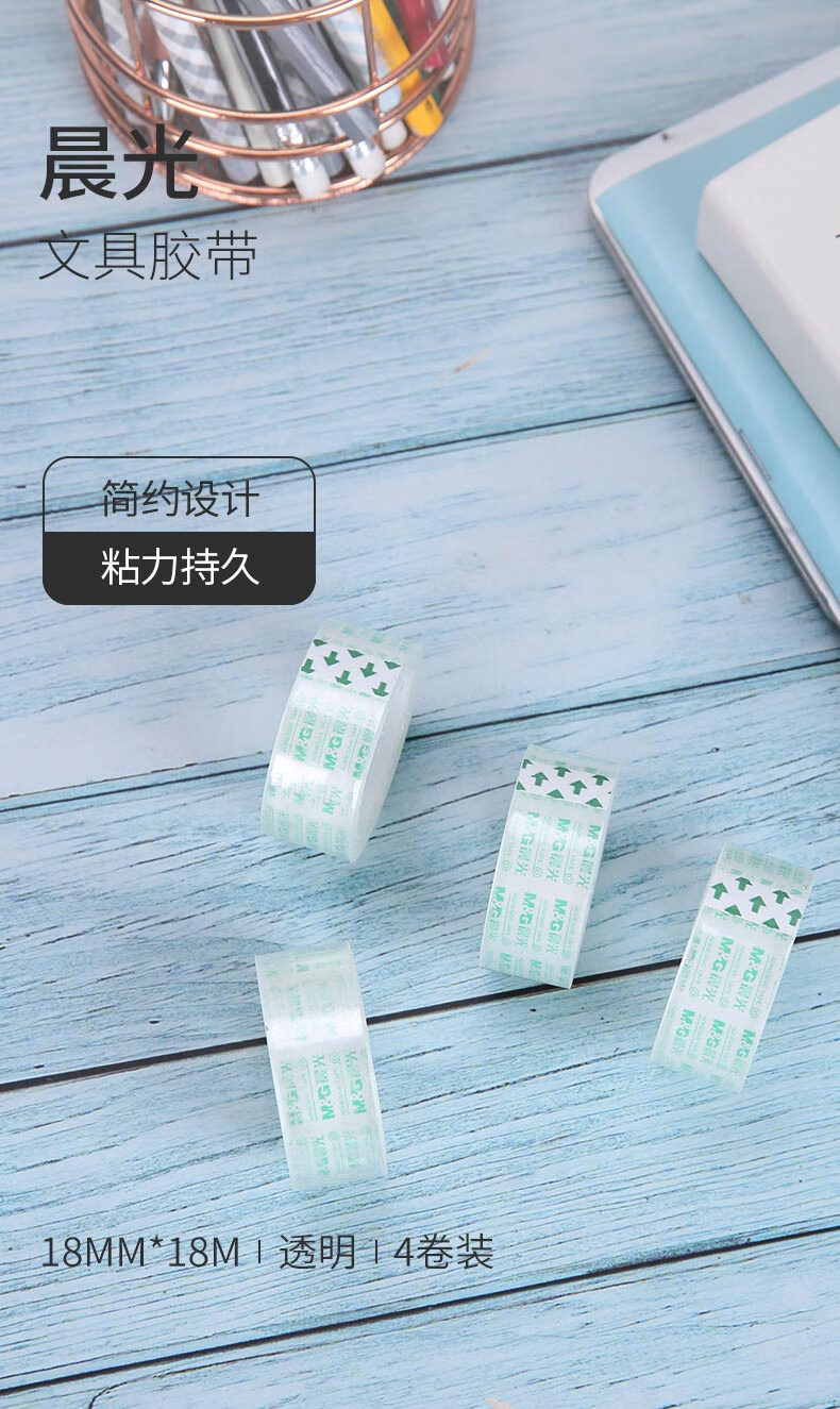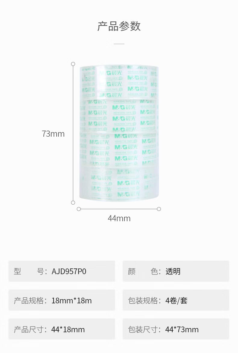 晨光(M&G)文具透明胶带 高透易撕小胶带 学生手工胶布18mm*18m 4卷装AJD957P0 自营
