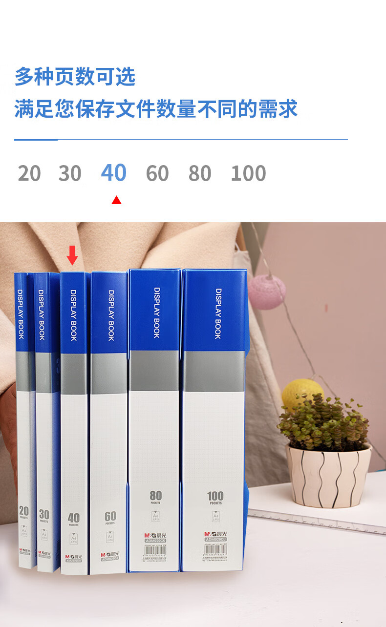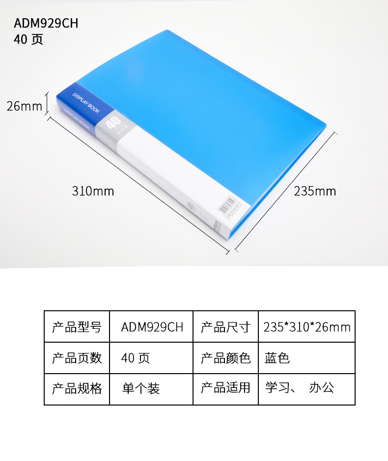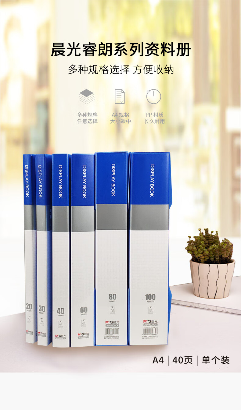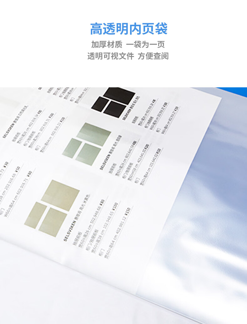 晨光(M&G)文具A4/40页蓝色资料册 防水办公文件册 睿朗系列文件插页袋文件夹 单个装ADM929CHB 自营