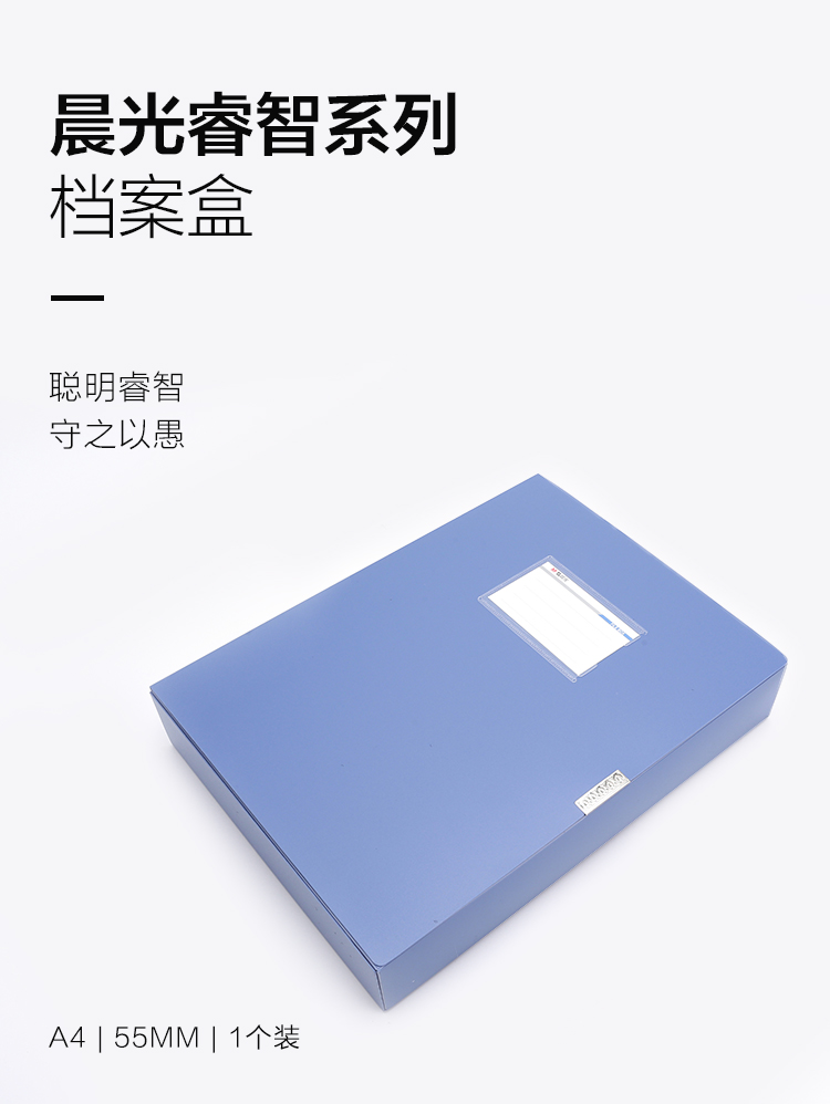 晨光(M&G)文具A4/55mm蓝色粘扣档案盒 办公加厚文件盒 睿智系列党建资料盒/财务凭证收纳盒 单个装ADM92989 自营
