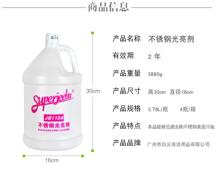 白云清洁(baiyun cleaning)JB118A 不锈钢光亮剂 电梯保养油金属亮洁剂 3.78L*1瓶 自营