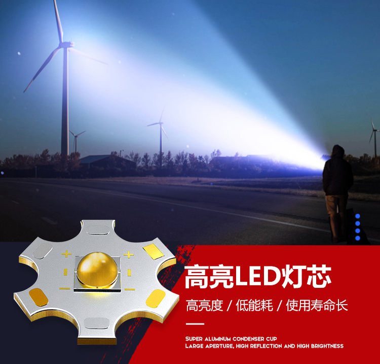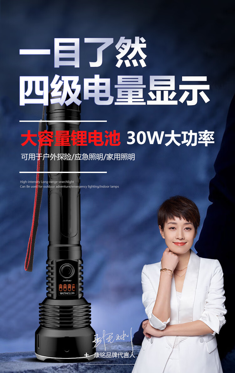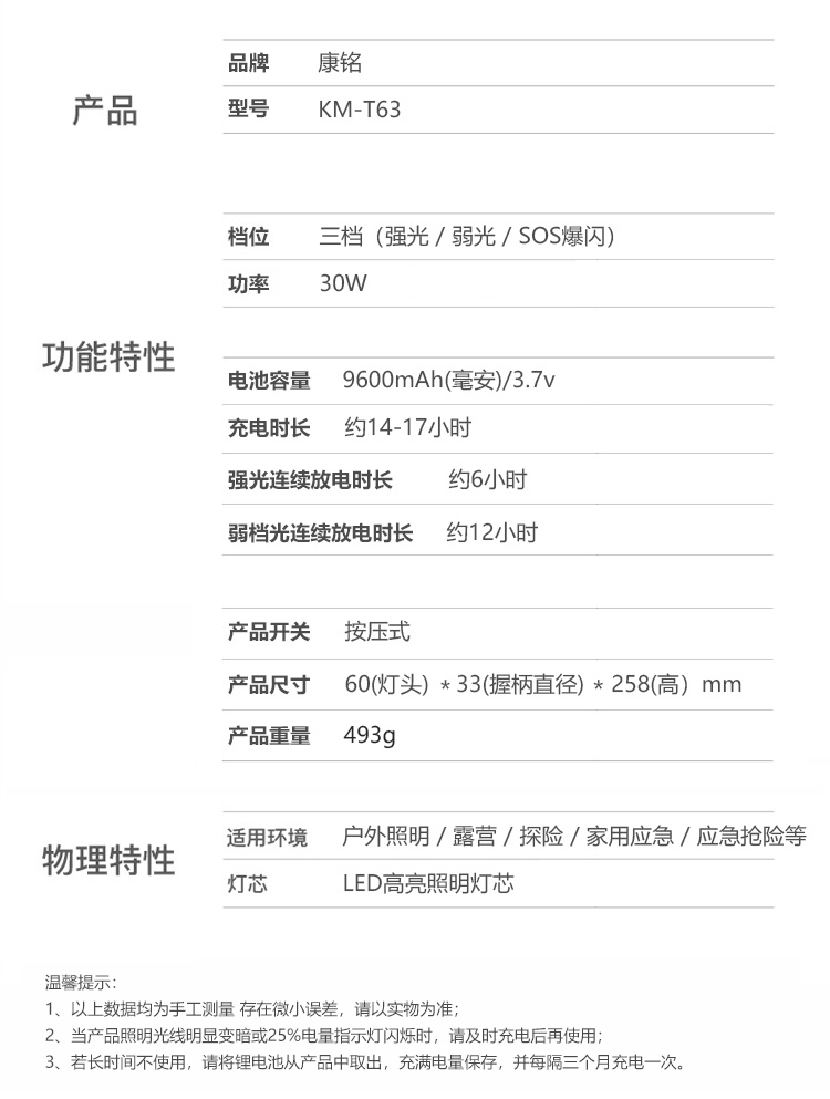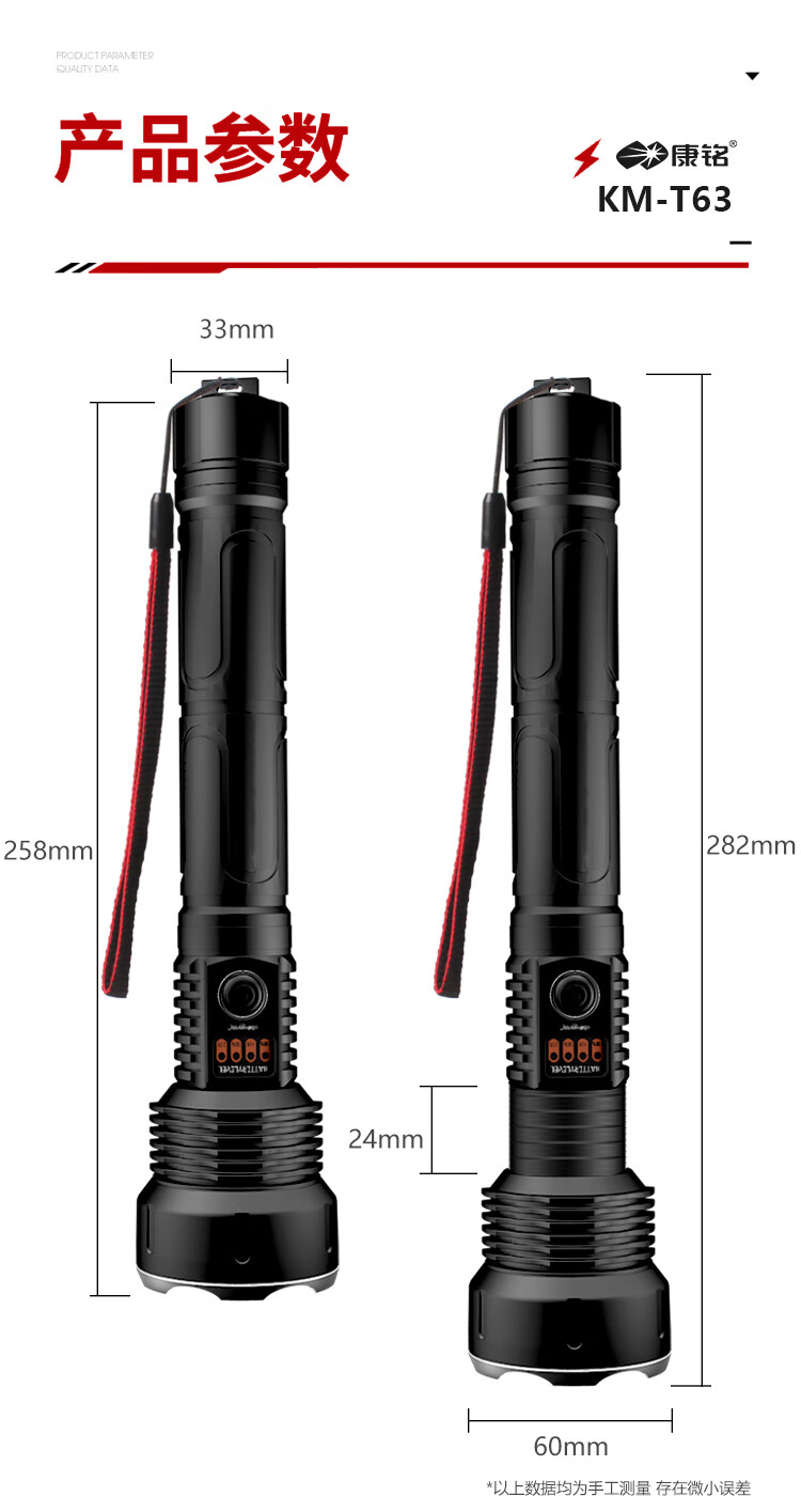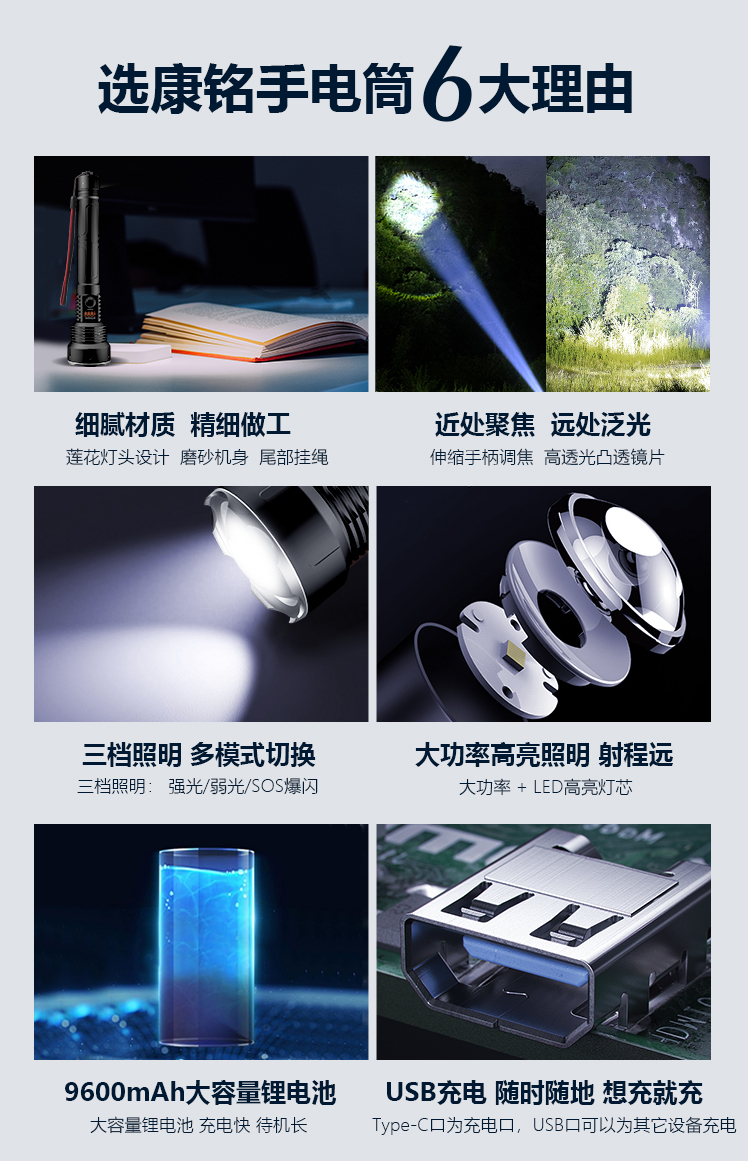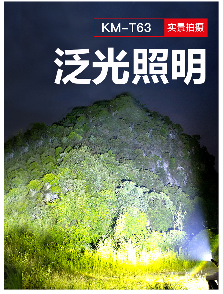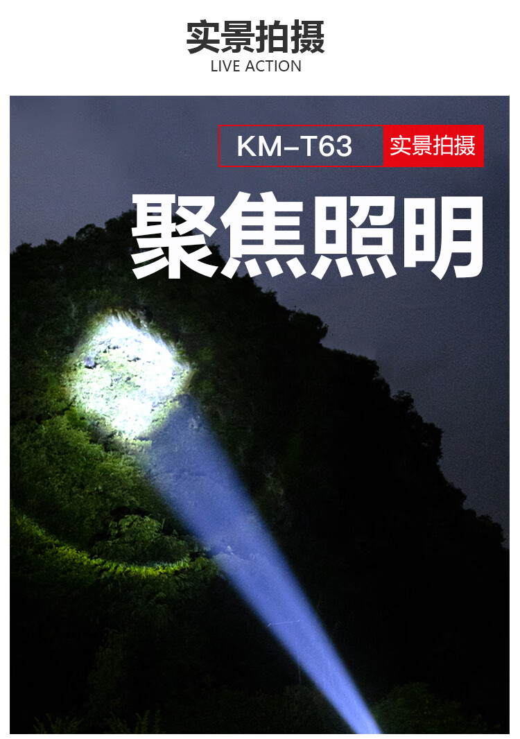 康铭(KANGMING)强光手电筒变焦超亮远射户外SOS充电式探照灯应急户外家用KM-T63 自营
