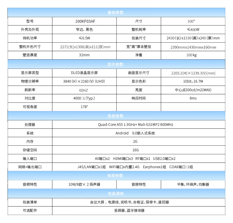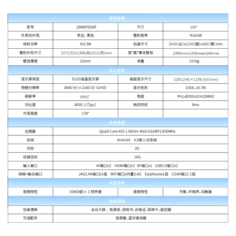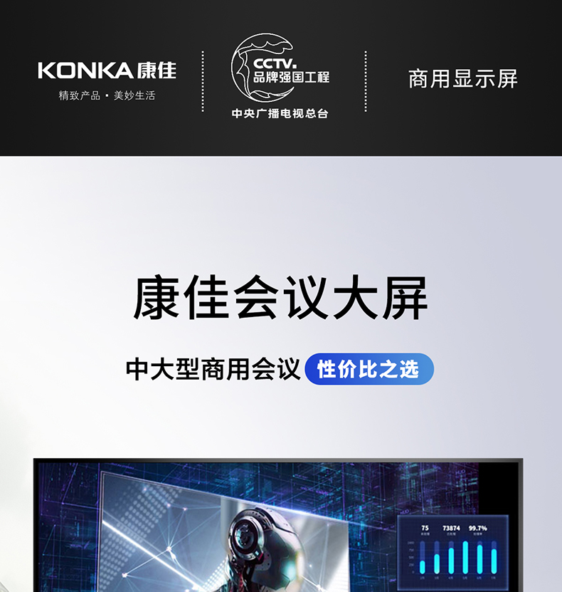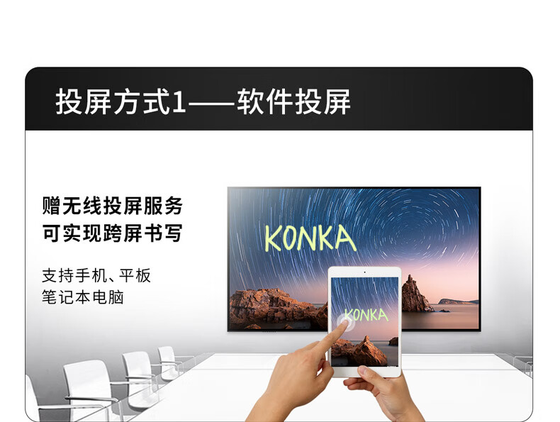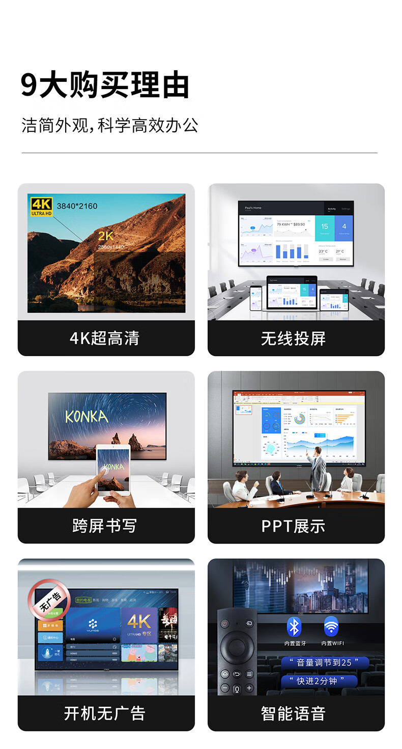 康佳(KONKA) 100英寸会议平板智慧屏商用大屏智能电视无线投屏4K超清家用彩电办公娱乐巨幕tv 100英寸家用/商用防爆智慧屏(标准版+壁挂) 自营