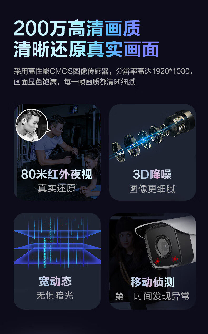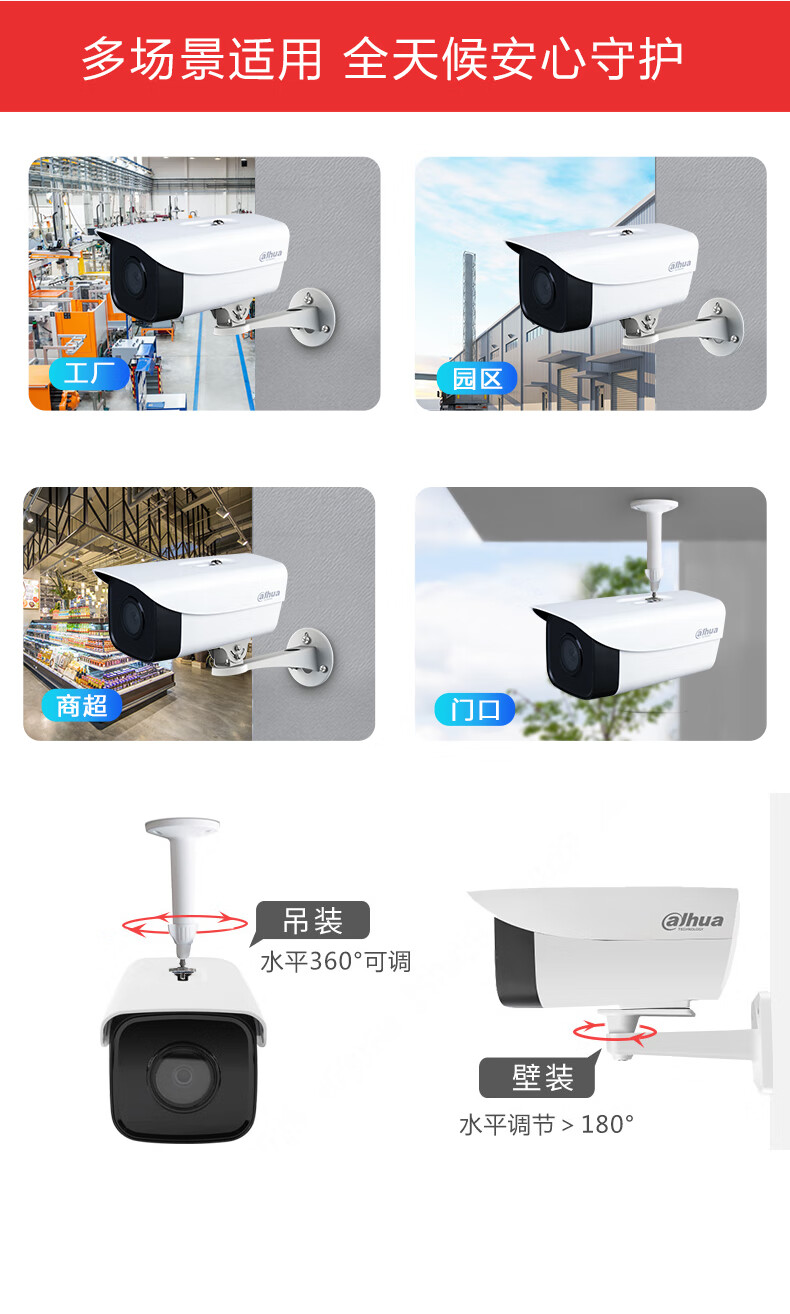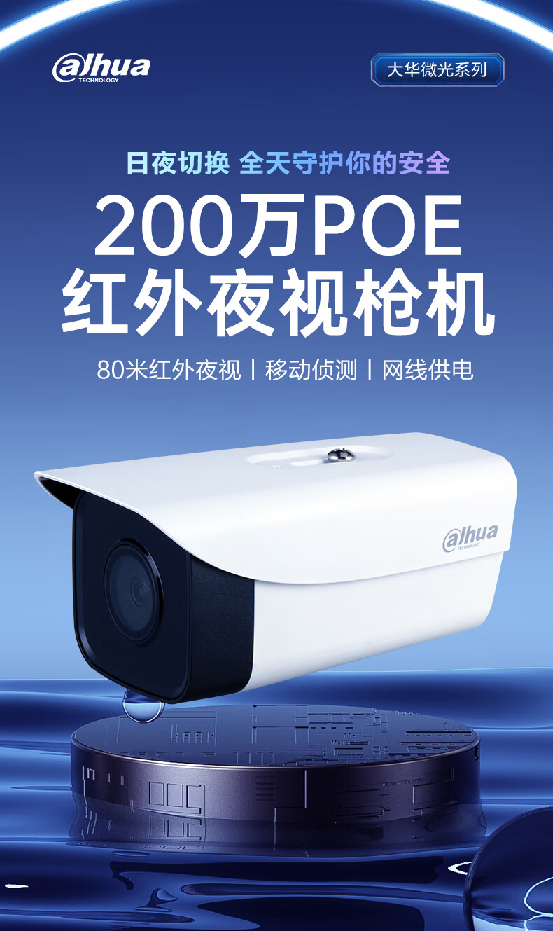 大华dahua监控摄像头 200万网络高清枪机监控 h.265带POE网线供电 红外夜视30米 防尘防水摄像机 P20A1-3.6mm 自营