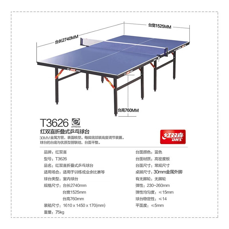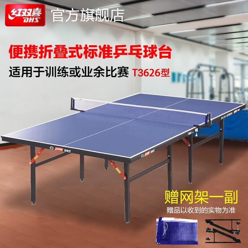 红双喜乒乓球台T3626 整体折叠室内乒乓球桌 CTTA认证标准业余比赛娱乐 附乒乓网架 T3626折叠乒乓球台带网架 自营