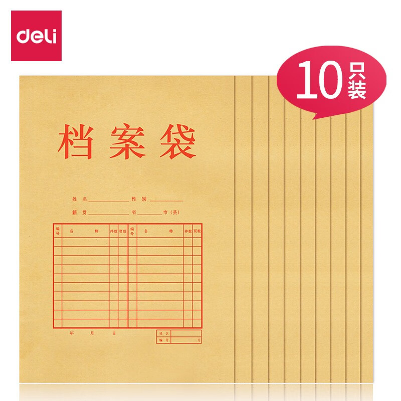 得力(deli) 档案袋牛皮纸黄色文件袋混浆纸质A4纸质文件袋夹办公用标签【10只装】5953** 自营