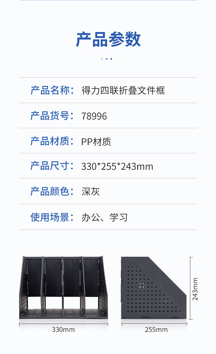 得力(deli)78996 可折叠四联文件框 ** 自营
