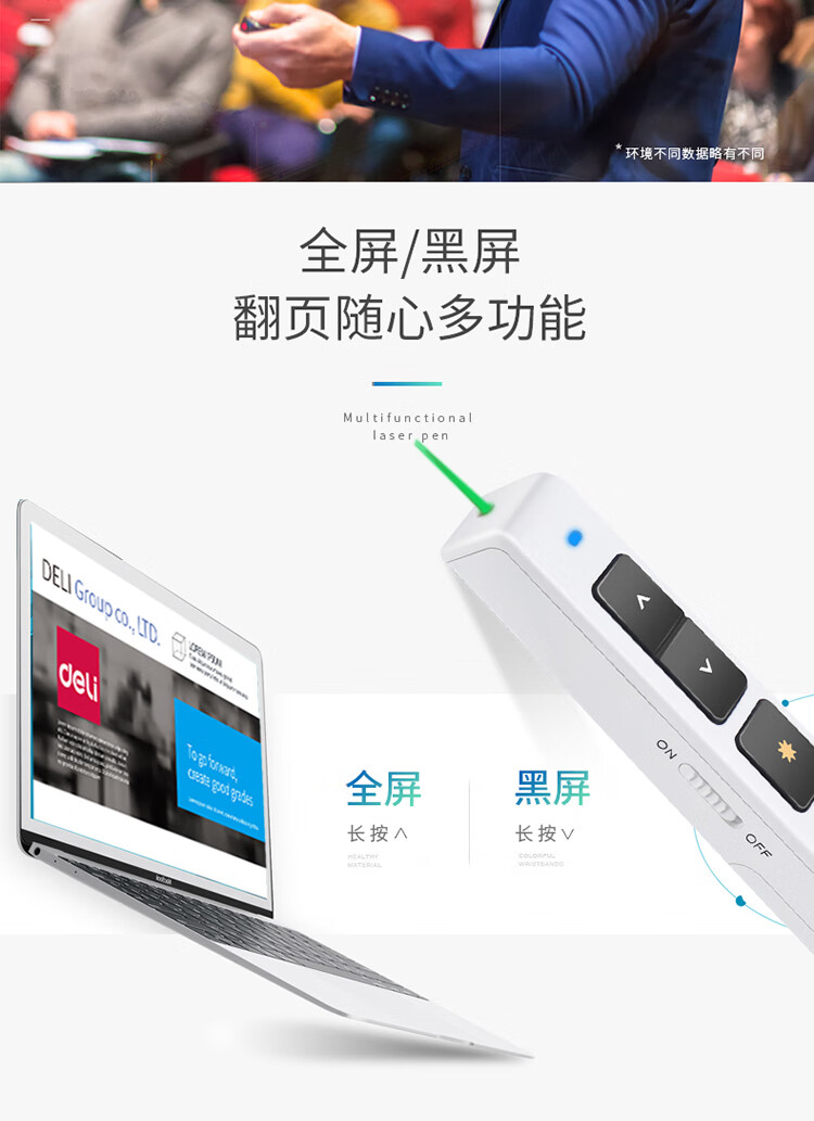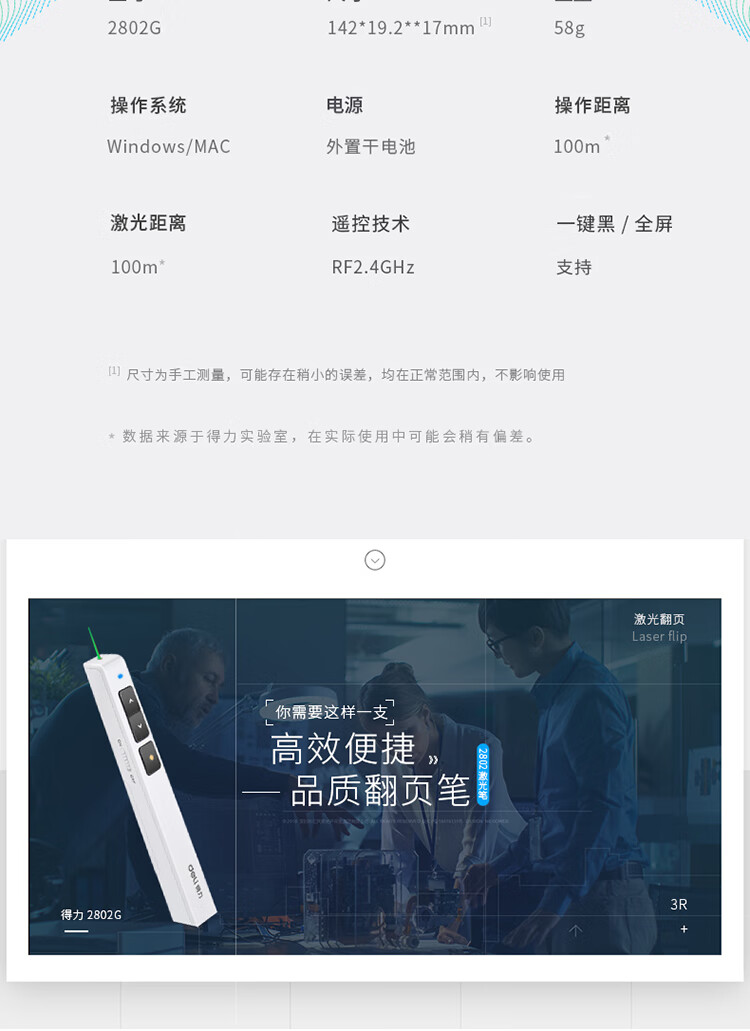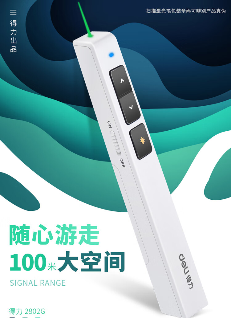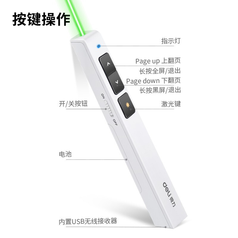 得力(deli)2802G 激光翻页笔 激光笔(白)** 自营
