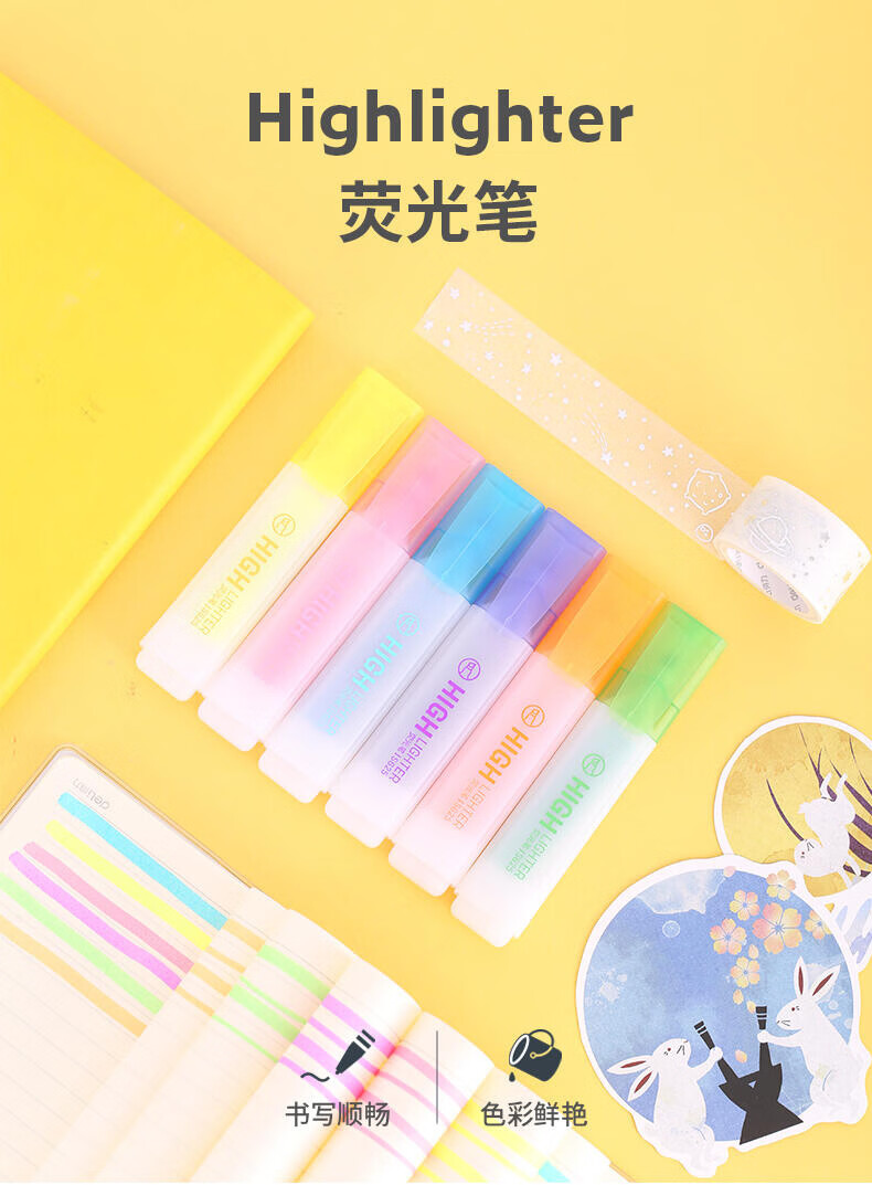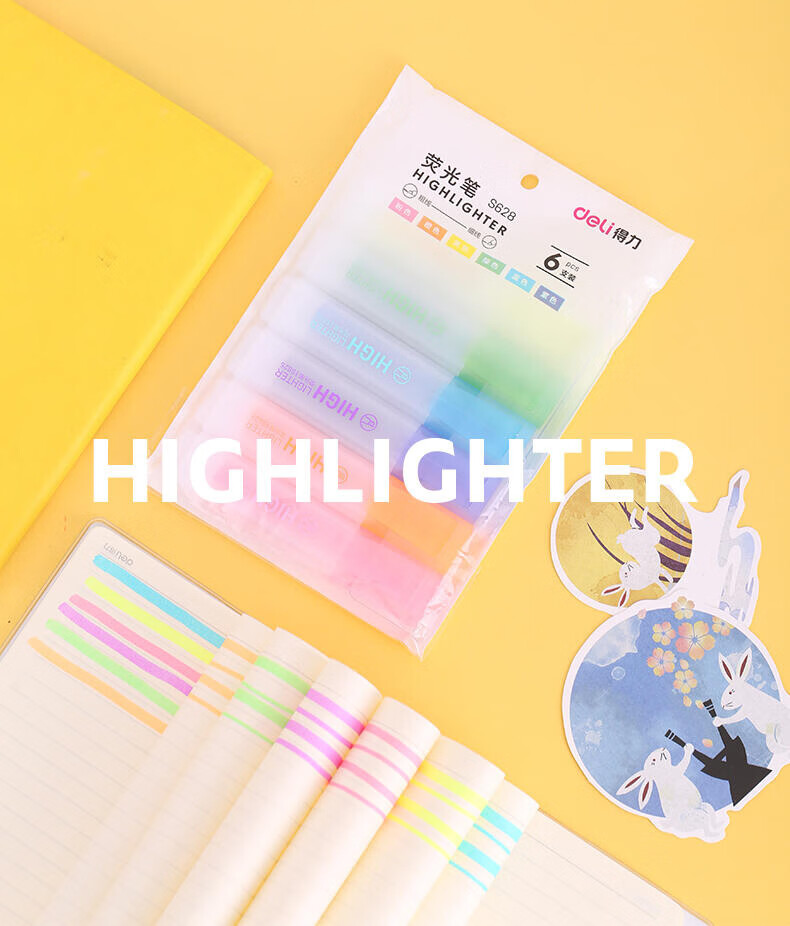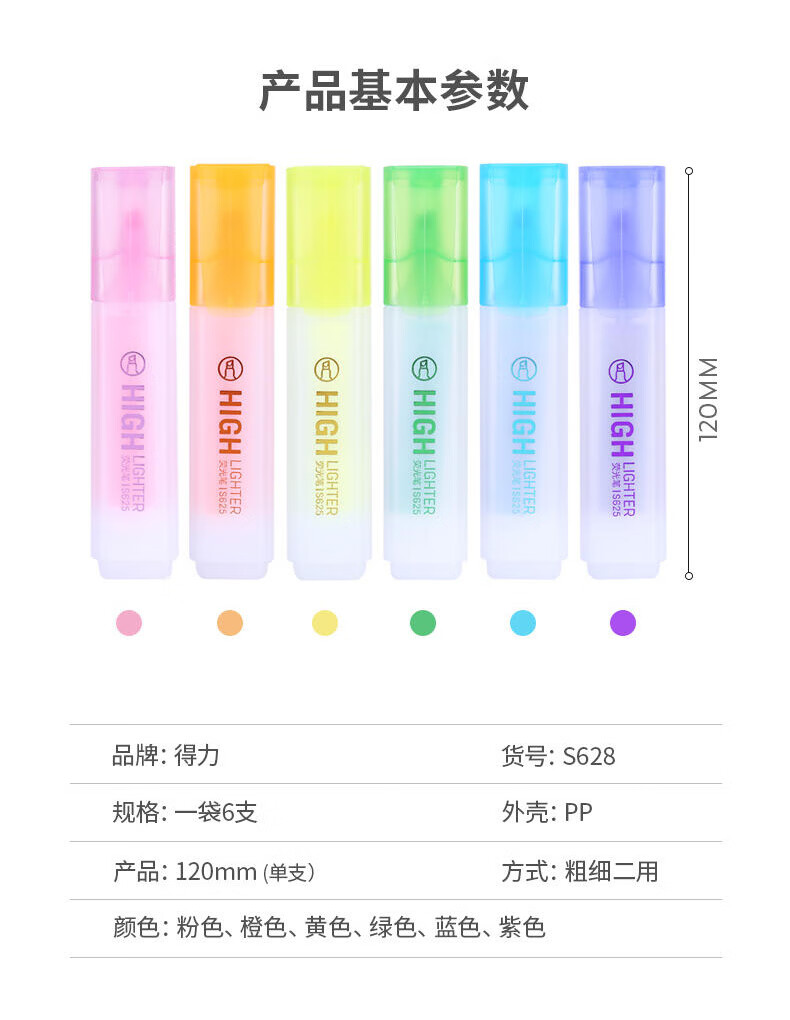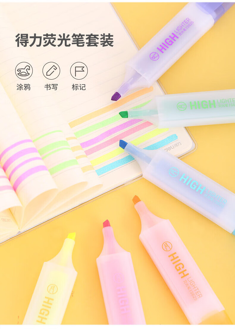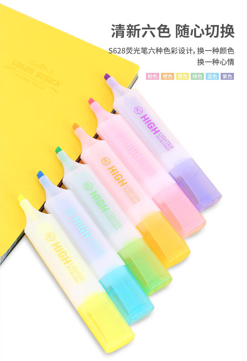 得力s628荧光笔6色学生用彩色笔【6支/s628】** 自营