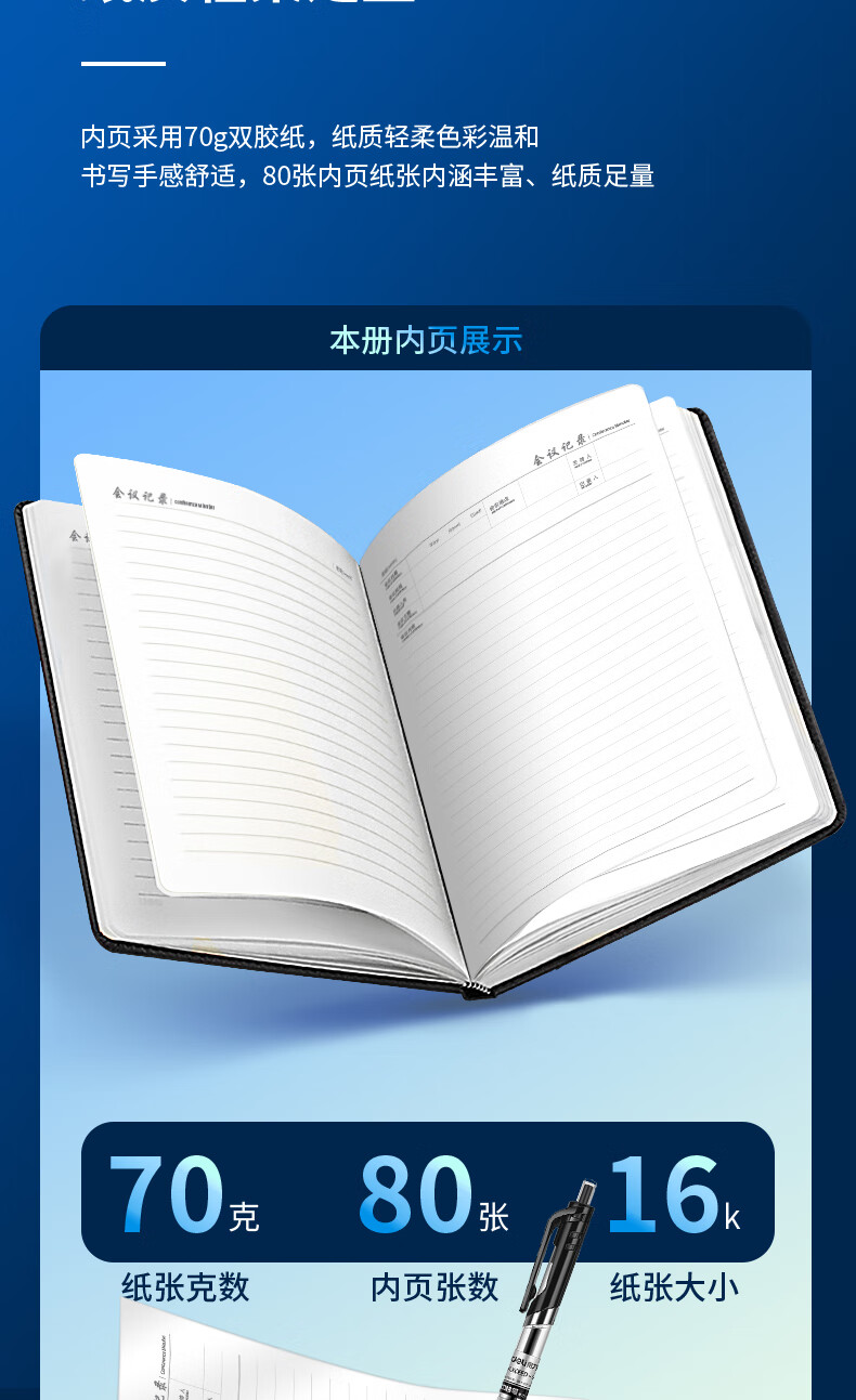 得力(deli)16K80张大号会议记录本皮面本 黑色7949** 自营