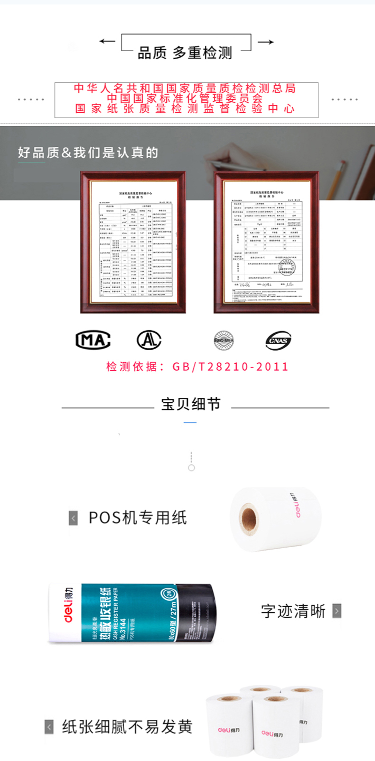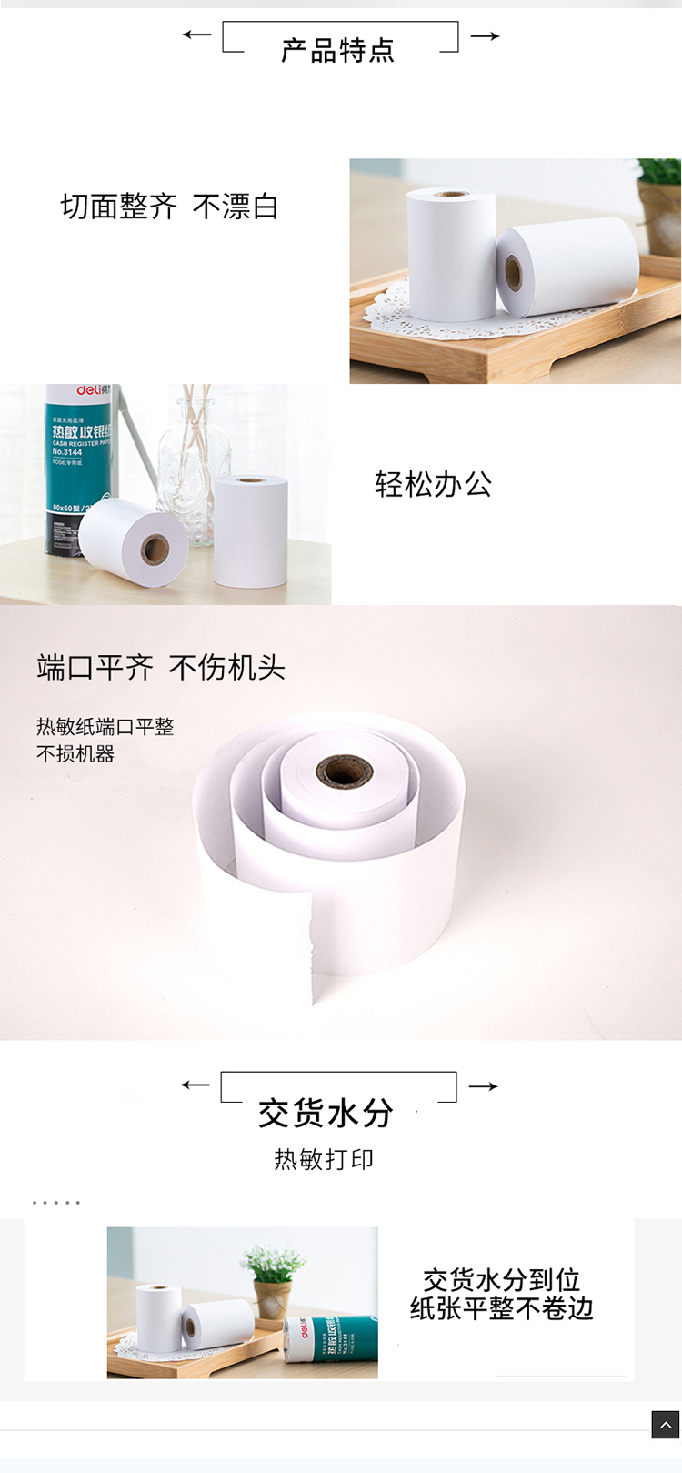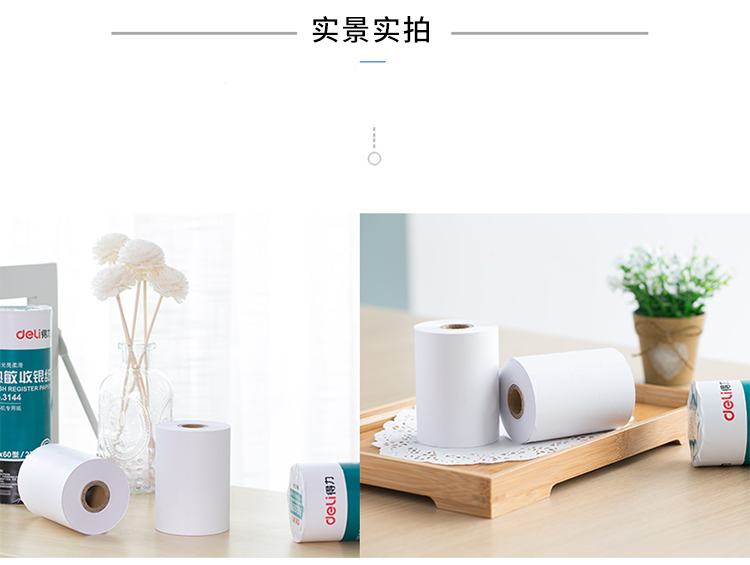 得力(deli)纸热敏收银纸 单筒装 80mm*60mm*27M 2卷/筒 3144(每桶2卷)**) 自营