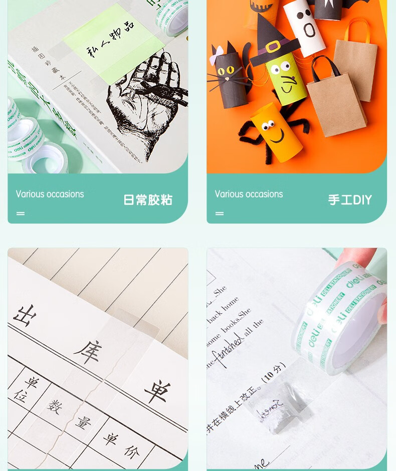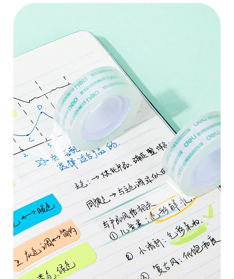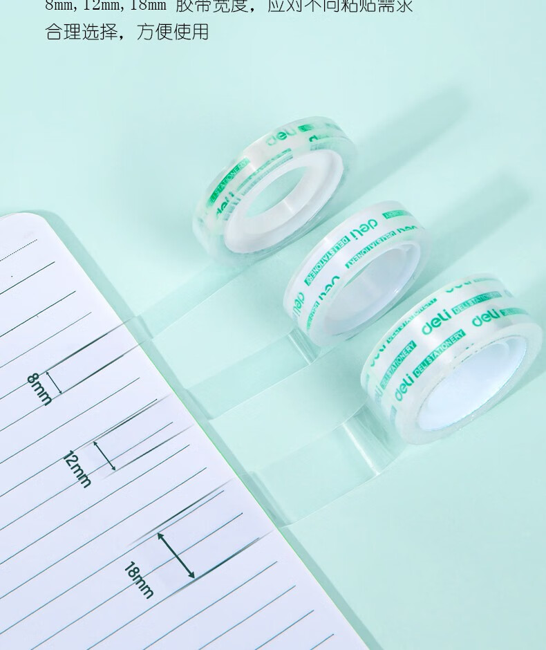得力(deli) 学生文具胶带 小卷胶带 透明彩色窄胶布 办公用品 30015(12mm*30y 12卷) 自营