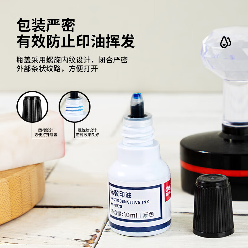 得力(deli)10ml财务印章光敏印油 黑色印章印油 办公用品 黑9879** 自营